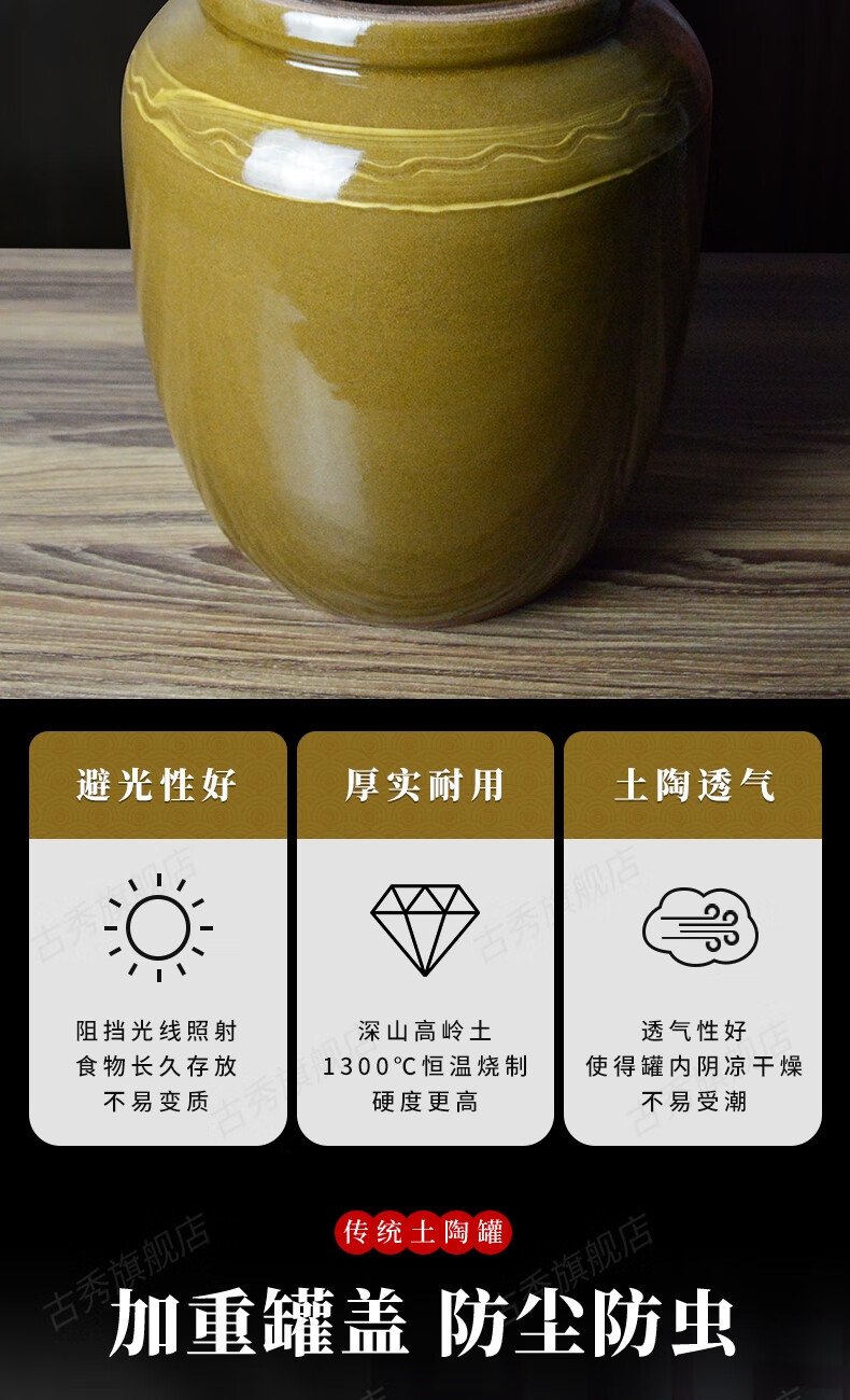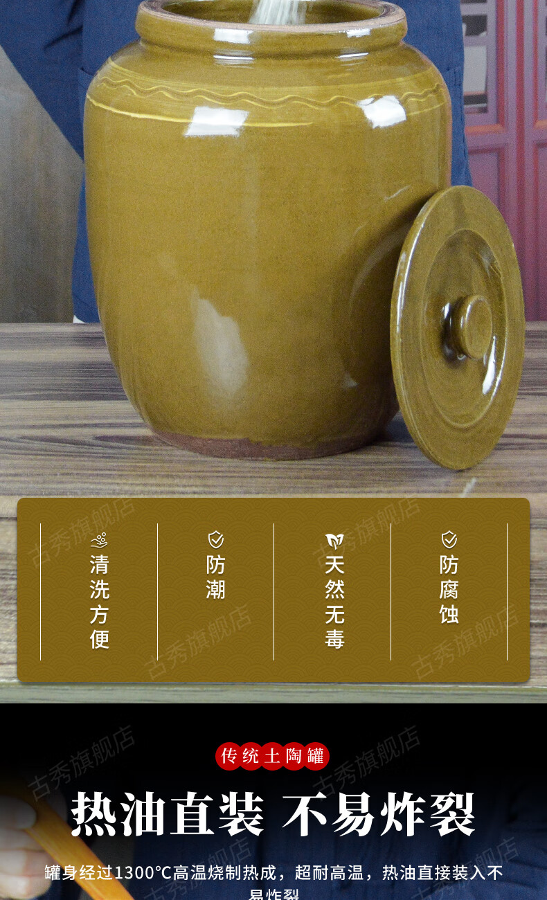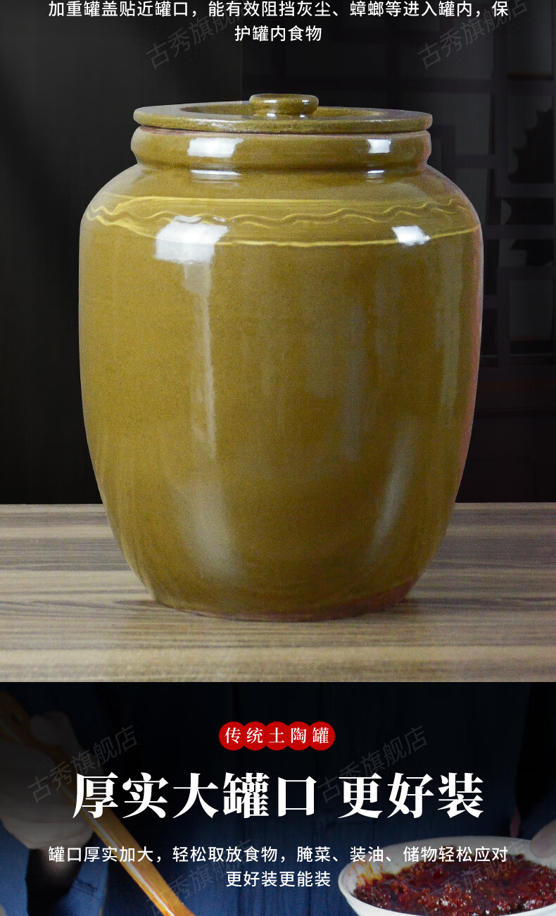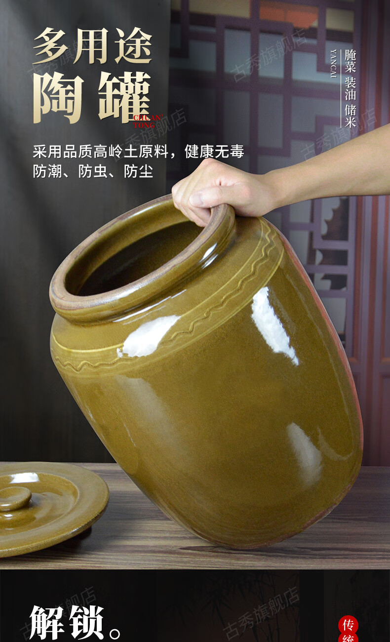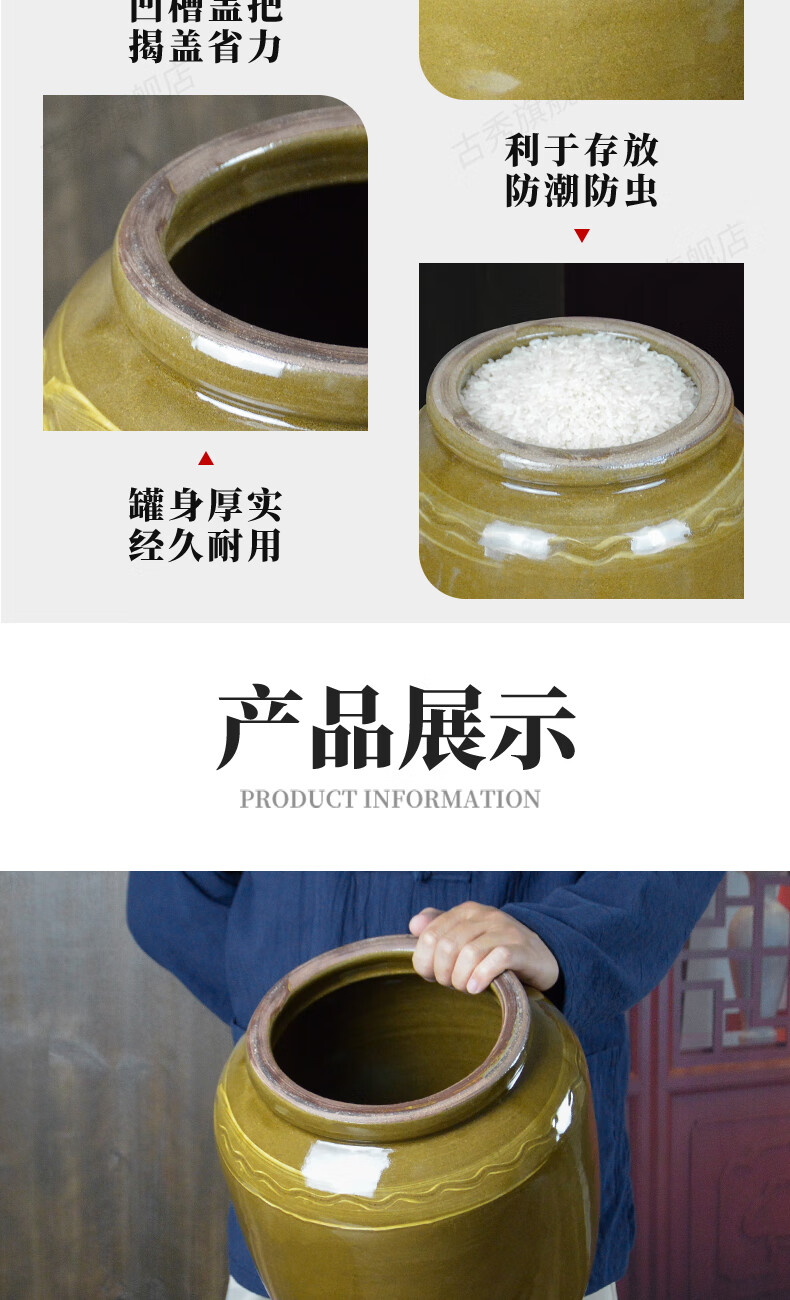 Topological rice jar ceramic household old-fashioned earthenware lard jar high temperature resistant with lid insect-proof high-end rice barrel yellow pickles water capacity 7Jin Jin equals 0.5kg with pattern