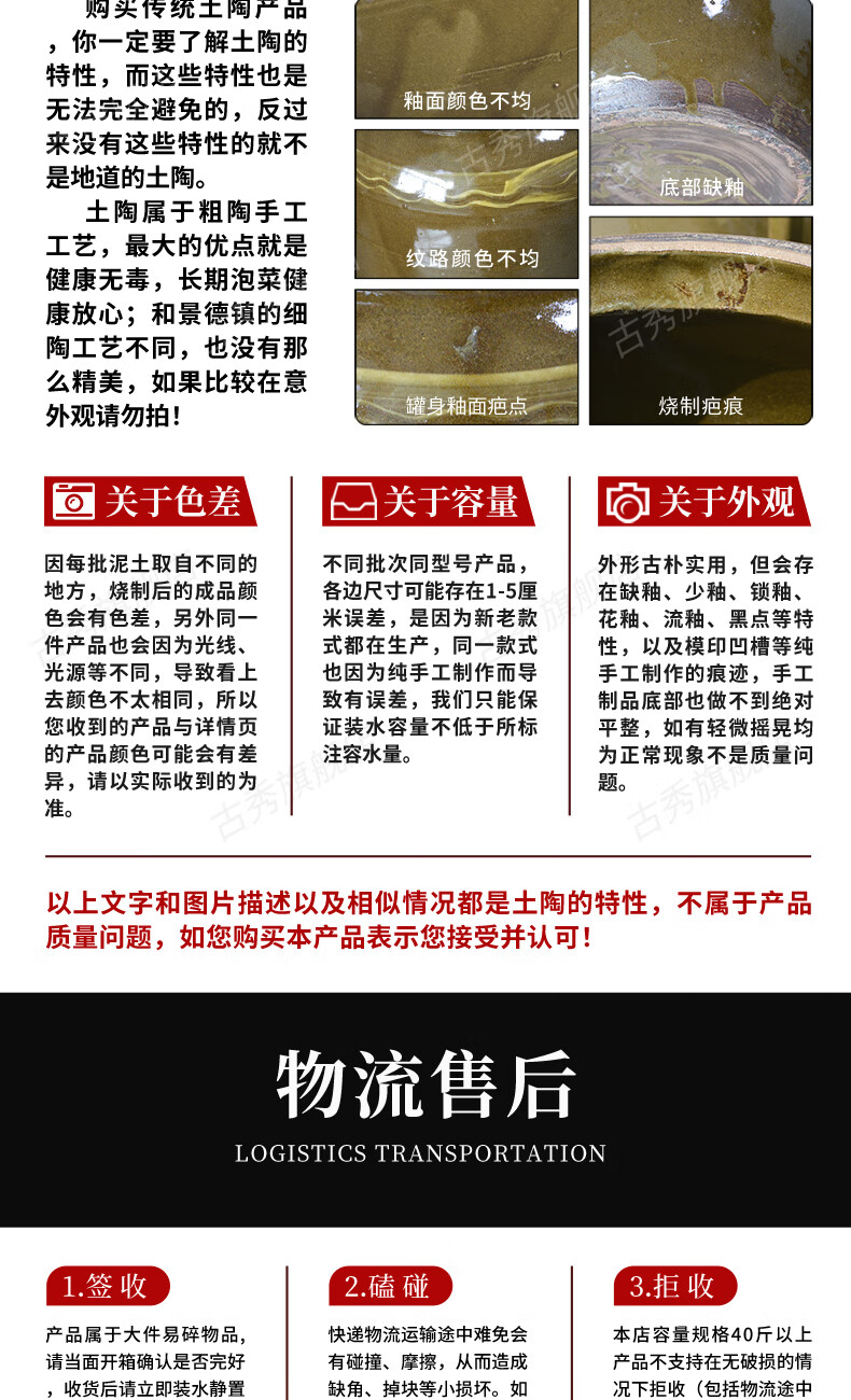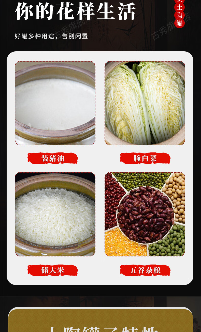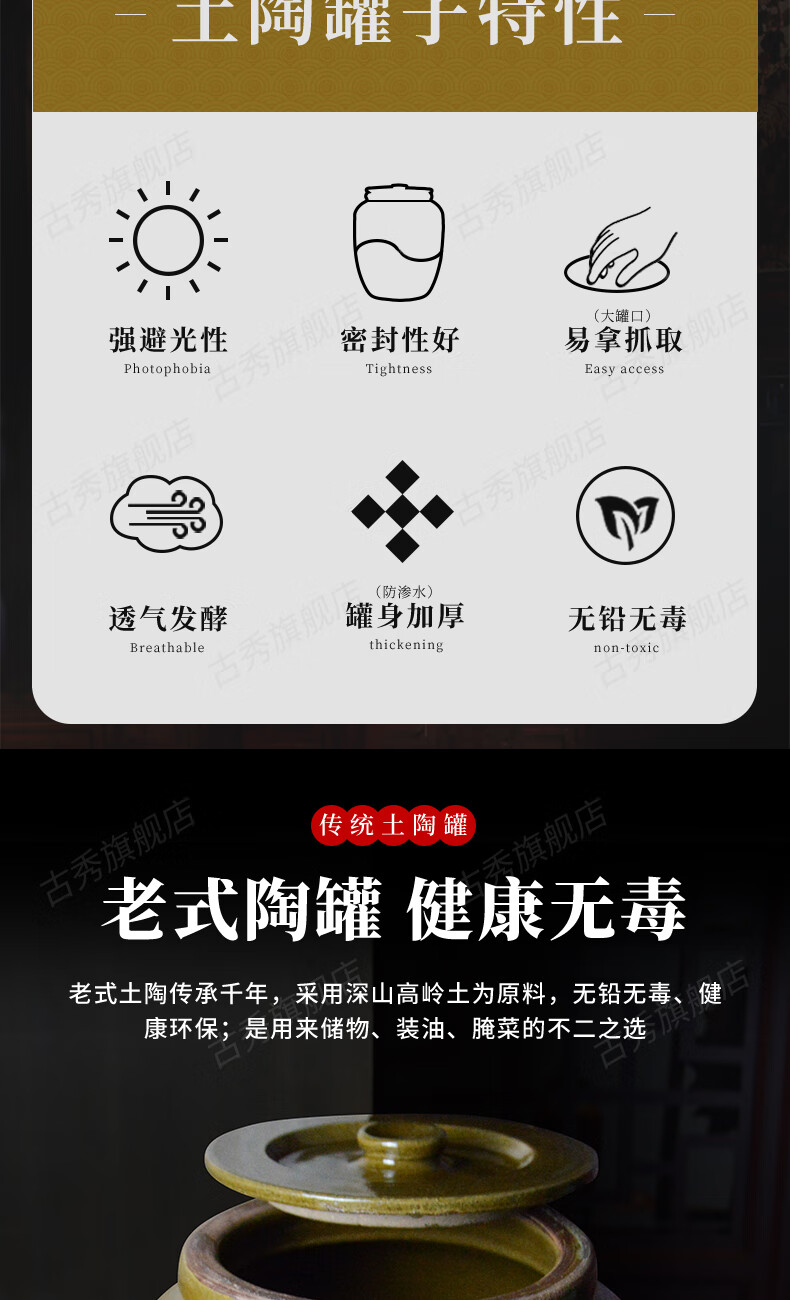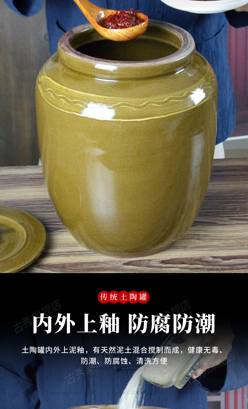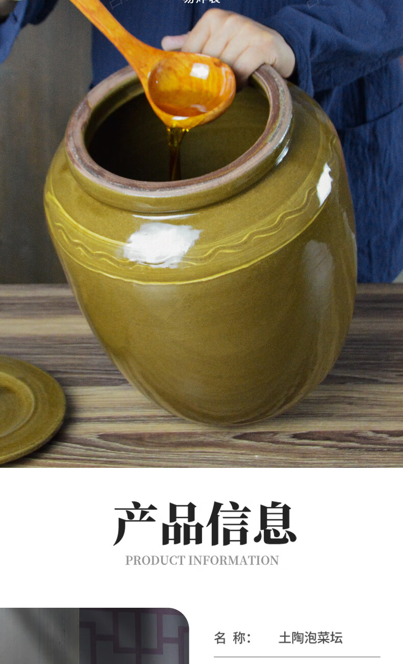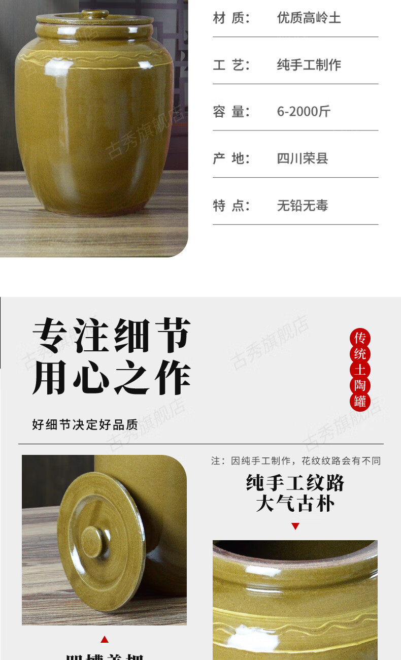 Topological rice jar ceramic household old-fashioned earthenware lard jar high temperature resistant with lid insect-proof high-end rice barrel yellow pickles water capacity 7Jin Jin equals 0.5kg with pattern