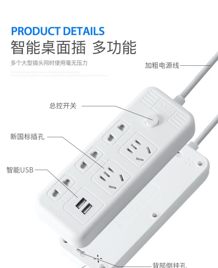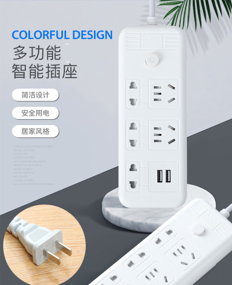 2023 socket mini USB plug strip wiring board two holes two jack plug two feet with plug board extension cord Q2 two sockets total length 0.8 meters
