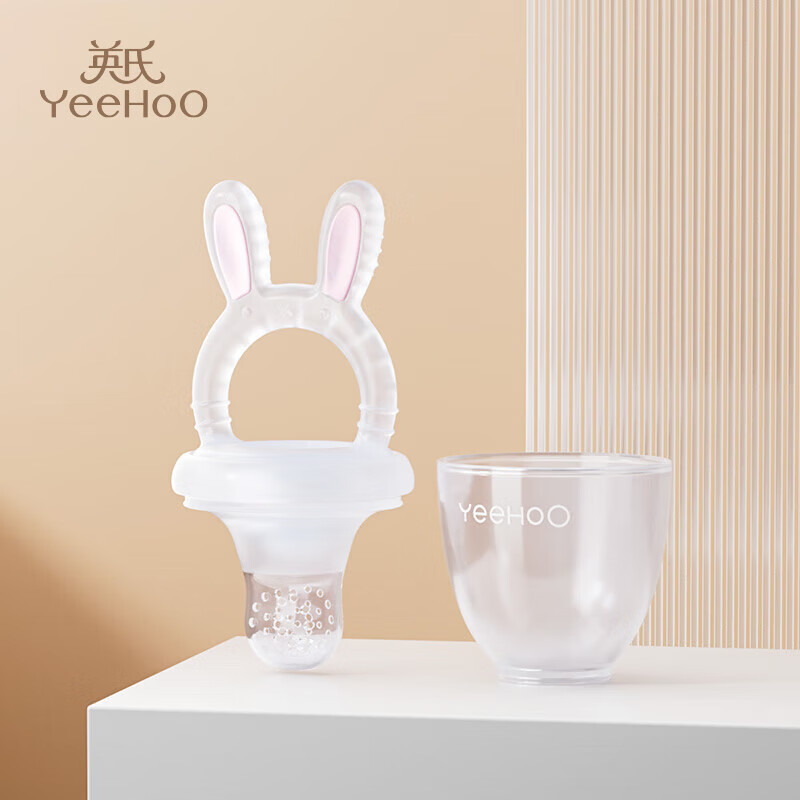 YEEHOO baby bite bag, fruit and food supplement artifact, baby fruit and vegetable juice teether, molar stick, full silicone pacifier, nano silver, 4 months+, full silicone, 1 pack