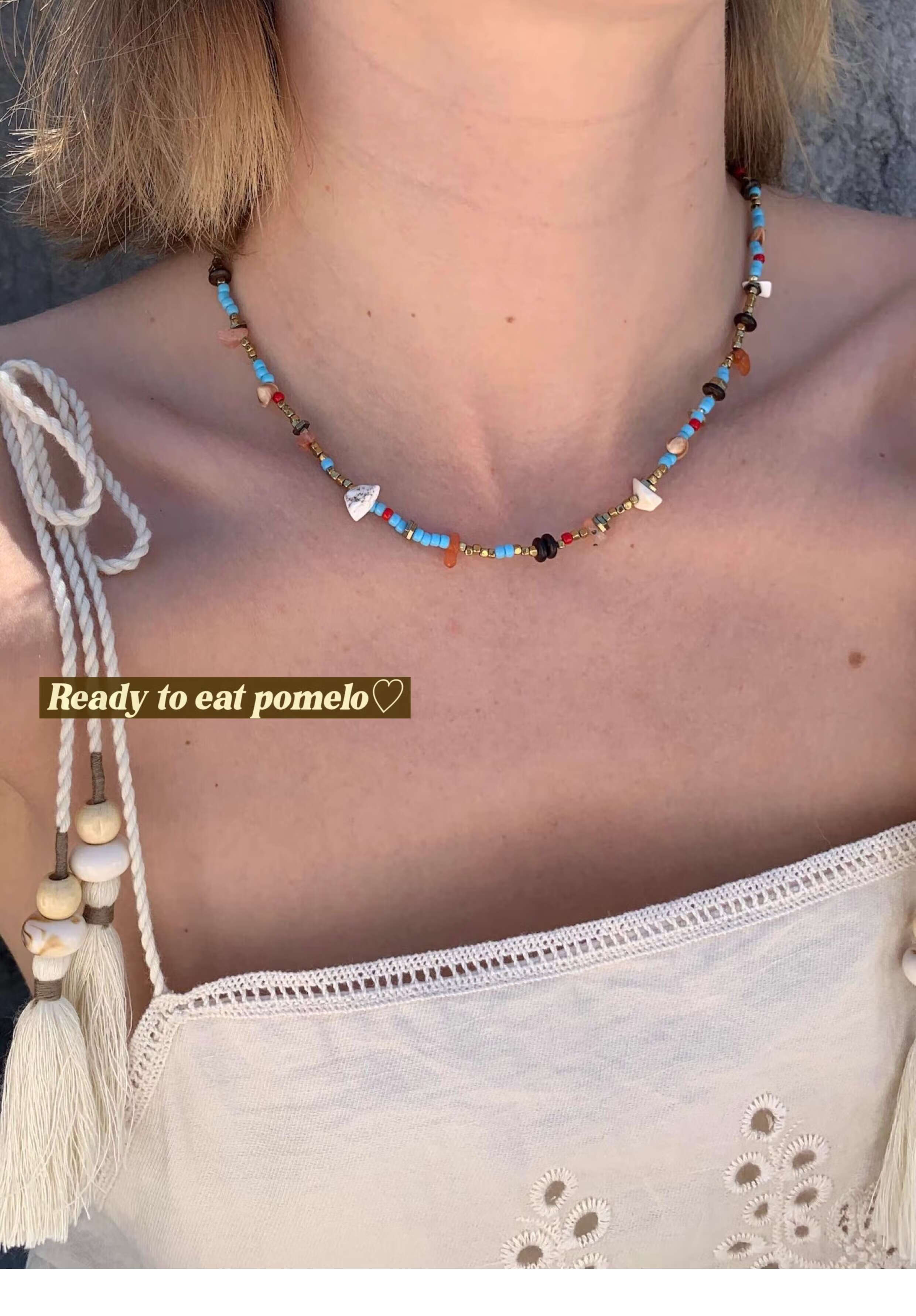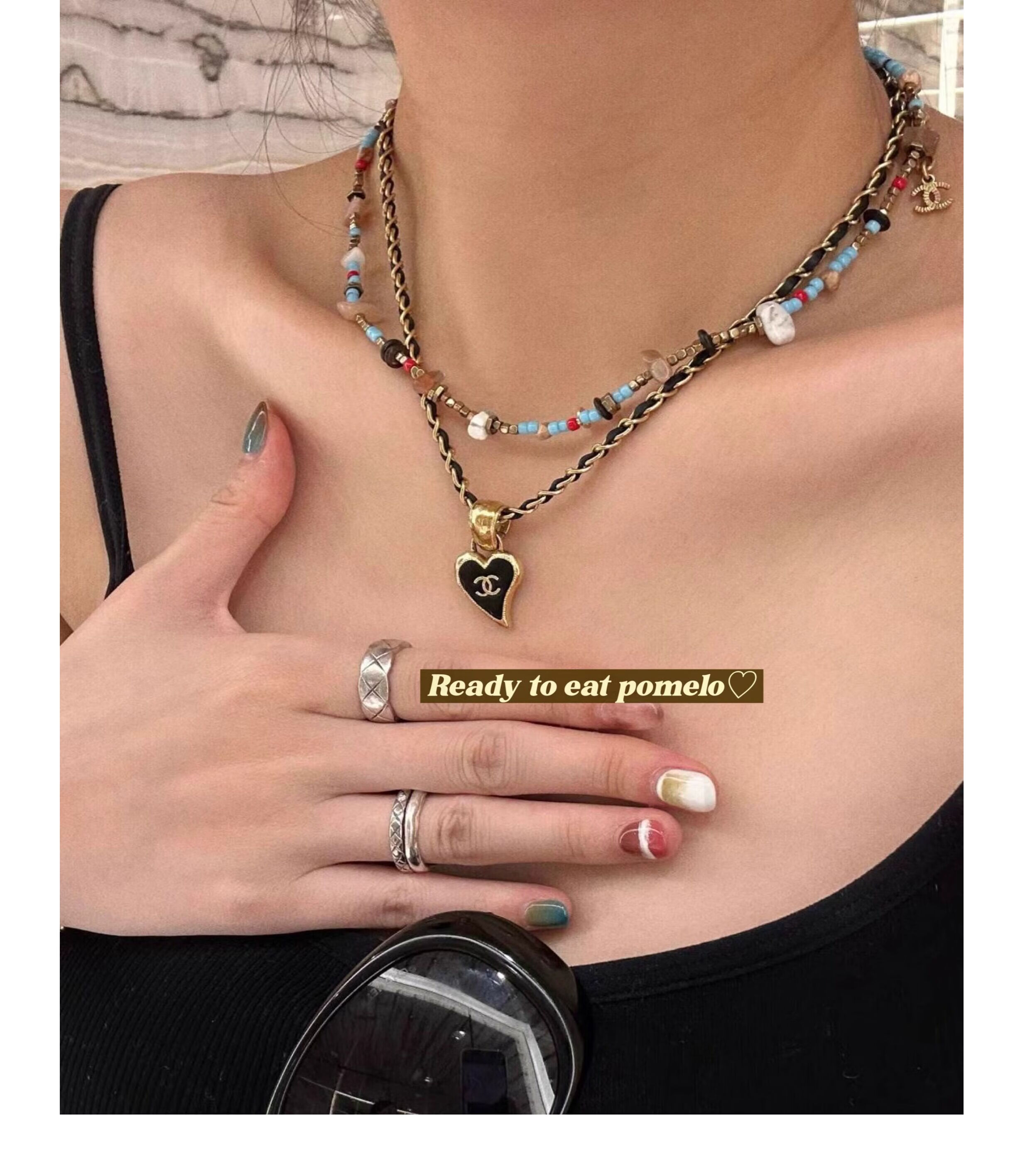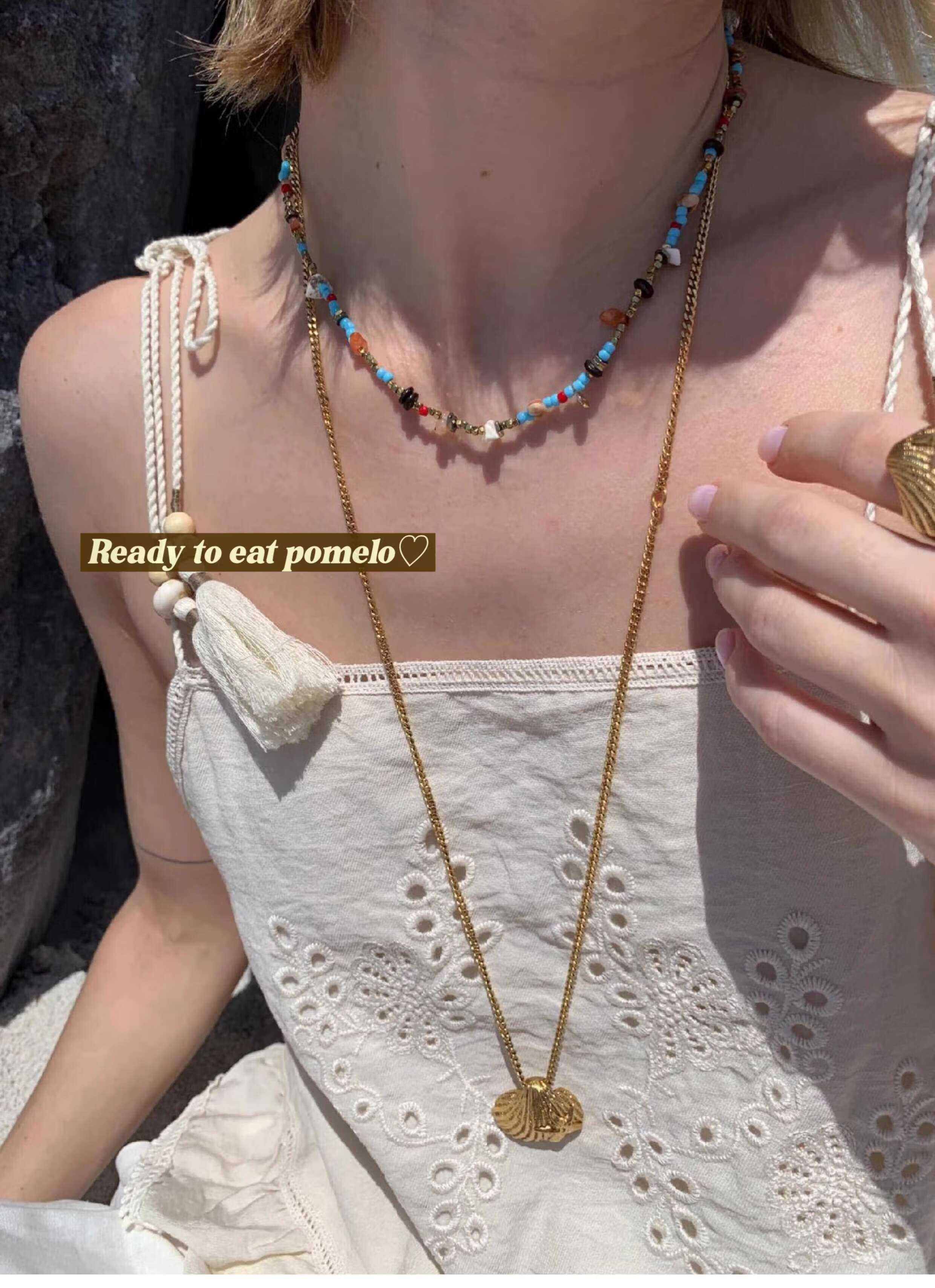 YIBIYRTEP Sorrento Holiday* Natural Jade Black Agate Necklace Colored Irregular Handmade Holiday Feeling Clavicle Chain Sorrento Holiday* Copper Plated 18k Gold