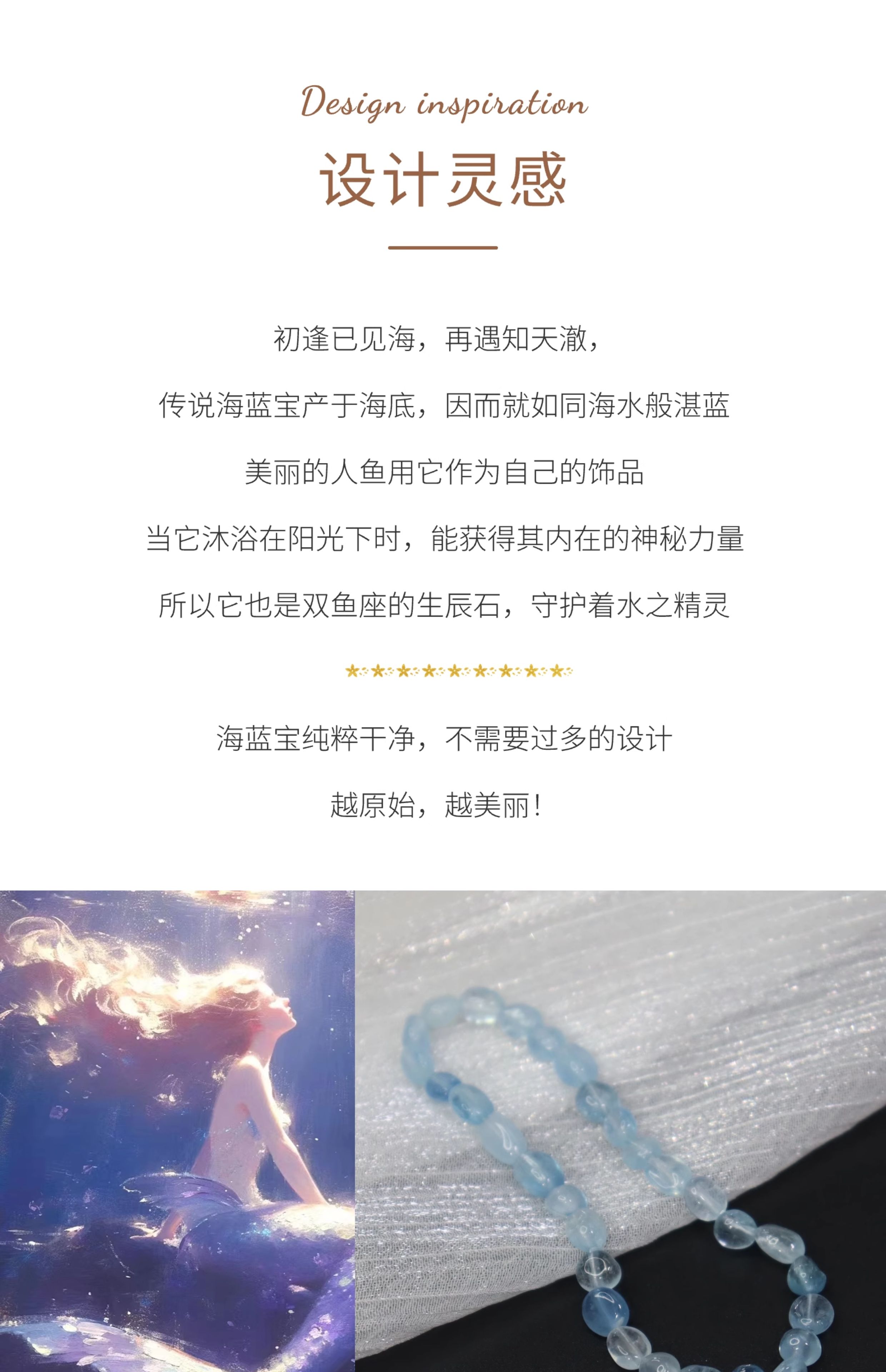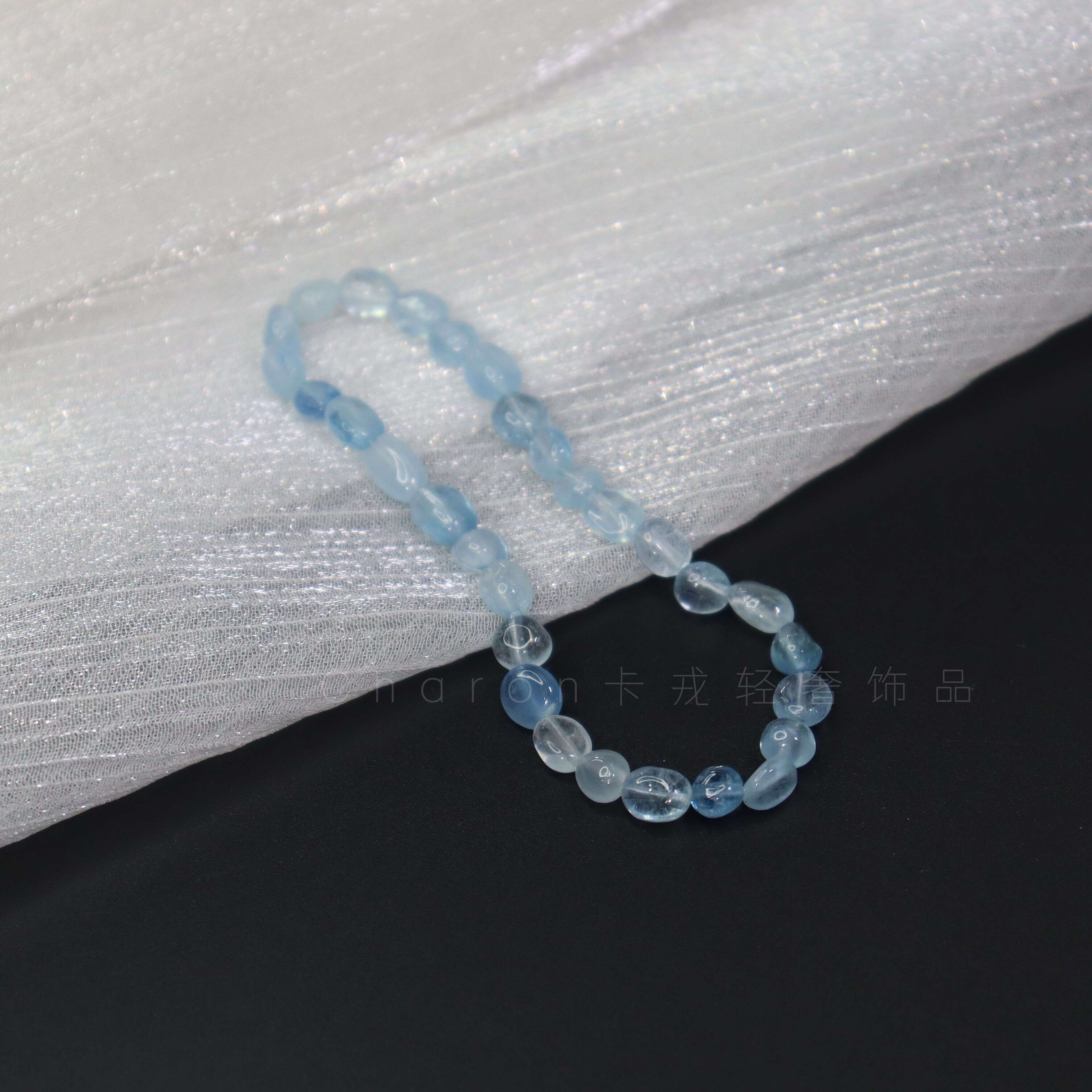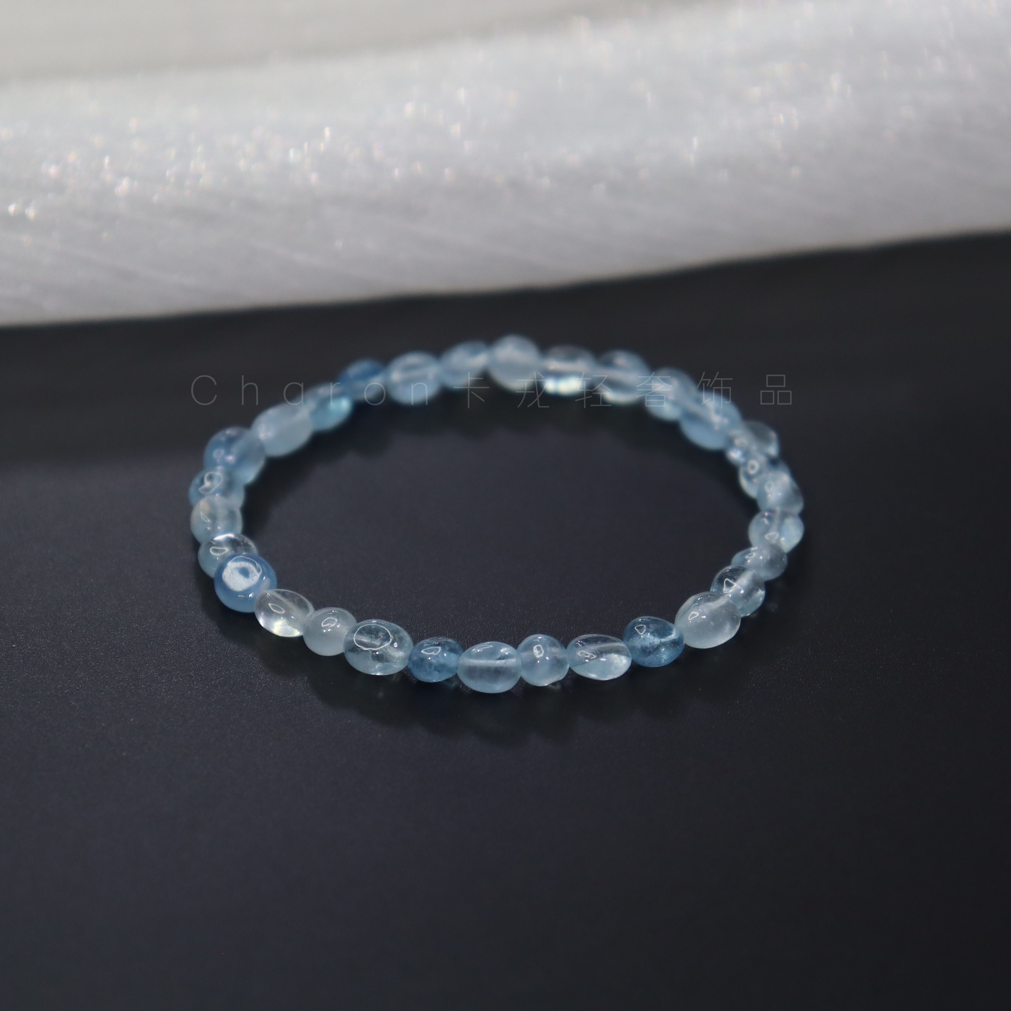 YIBIY natural conformable aquamarine raw stone bracelet irregular sky blue crystal bracelet niche design gift for best friends, sea blue, bead diameter about 4mm, 14cm