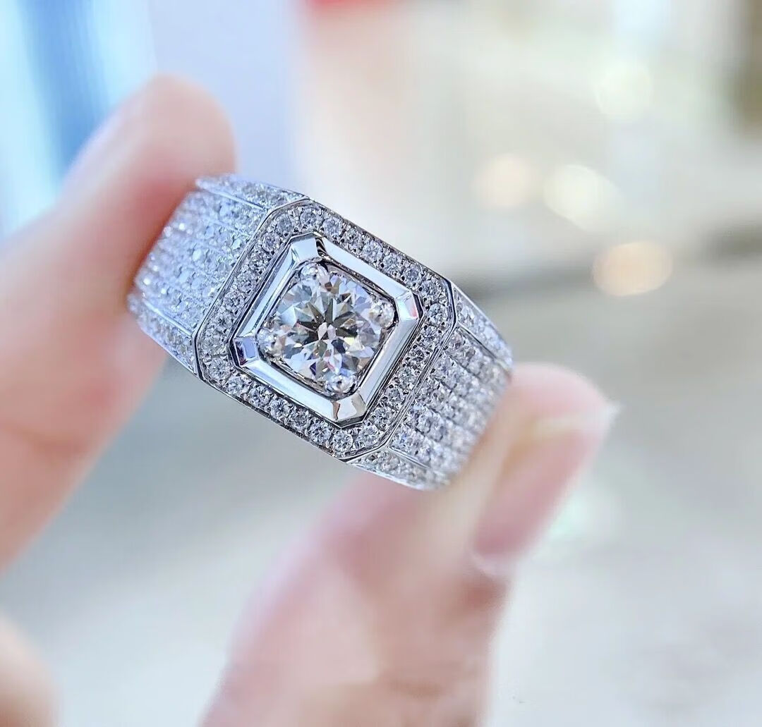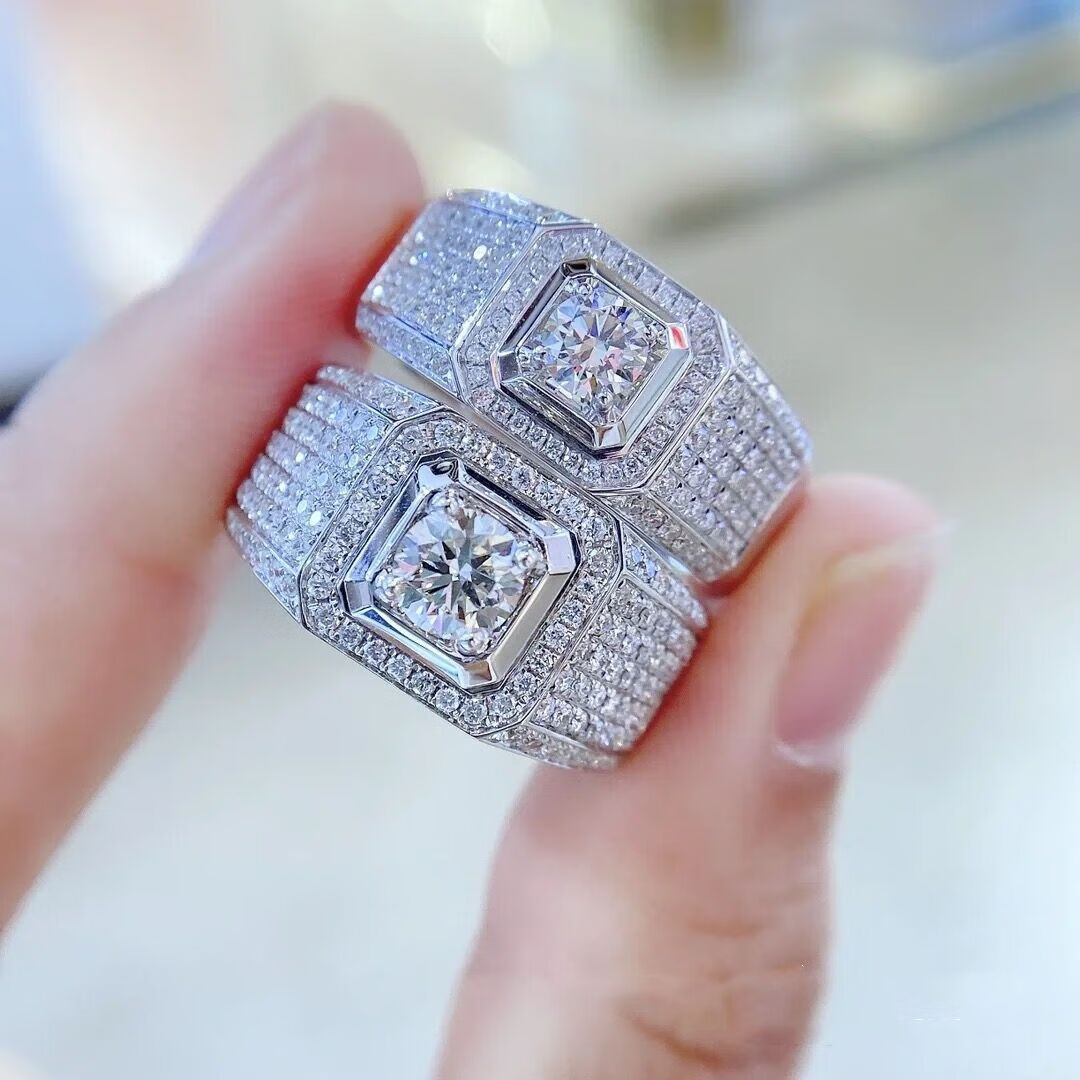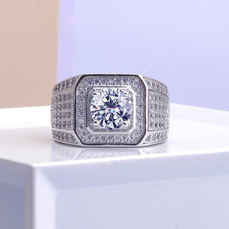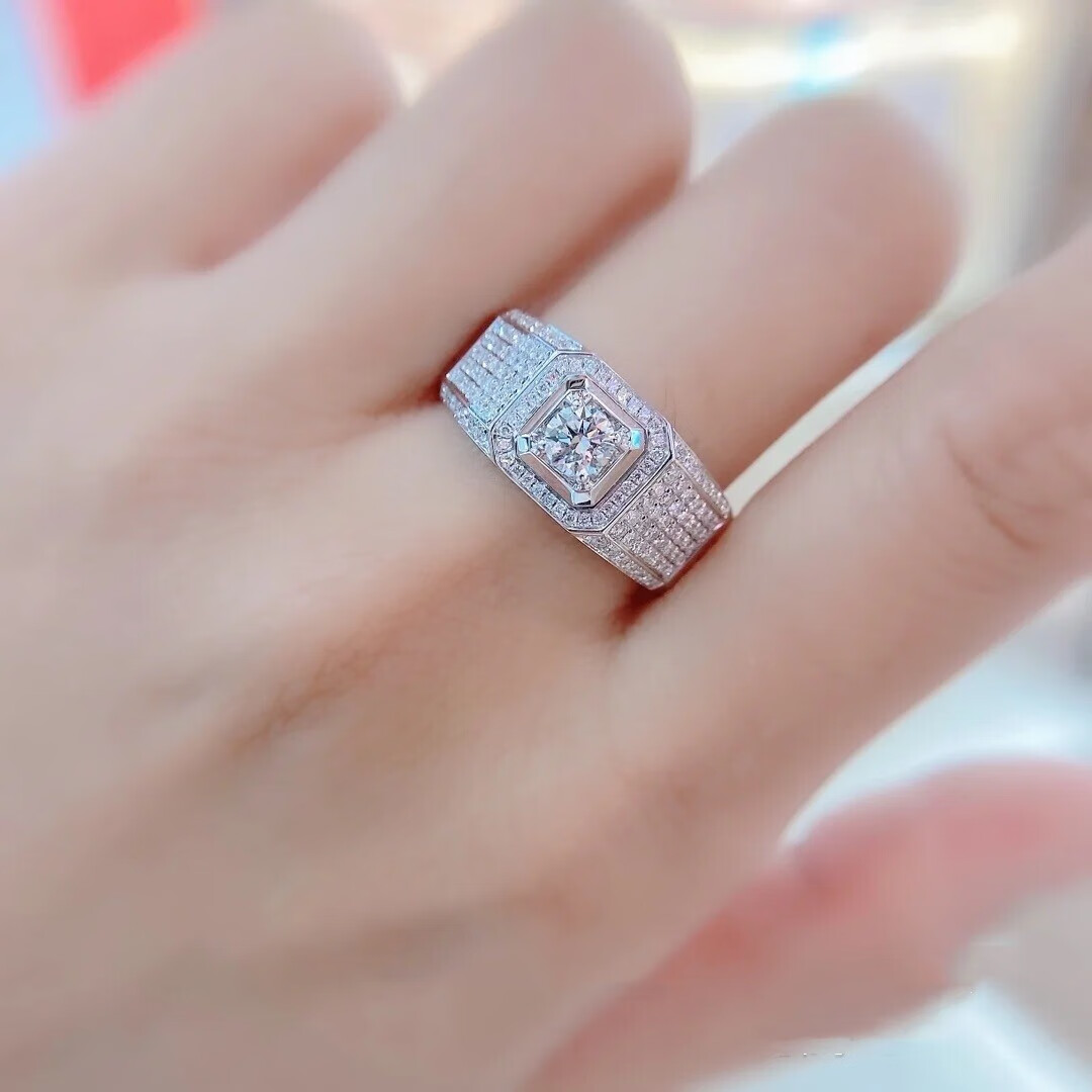 Weici imported D-color moissanite diamond ring studded with baby's breath men's ring wedding ring S925 silver plated platinum couple proposal No. 16 main stone 1 carat