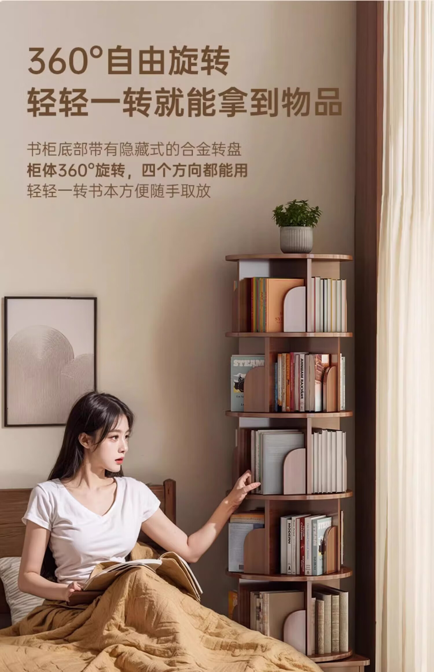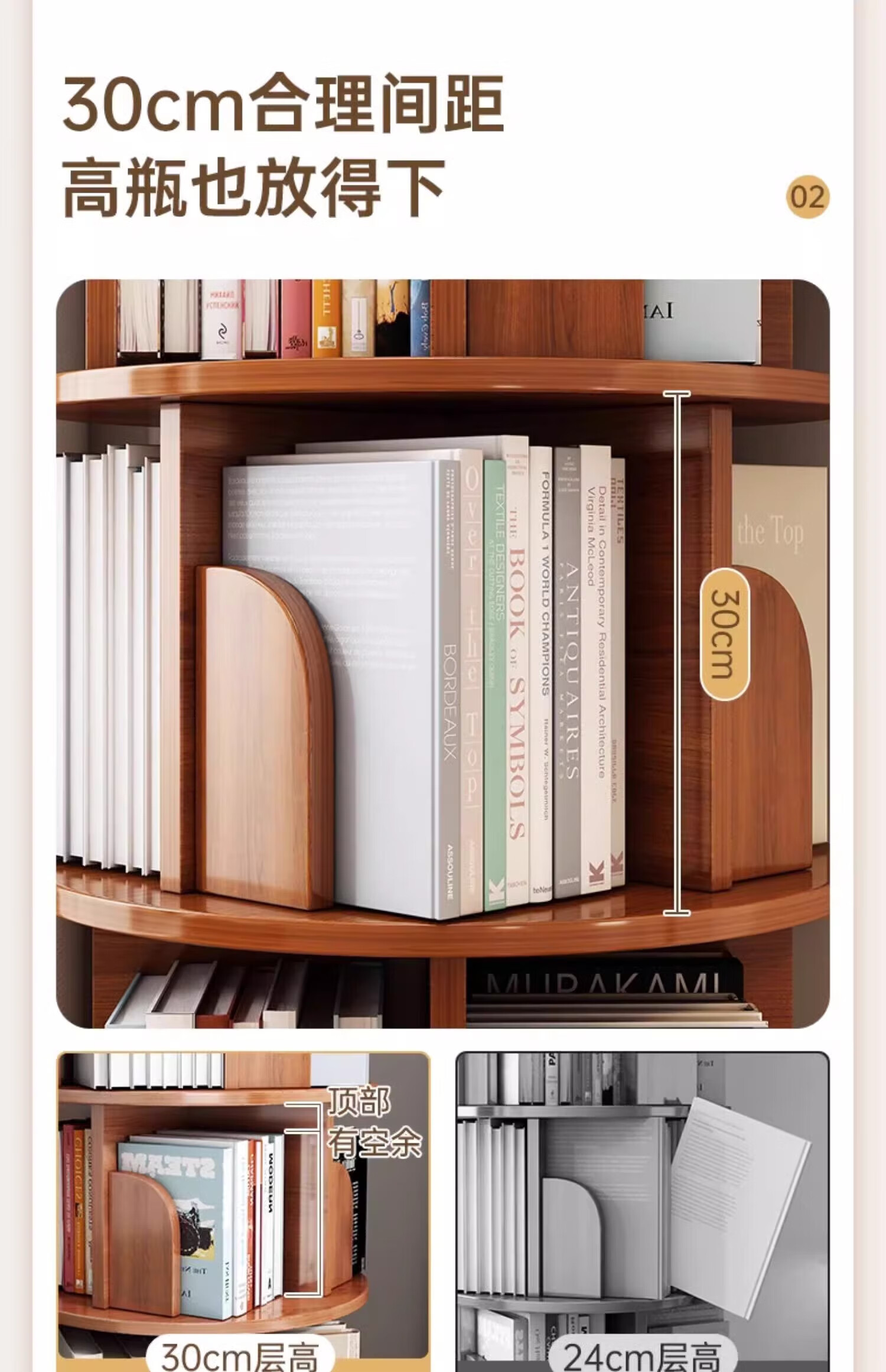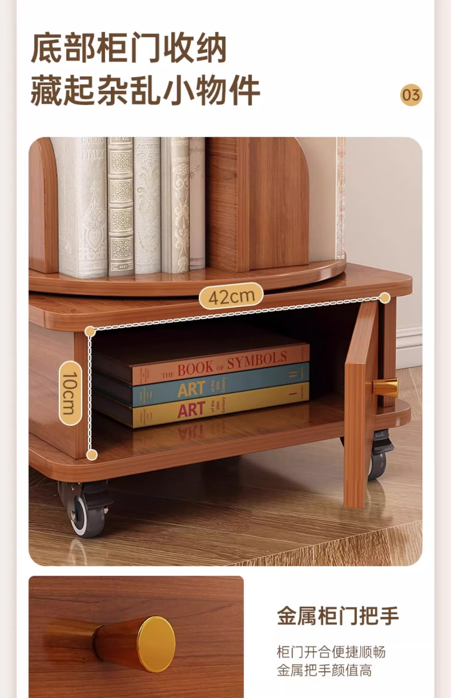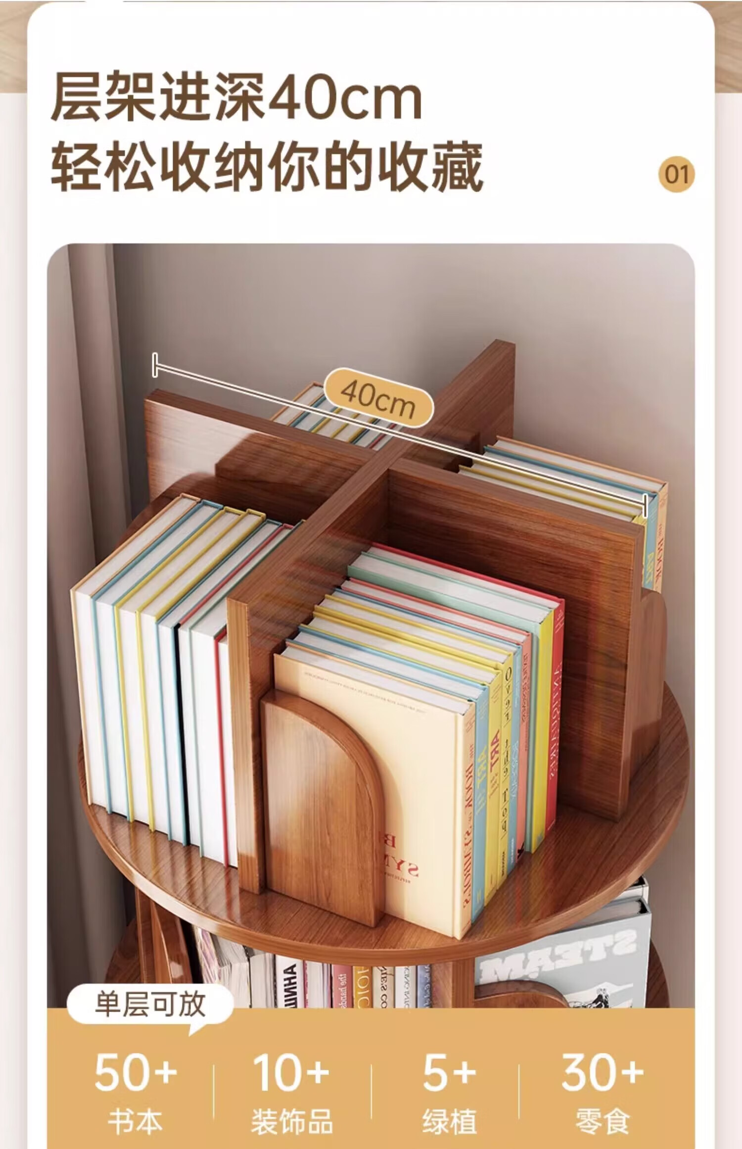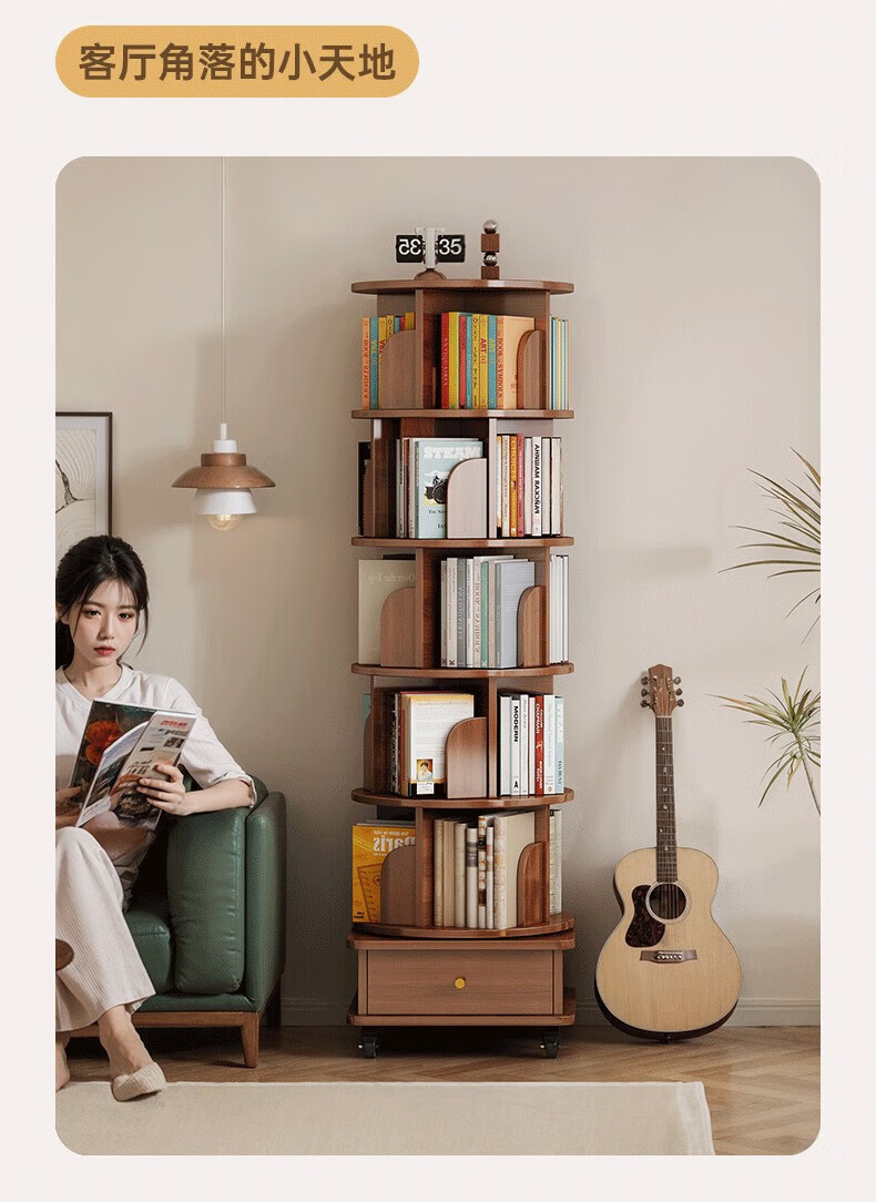 Rotating bookshelf floor-standing storage rack home living room storage cabinet simple storage cabinet student solid wood color cabinet paint-free solid wood wood color 39*39*160cm