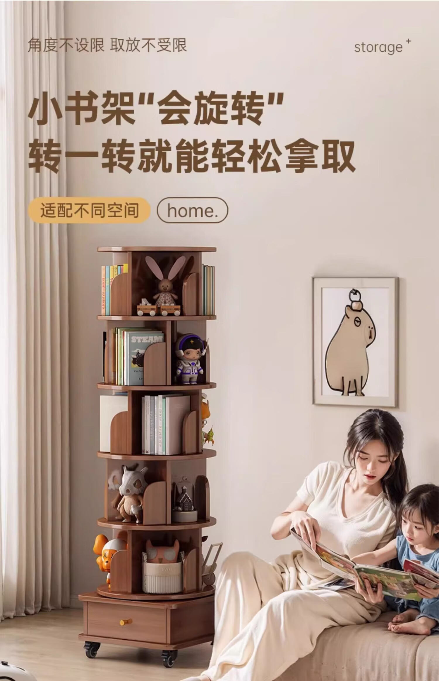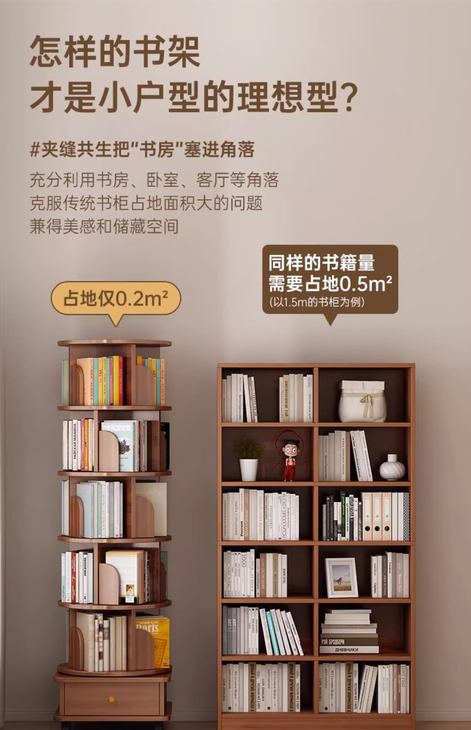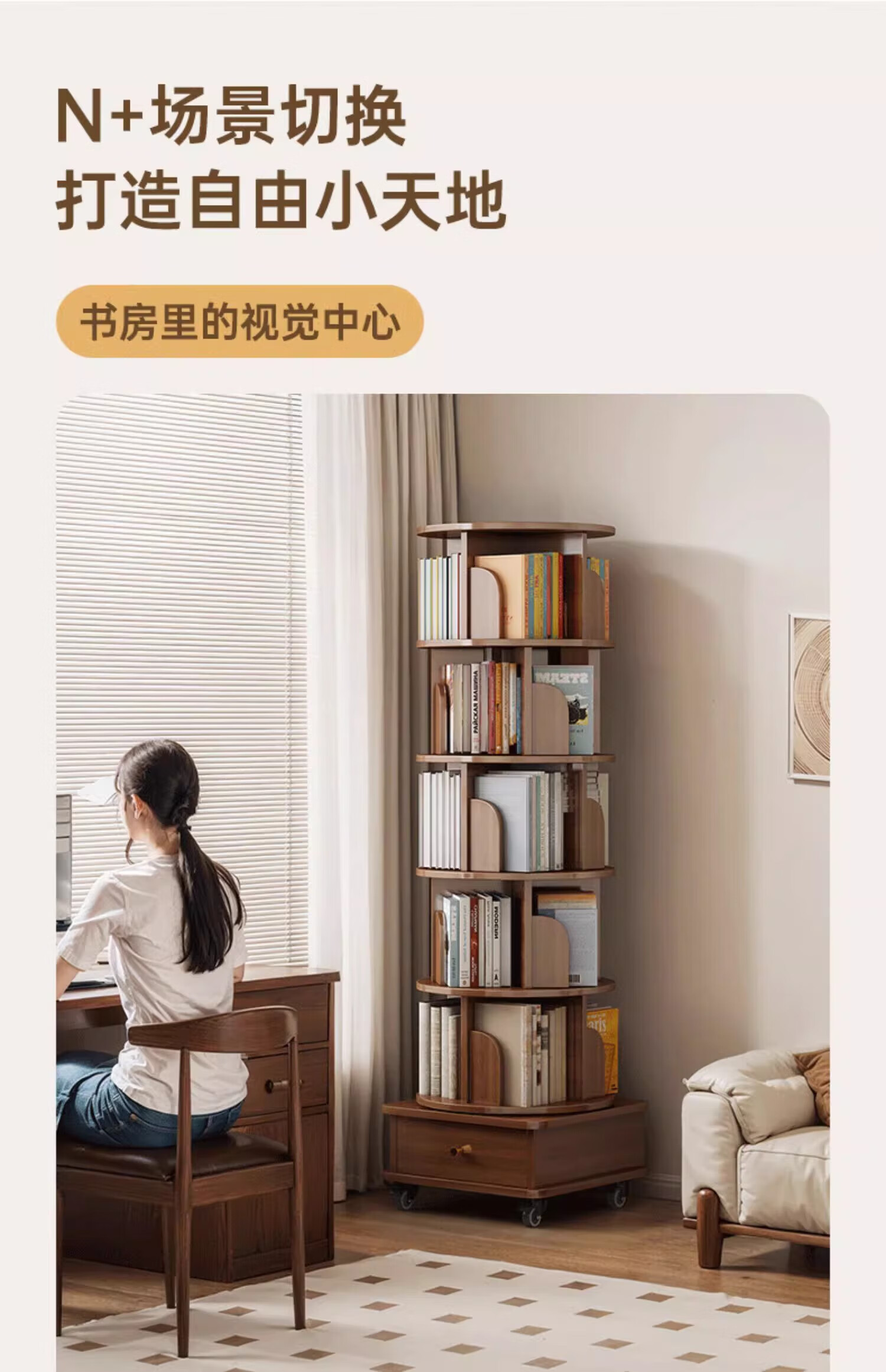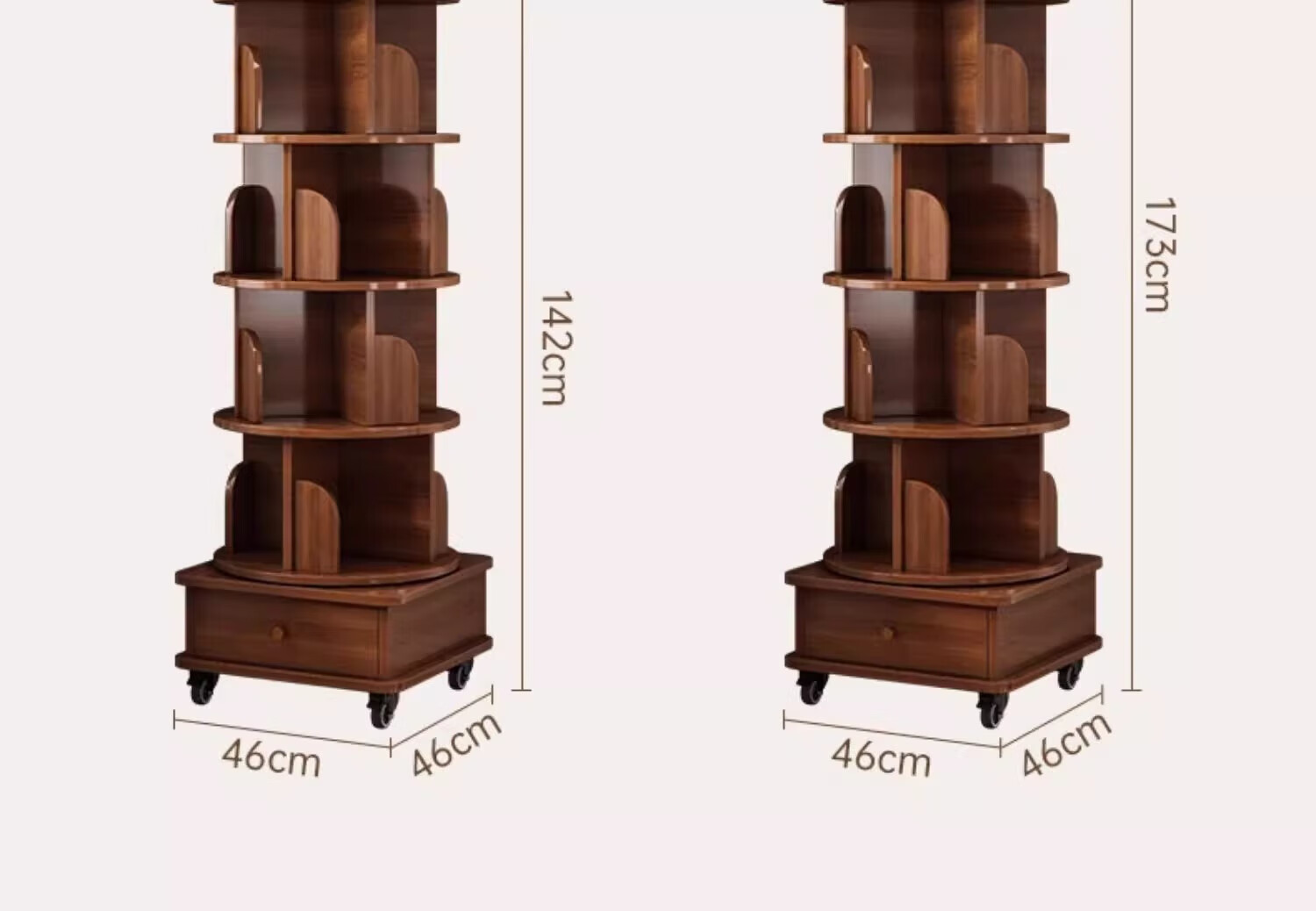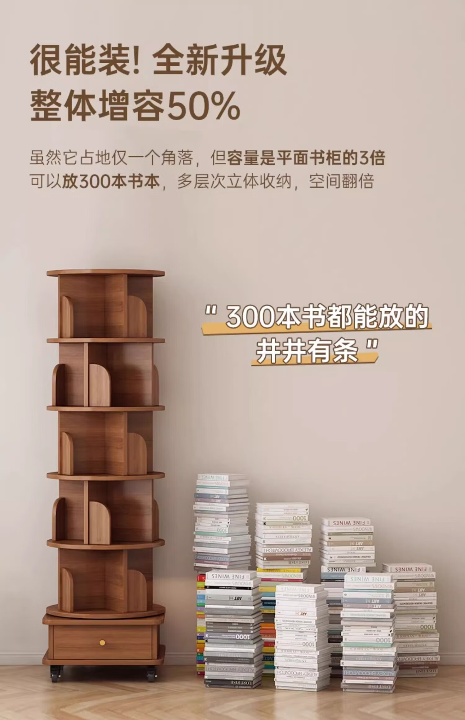 Rotating bookshelf floor-standing storage rack home living room storage cabinet simple storage cabinet student solid wood color cabinet paint-free solid wood wood color 39*39*160cm