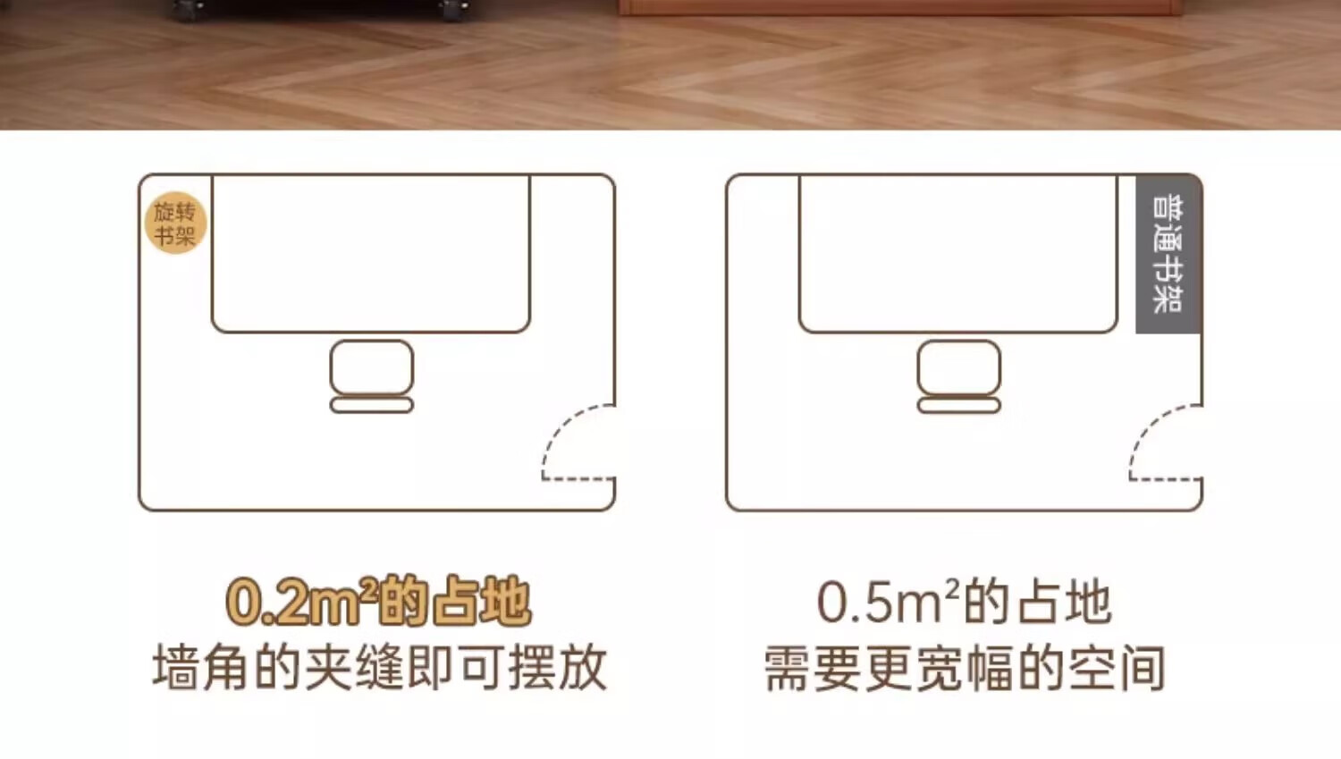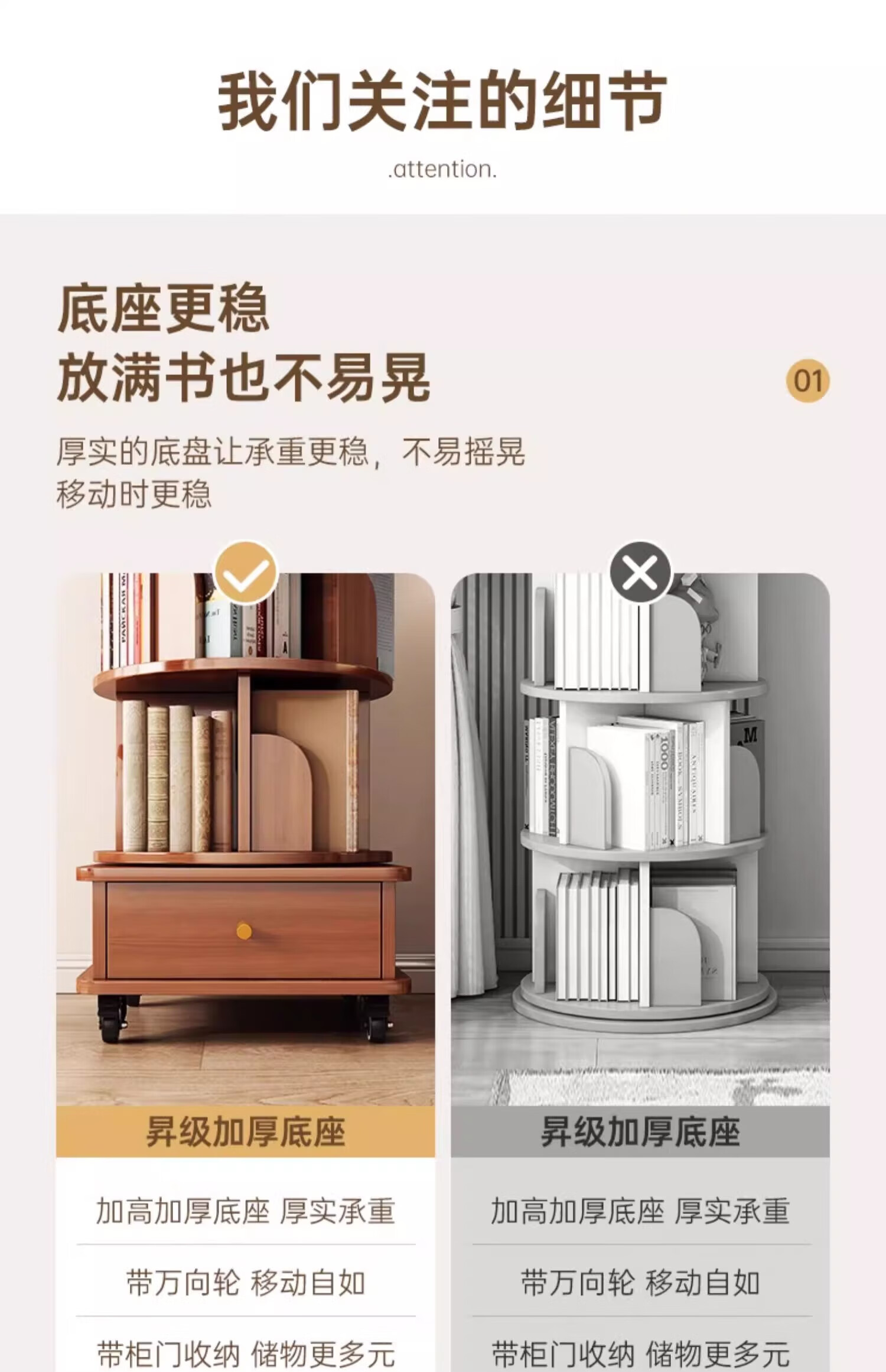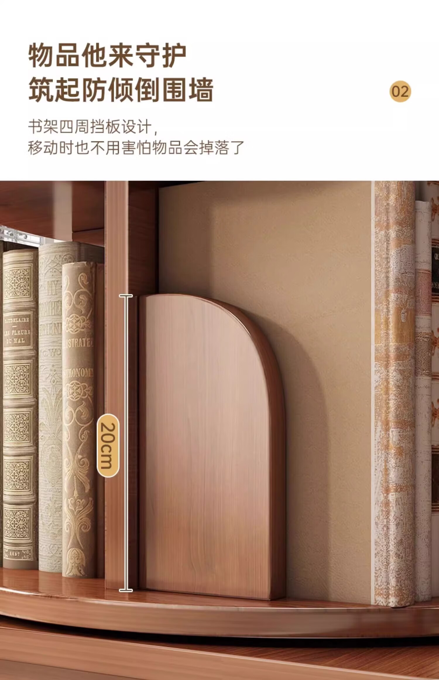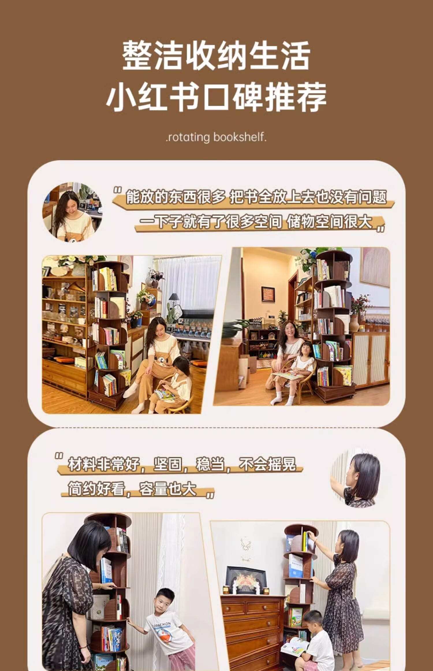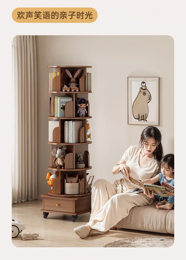 Rotating bookshelf floor-standing storage rack home living room storage cabinet simple storage cabinet student solid wood color cabinet paint-free solid wood wood color 39*39*160cm
