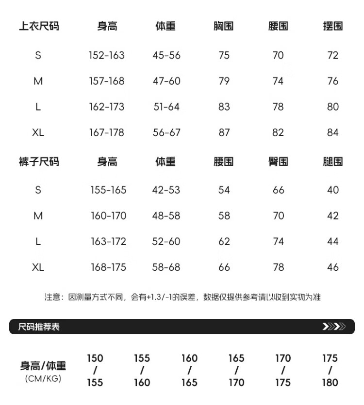 China (cm) 160-165/84-86 165-170 / 88-90 167-172 / 92-96 168-173 / 98-102 170-176 / 106-110