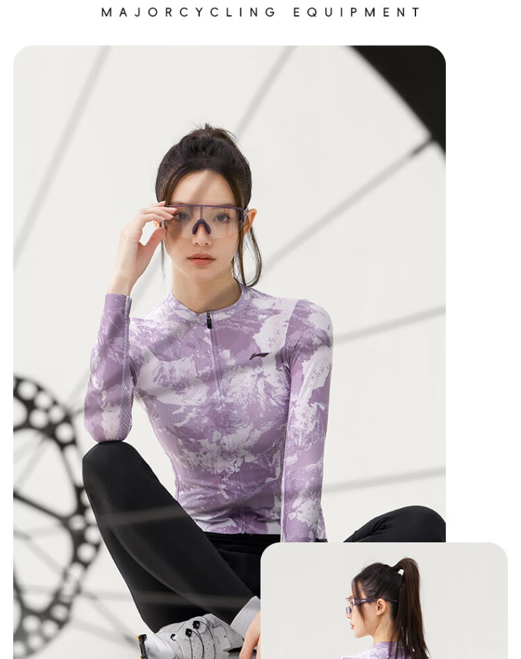 Li Ning (LI-NING) Cycling Suit Long Sleeve Women's 2025 New Road Cycling Equipment Full Set Short Sleeve Top Cycling Pants Summer Mountain Purple Long Sleeve Lightweight Comfort High Elasticity Slim M