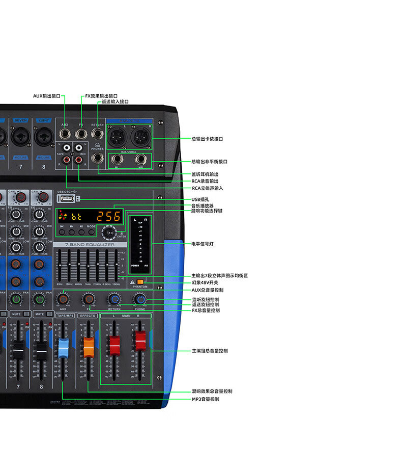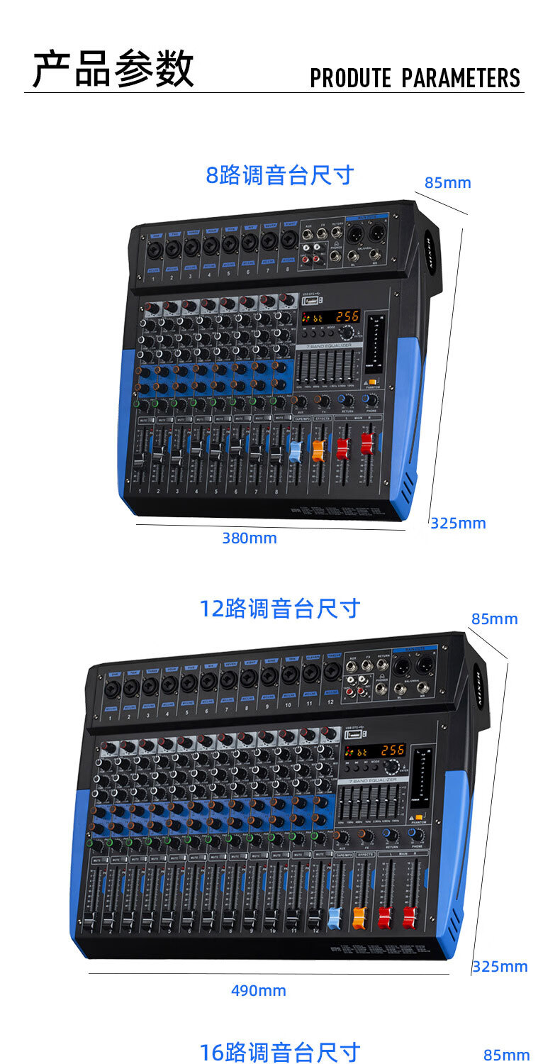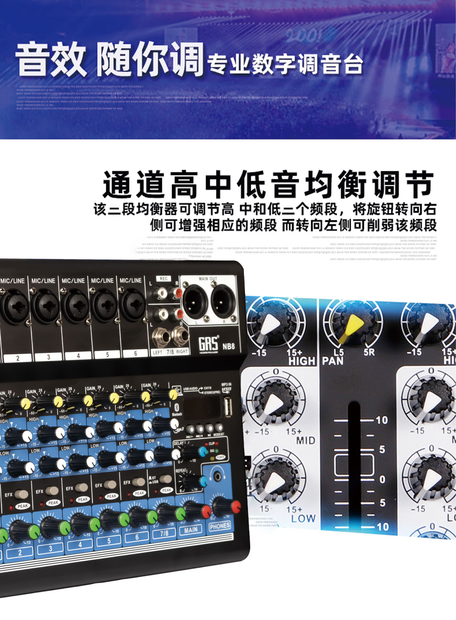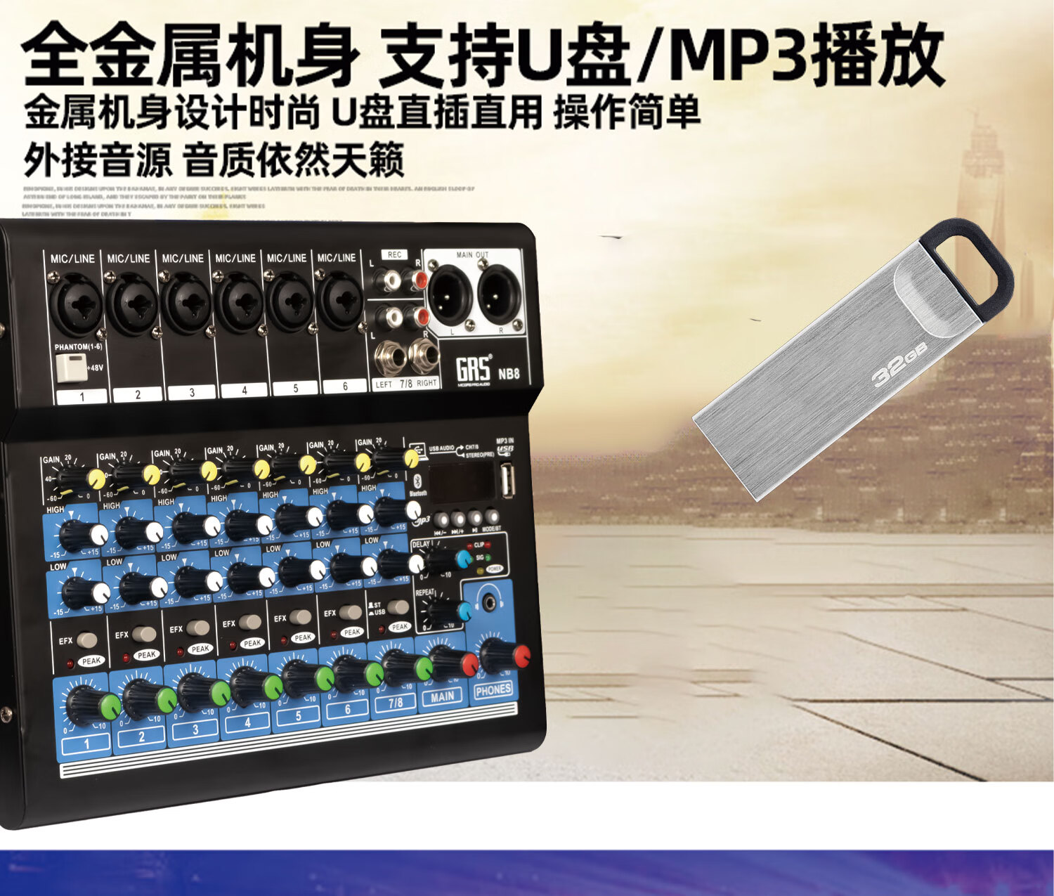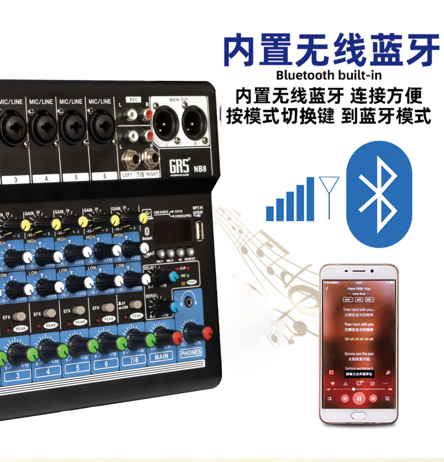 MICGRS professional 8-channel, 12-channel, 16-channel mixer, 256 reverberation effects, stage conference performance recording, live broadcast, USB recording, Bluetooth with sound card, mixer auxiliary output NB8 (high-definition sound quality, metal body)