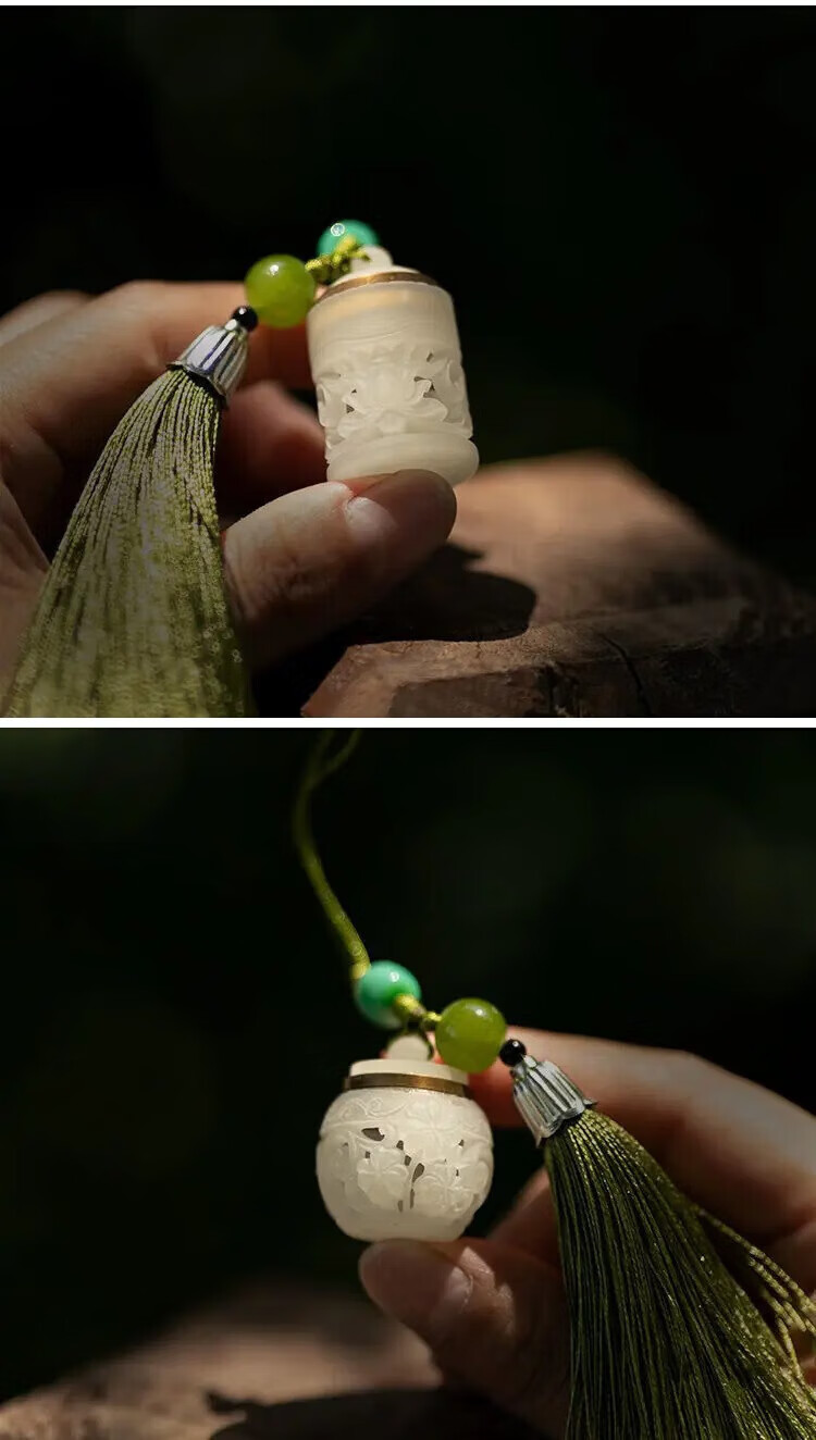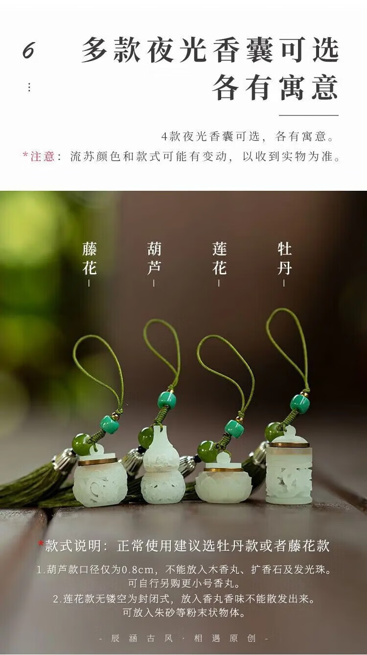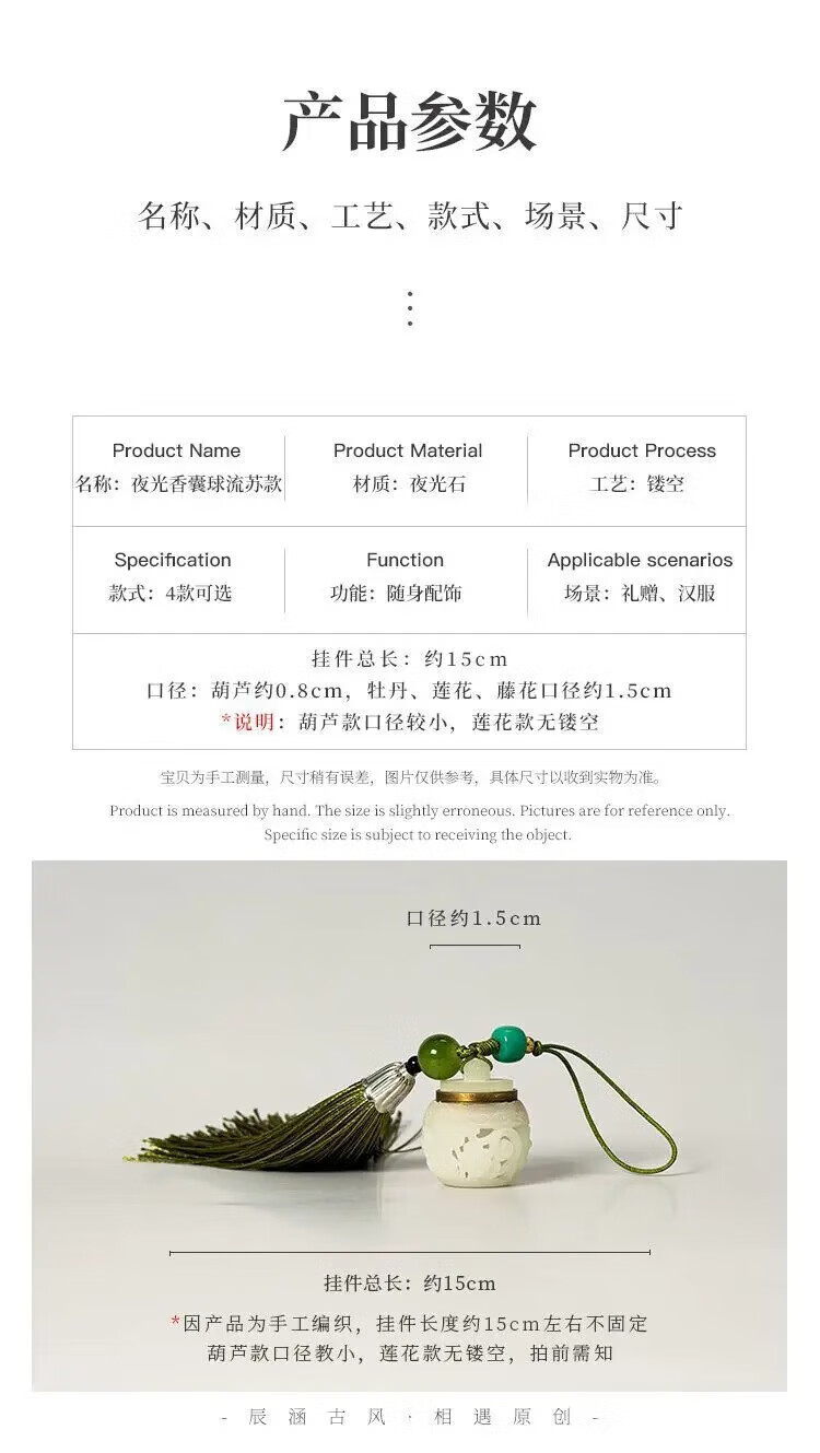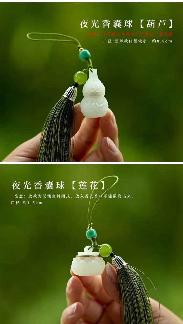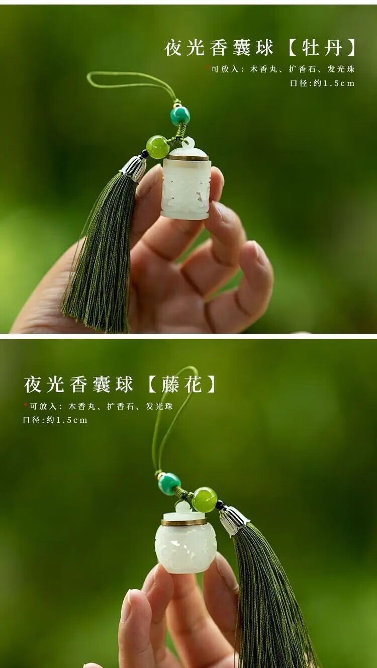 Retro hollow jade sachet pendant, light-sensitive color changing, luminous pressed lapel sachet ball pendant, fragrant pill ball to wear with you. Sachet pendant - pressed lapel tassel style lotus - 1 piece