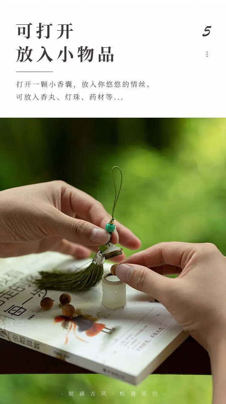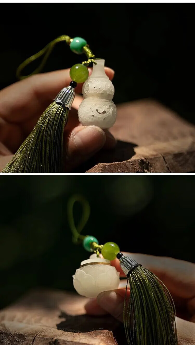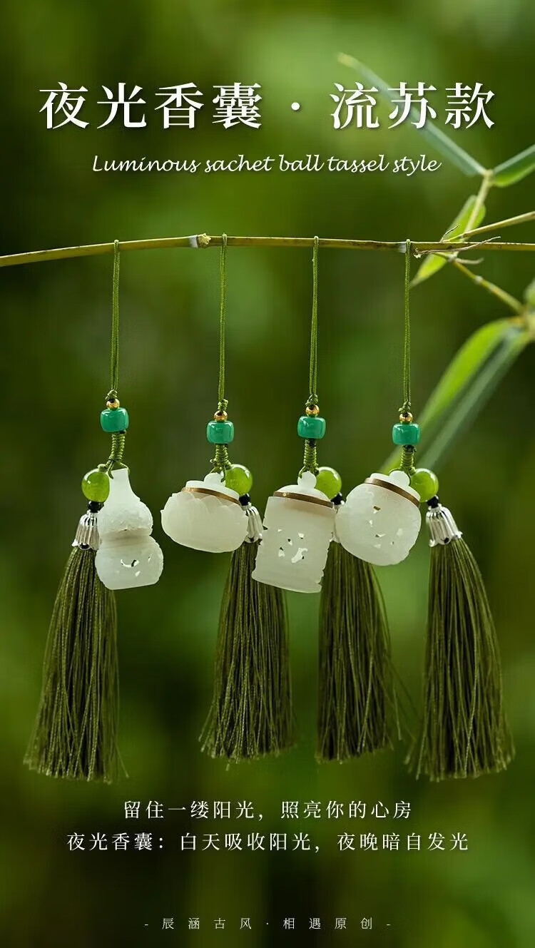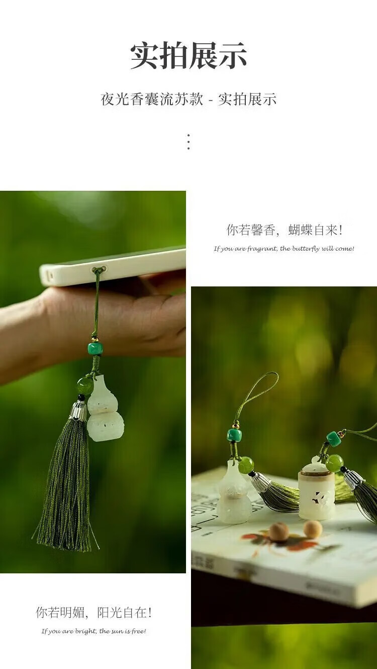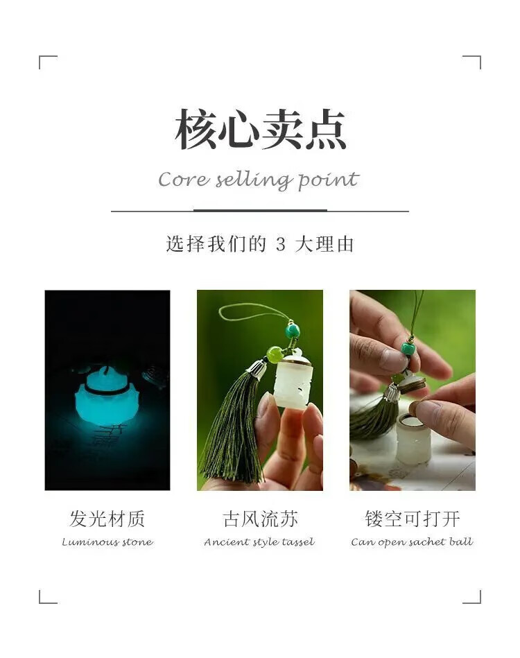 Retro hollow jade sachet pendant, light-sensitive color changing, luminous pressed lapel sachet ball pendant, fragrant pill ball to wear with you. Sachet pendant - pressed lapel tassel style lotus - 1 piece