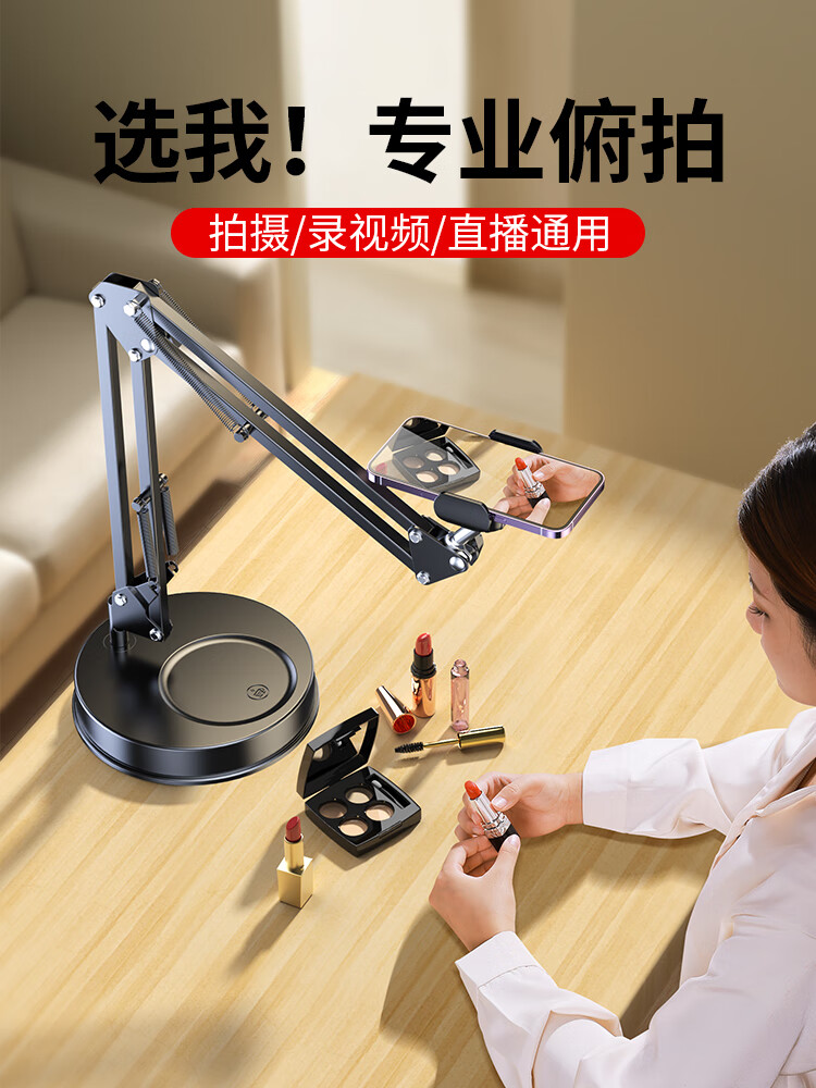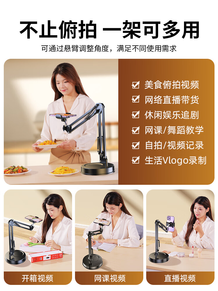 Huaiyin mobile phone stand desktop live broadcast selfie stick tripod for food recording video artifact online class special unboxing vlog teacher calligraphy overhead shooting with fill light base weighted carbon steel cantilever desktop overhead shooting live broadcast bracket