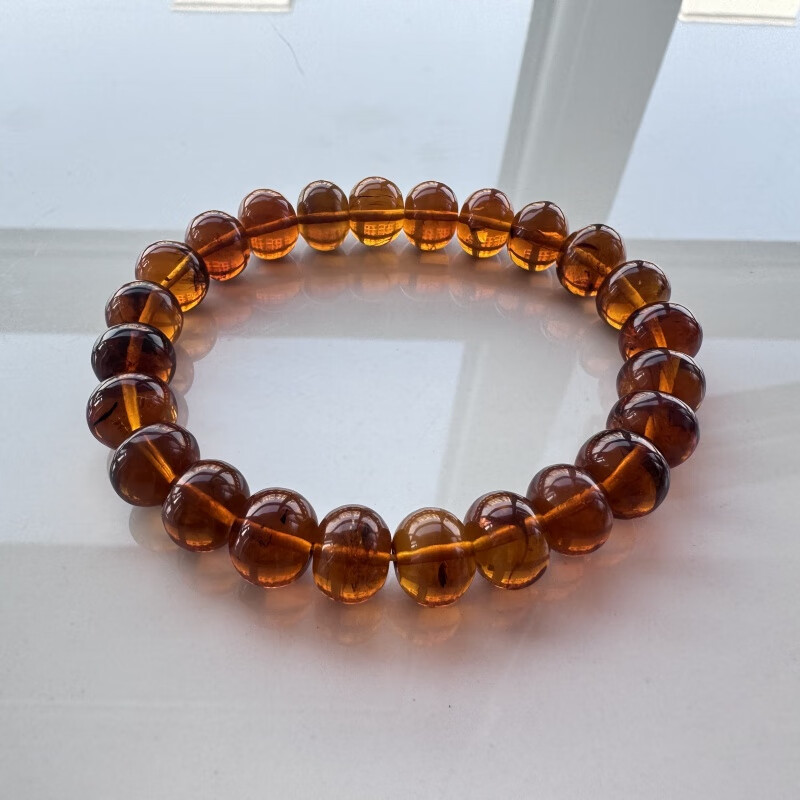Libiao 2025 new high-end fushun amber soybean oil color gold amber 10 mm single circle bracelet