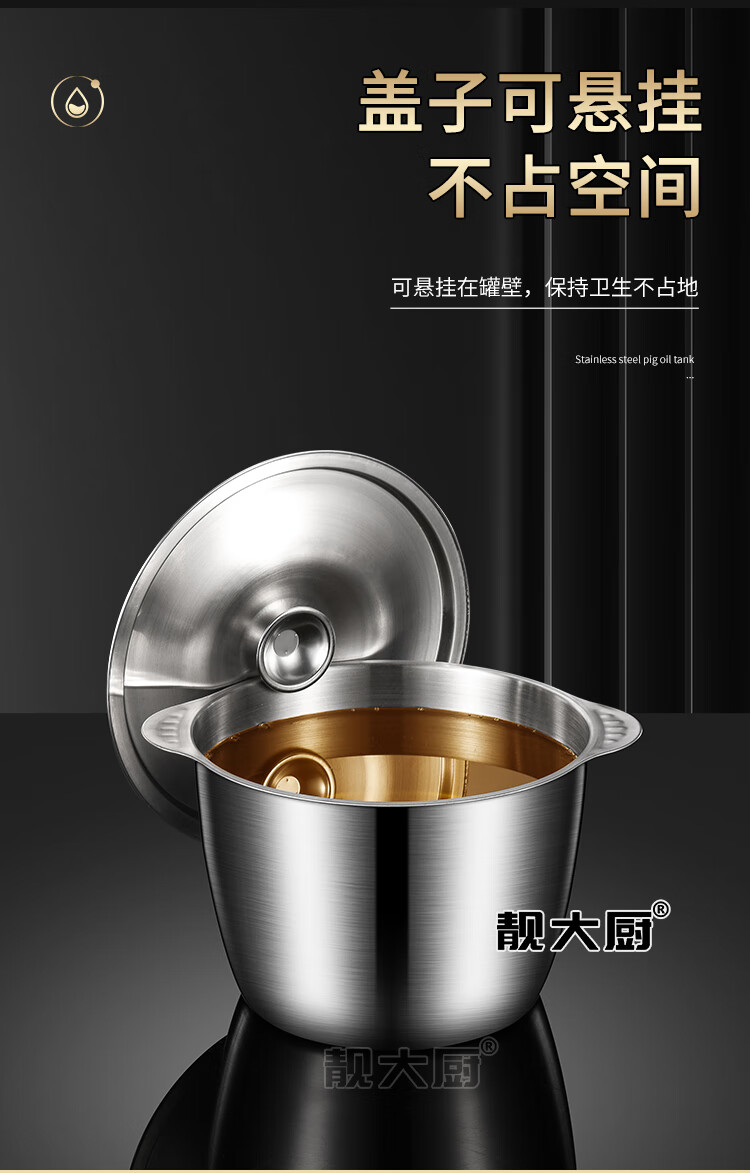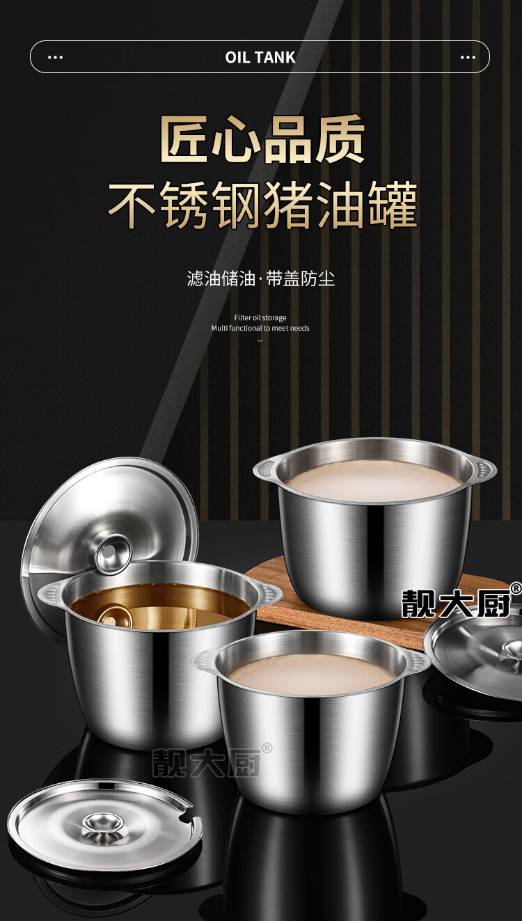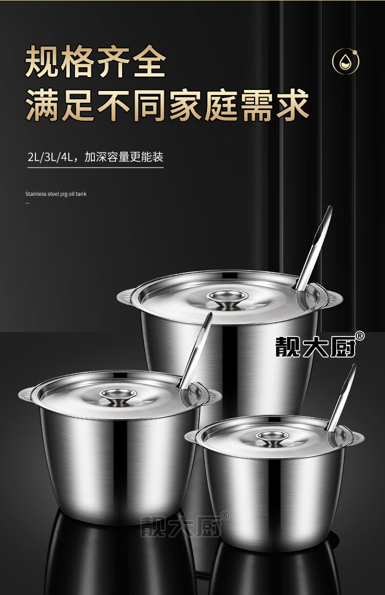Anti-scald double ears stainless steel lard can large capacity lard pot high temperature resistant household seasoning jar double ears with lid open lard can 3 liters + soup shell