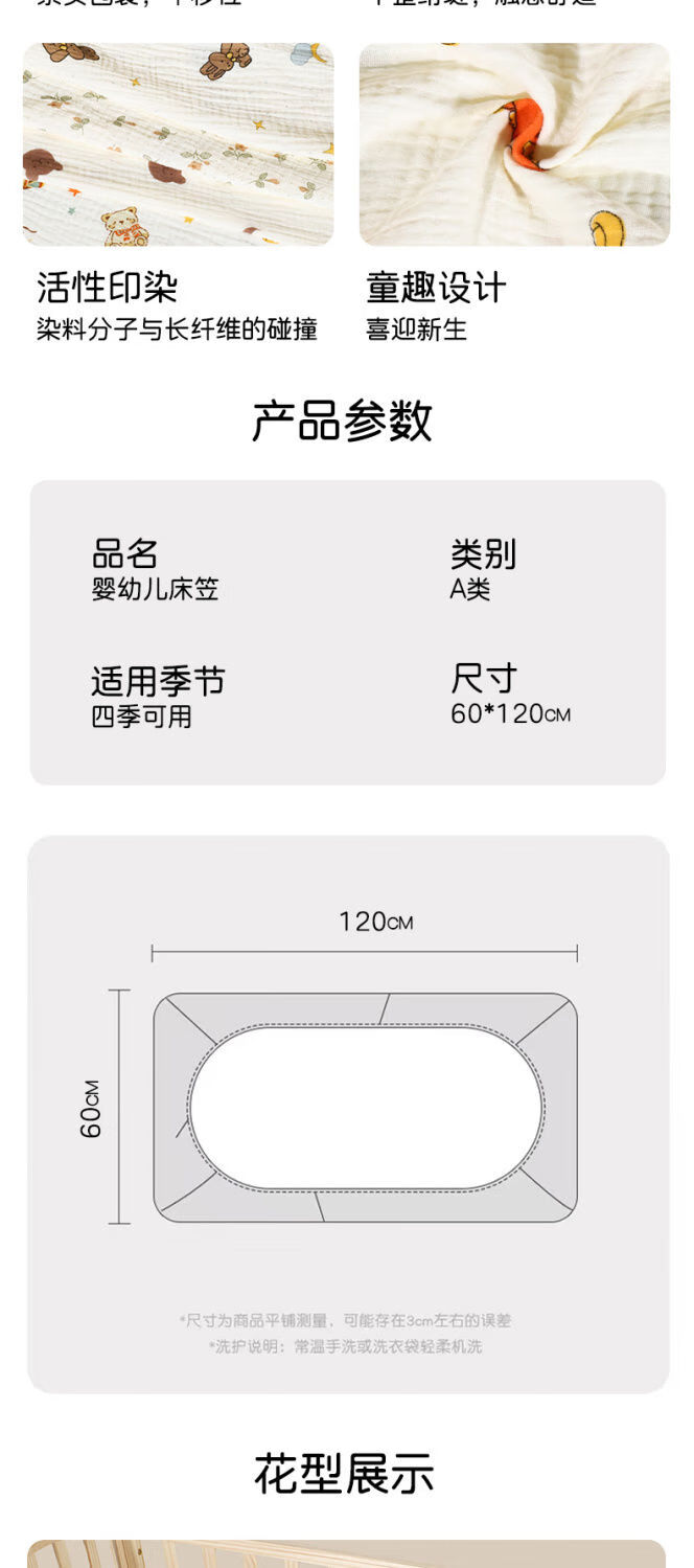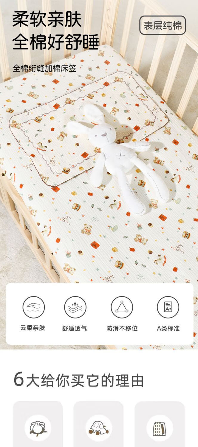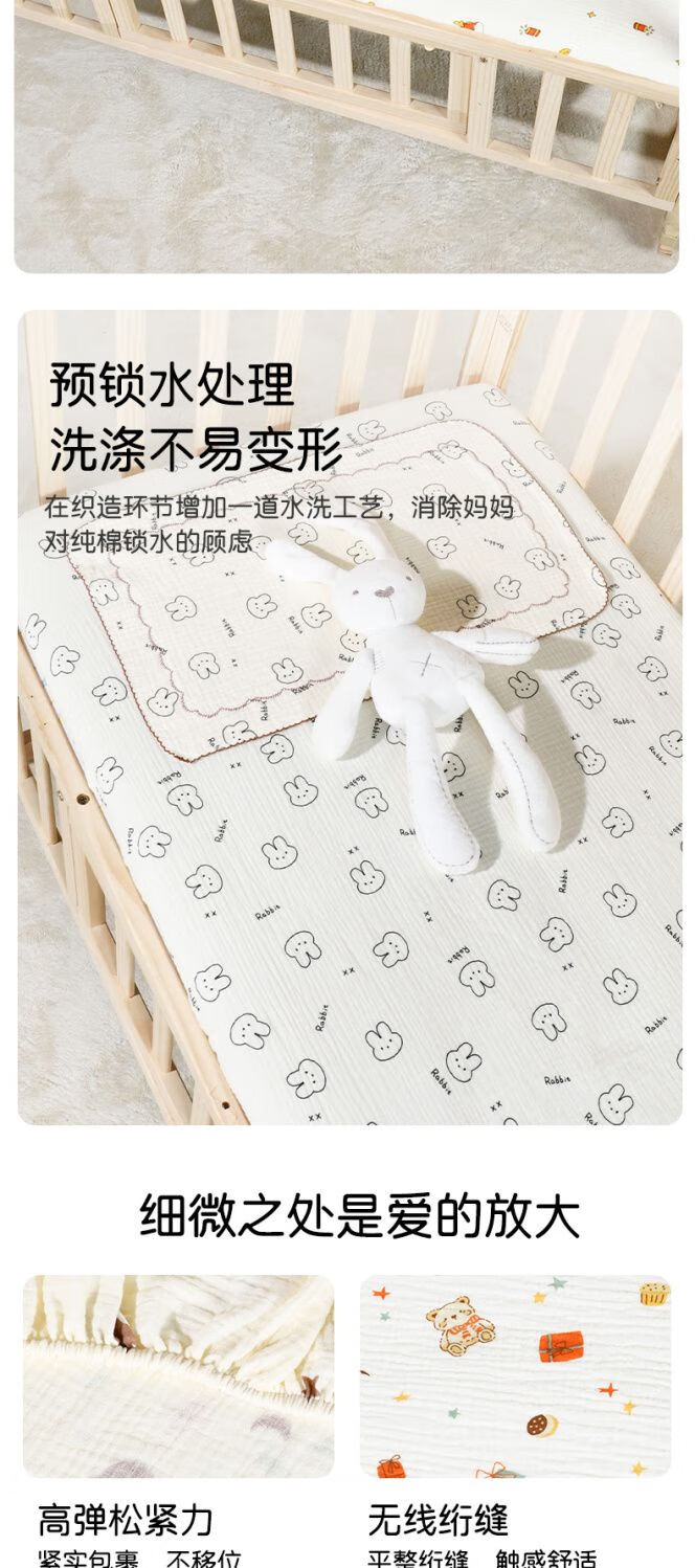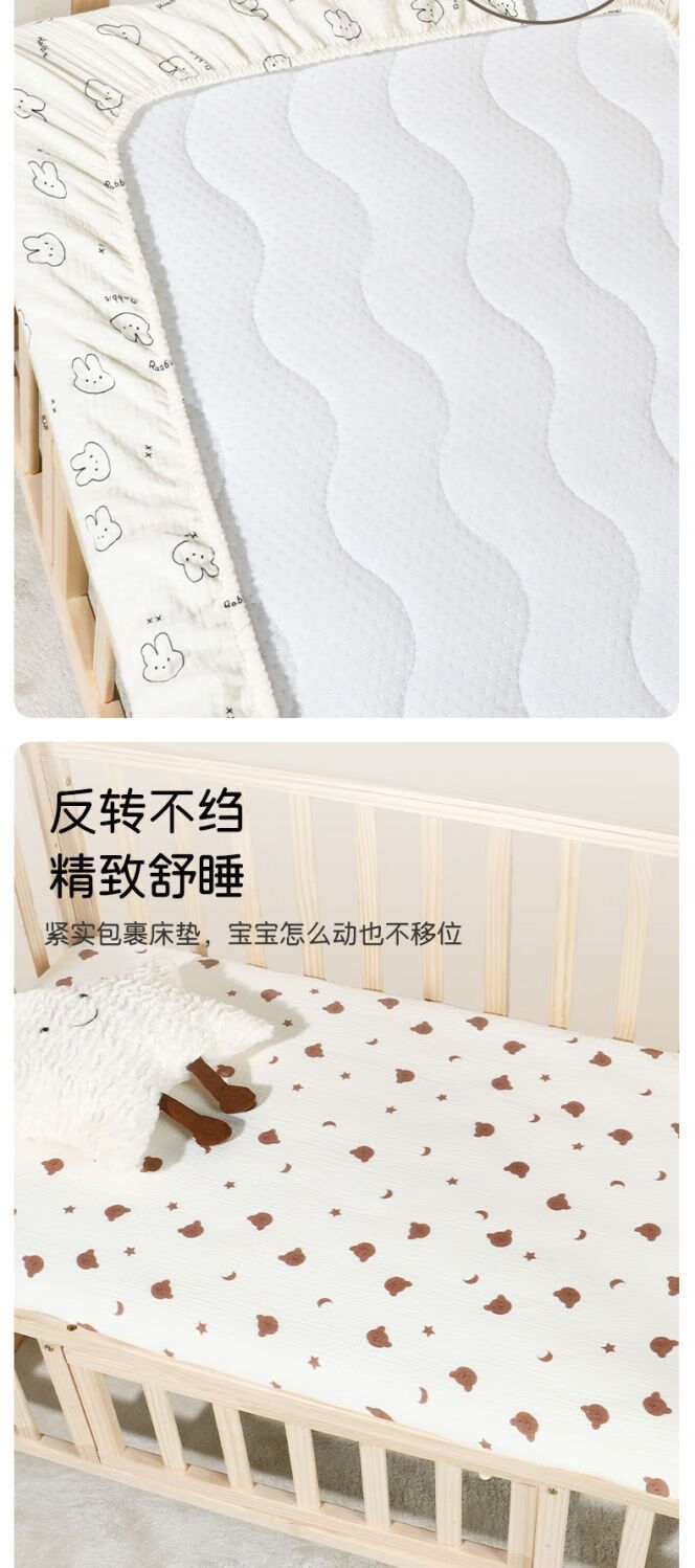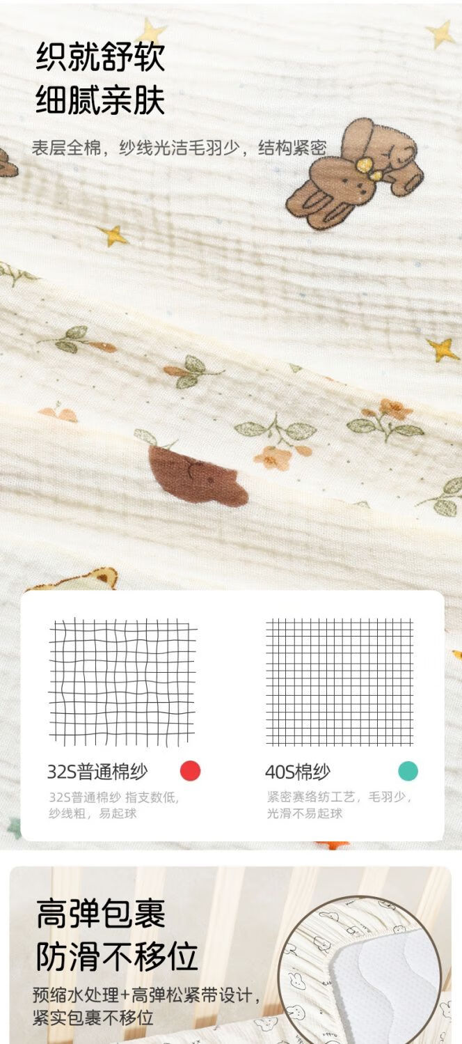 Crib fitted sheet pure cotton children's bed sheet mattress cover kindergarten baby bed cover waterproof splicing bed summer four seasons 10A level antibacterial sprout flower 60*120cm