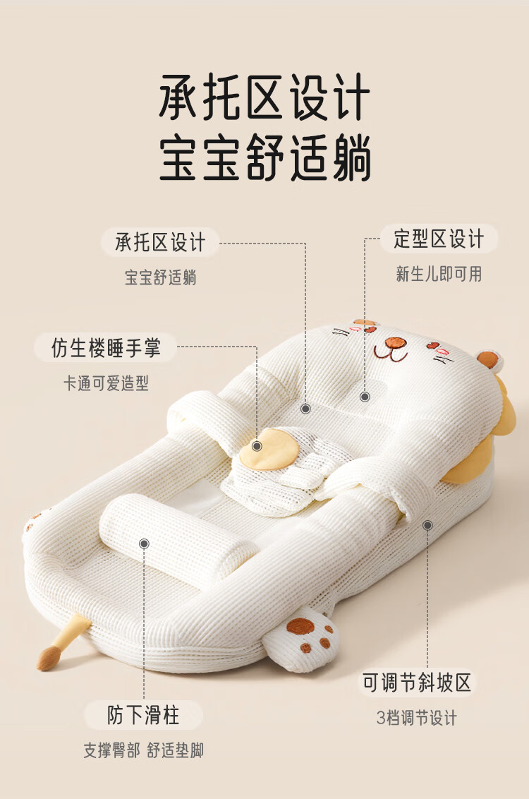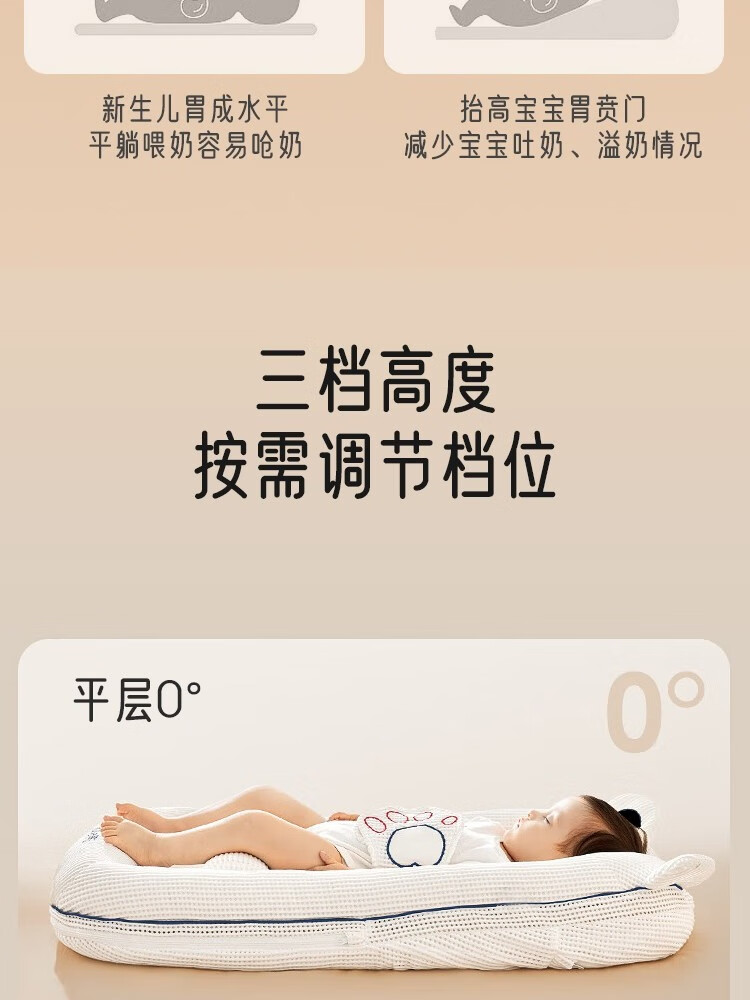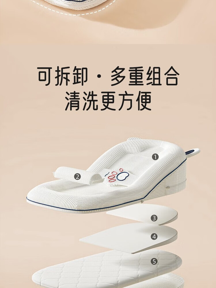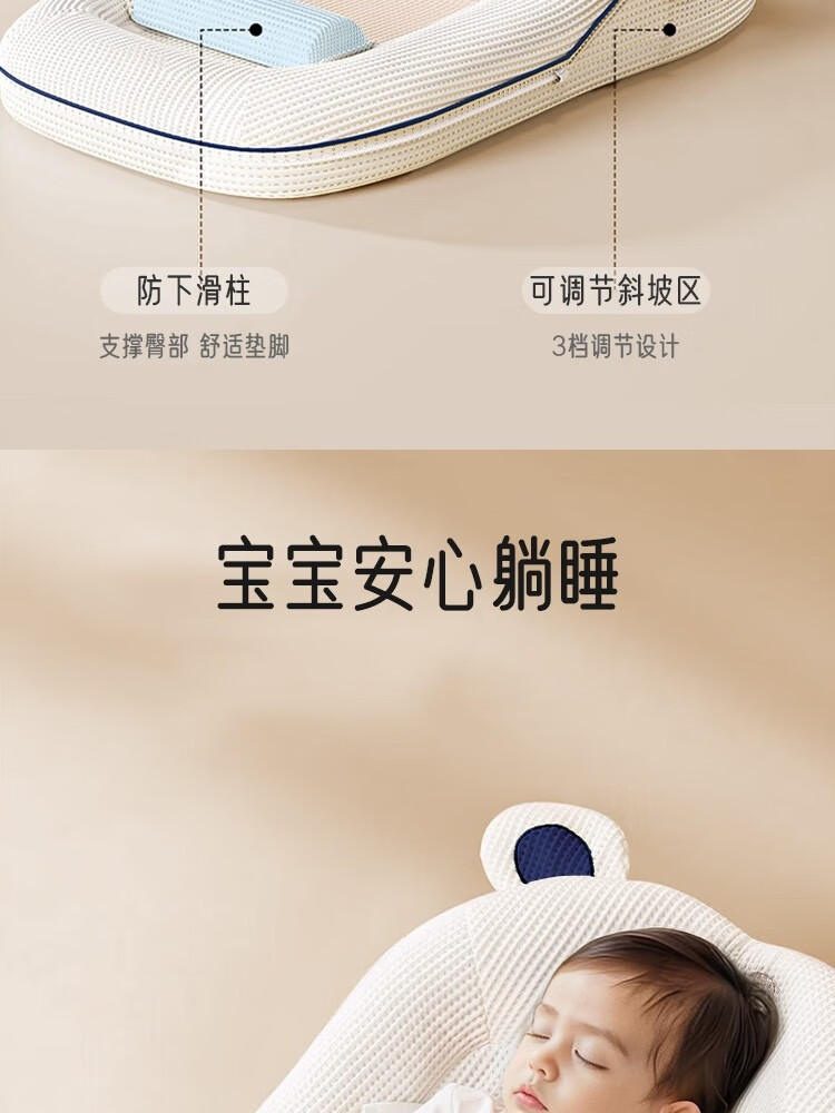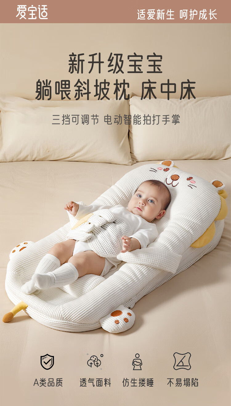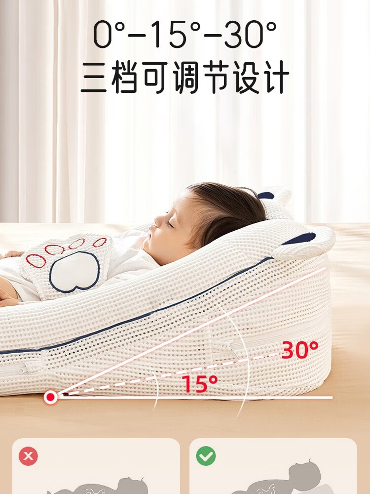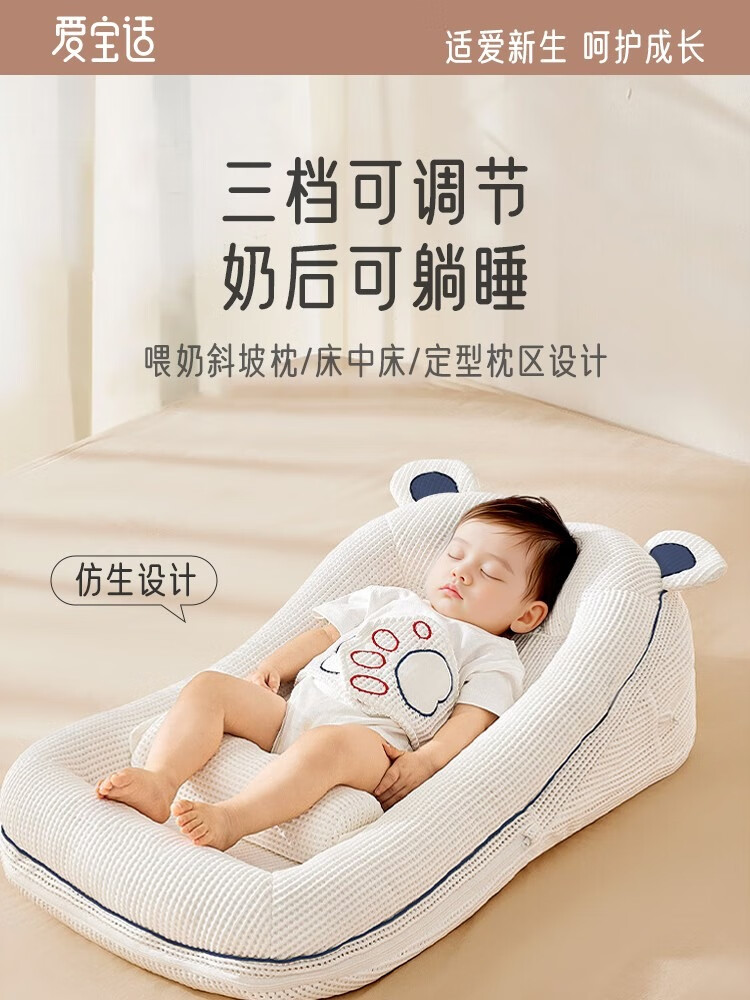 爱宝适婴儿斜坡枕床中床防宝宝吐新生儿喂奶0-3岁可调节哺乳趴睡宝宝枕 豪华版 斜坡枕+腿托
