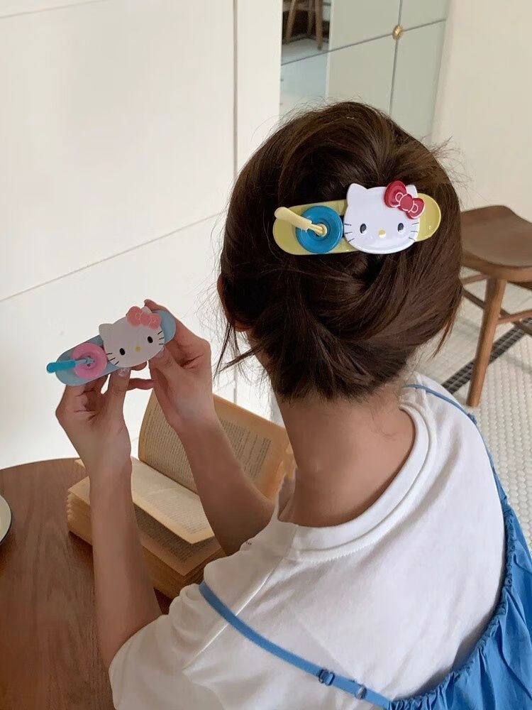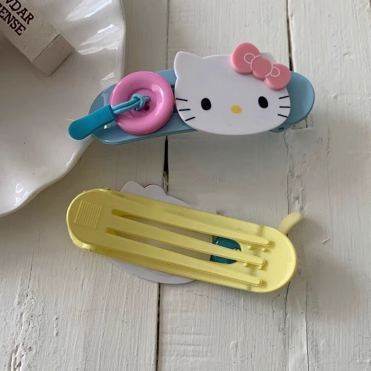 Girl Planet Contrast Color KT Cat Button Hair Clip Large Duckbill Clip Half-tie Hair Clip Hair Grabber Accessory Yellow kt