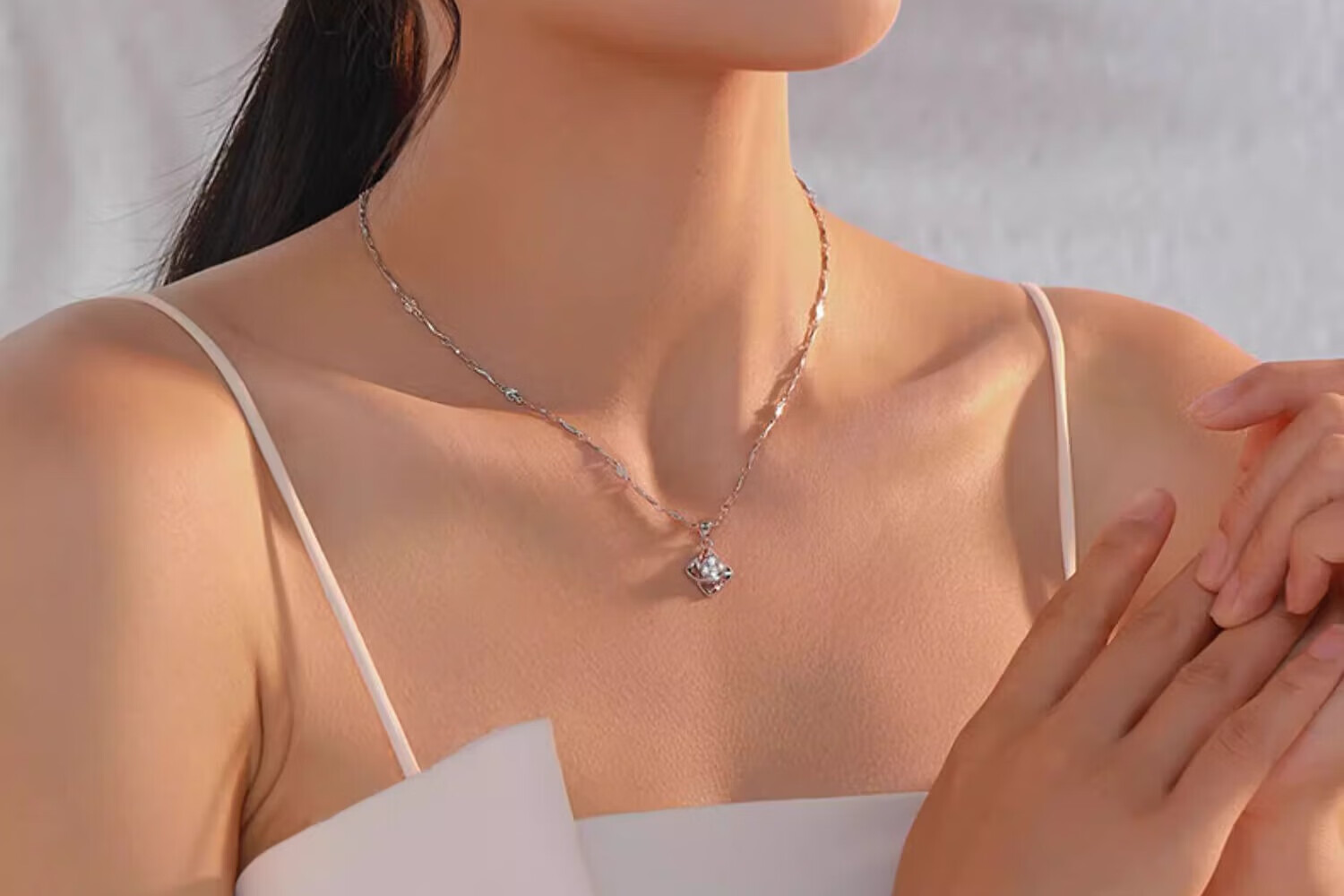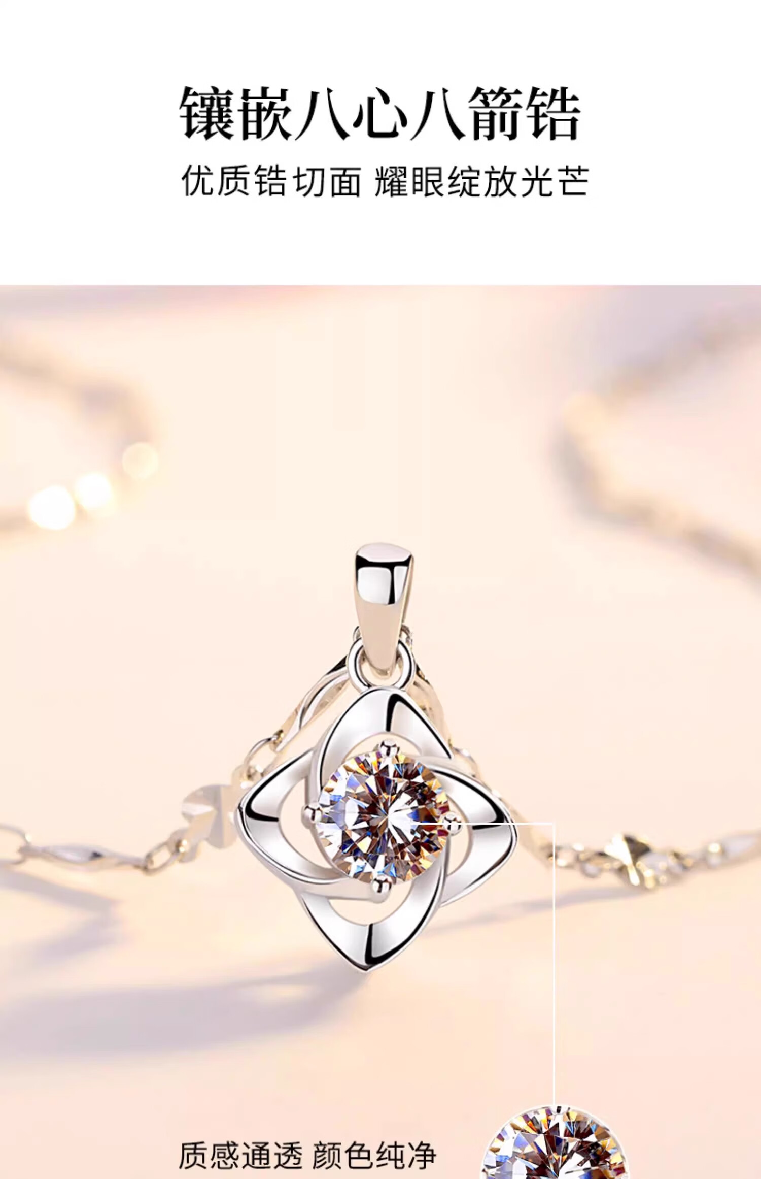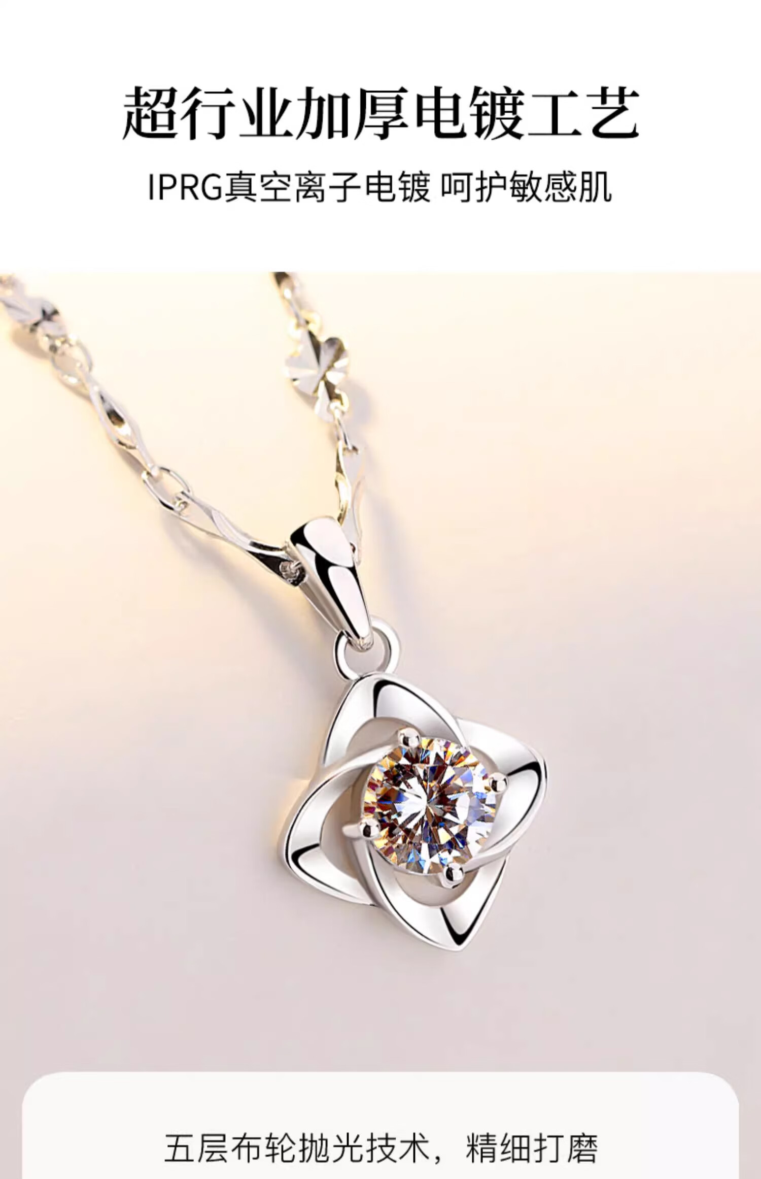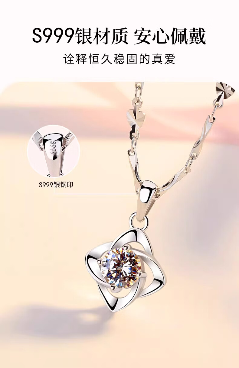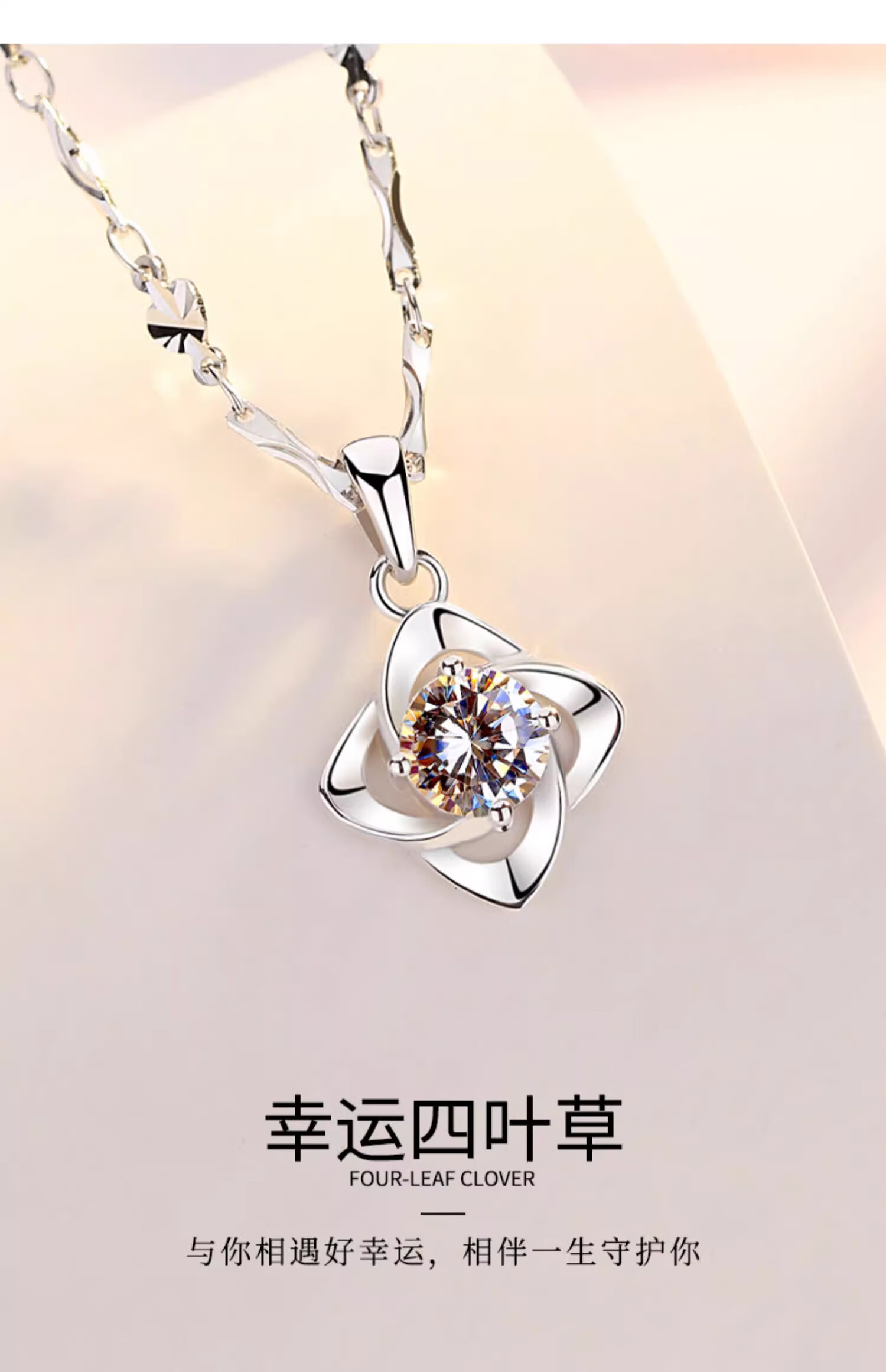 Daiyinfang sterling silver necklace women's 2025 high-end women's jewelry four-leaf clover silver pendant jewelry birthday gift for best friend four-leaf clover (yuanbao chain) + brand gift box