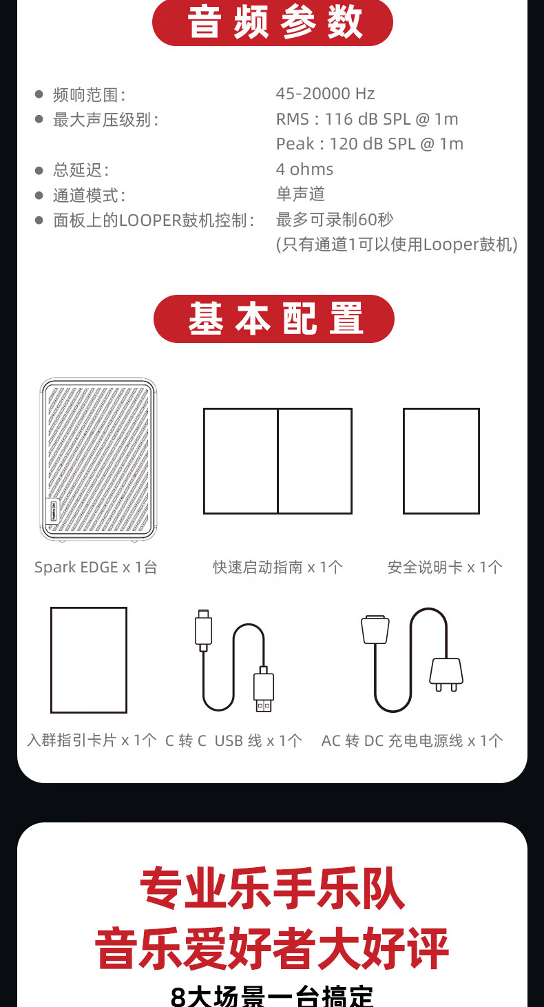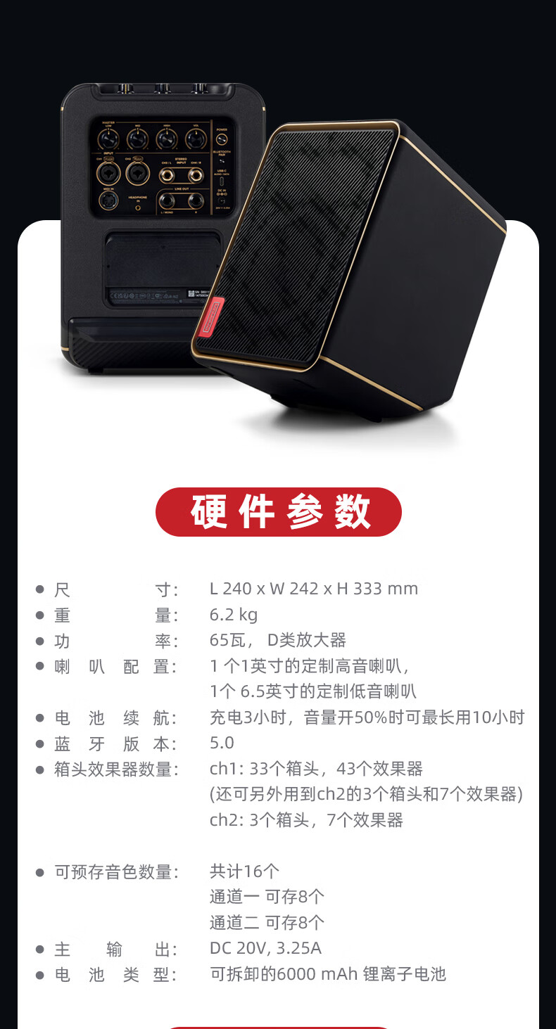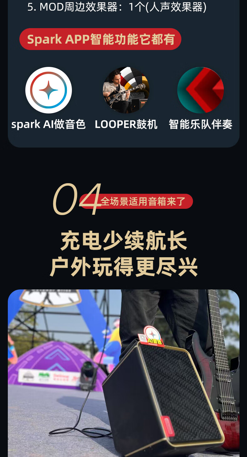 Positive Grid Spark Edge smart electric guitar speaker with effector outdoor rechargeable acoustic guitar playing and singing bass speaker Spark EDGE black 65 watt + rechargeable battery