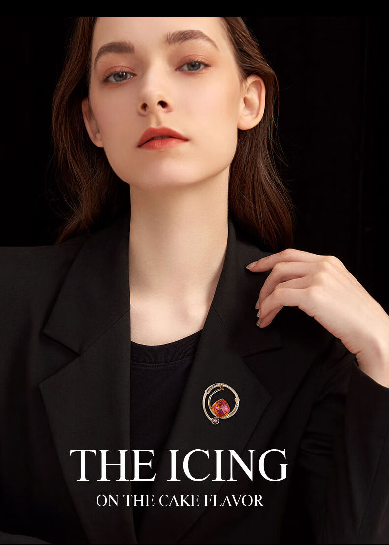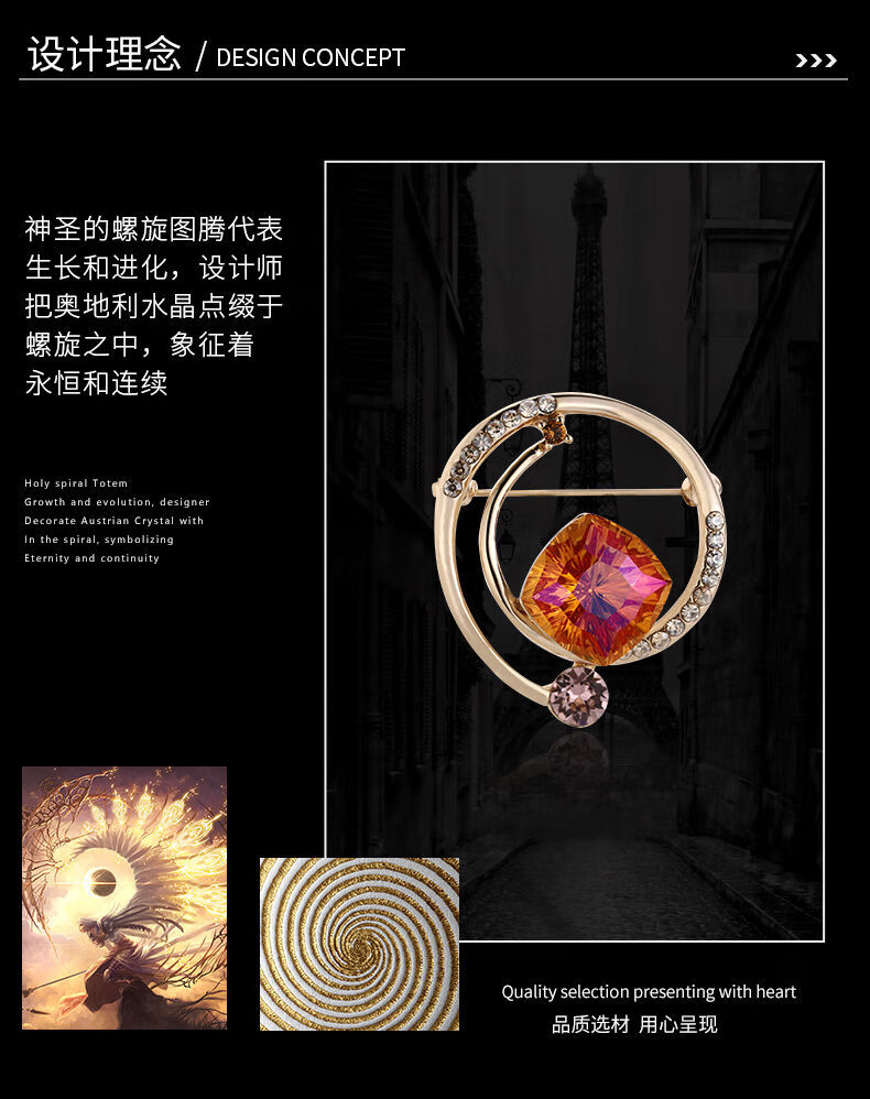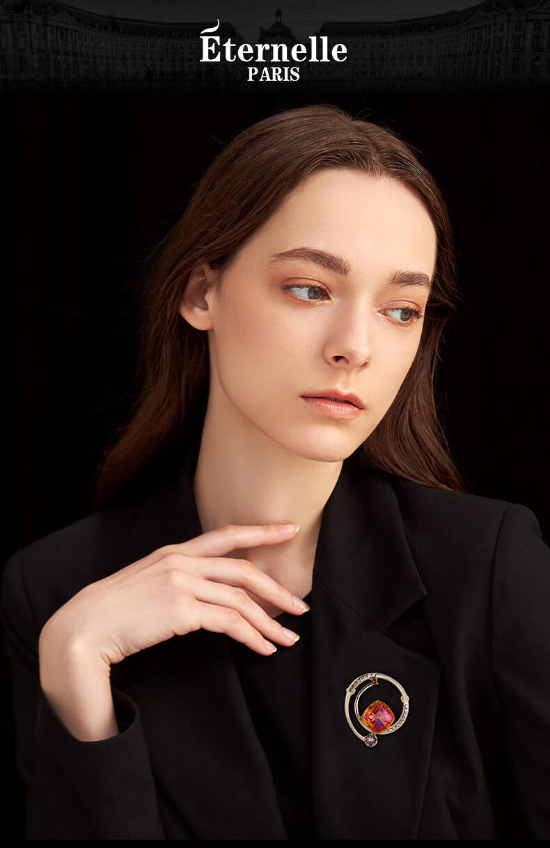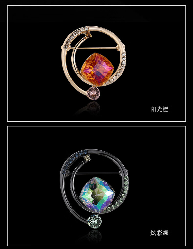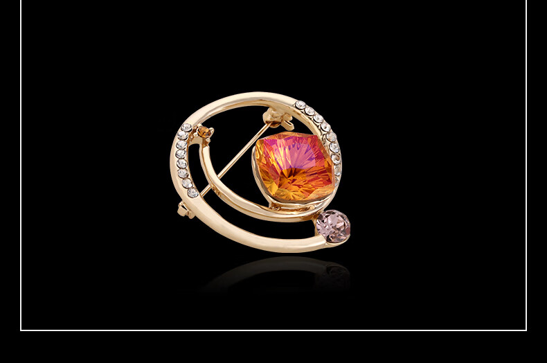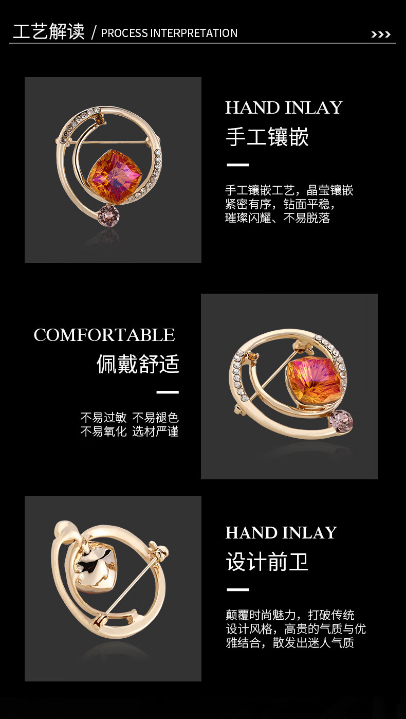 QIWN French original Austrian crystal brooch for women, high-end European style retro corsage brooch, anti-exposure, sunshine orange