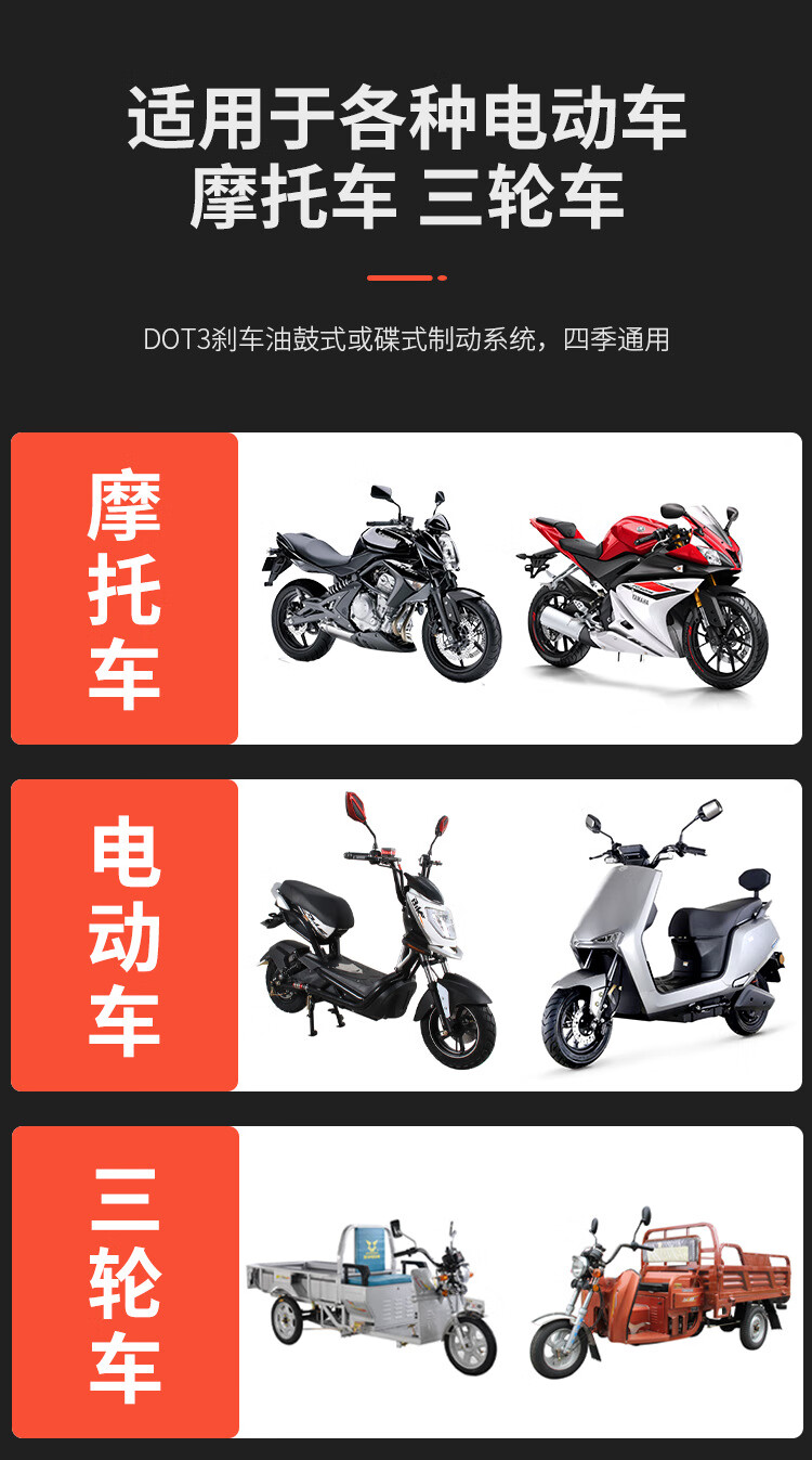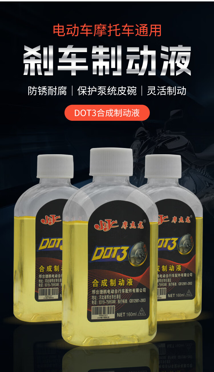 Electric battery car brake oil upper pump brake fluid motorcycle tricycle DOT3 disc brake lower pump universal accessories 160ML brake oil/2 bottles