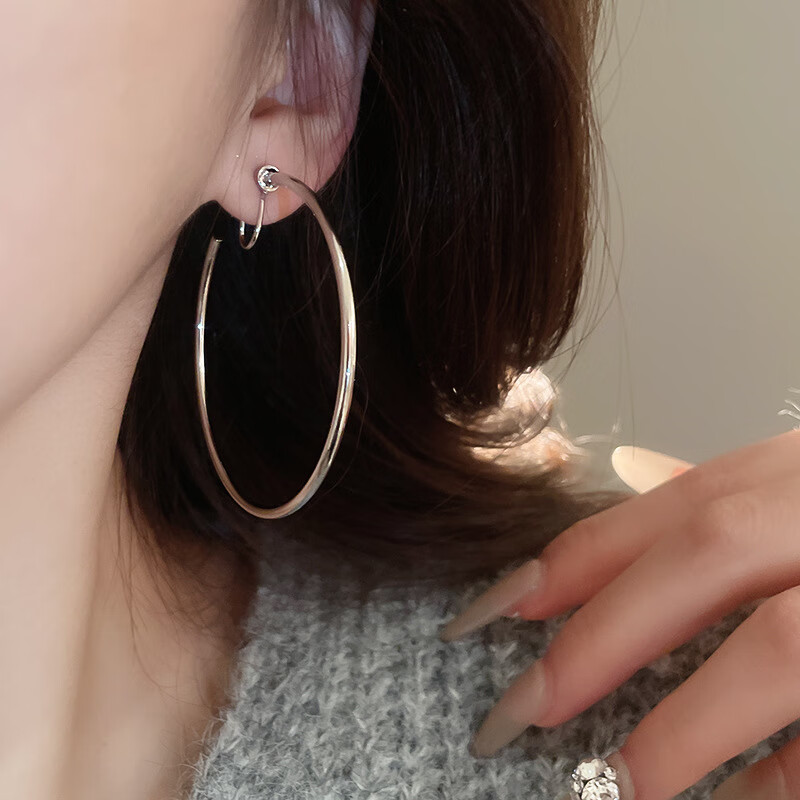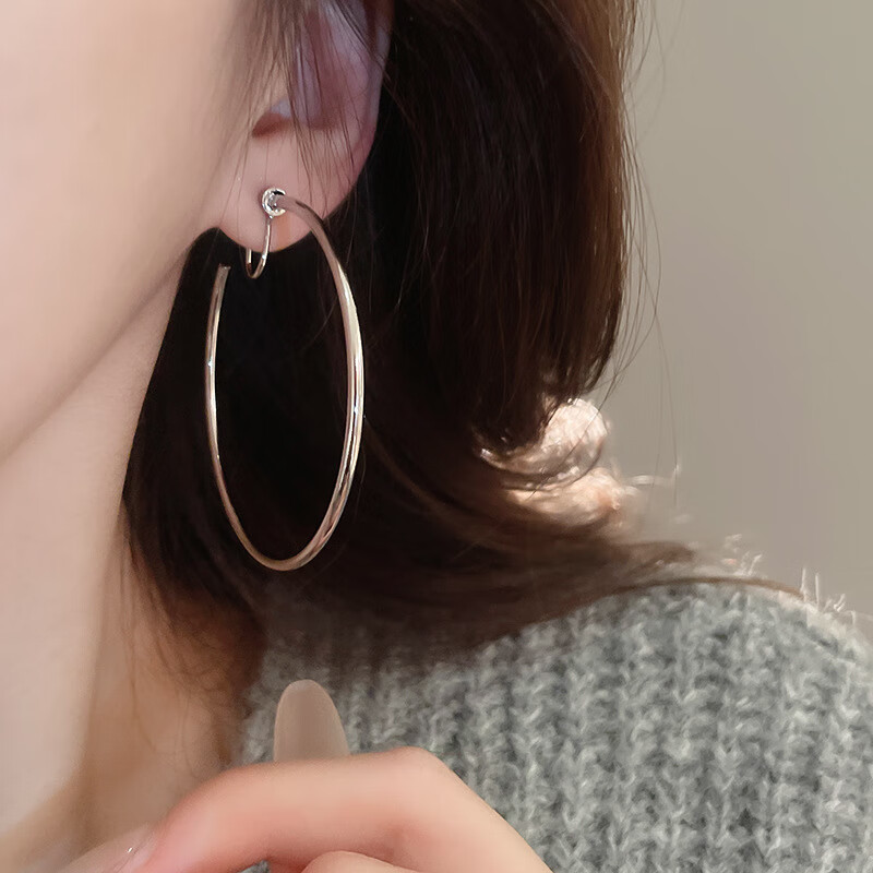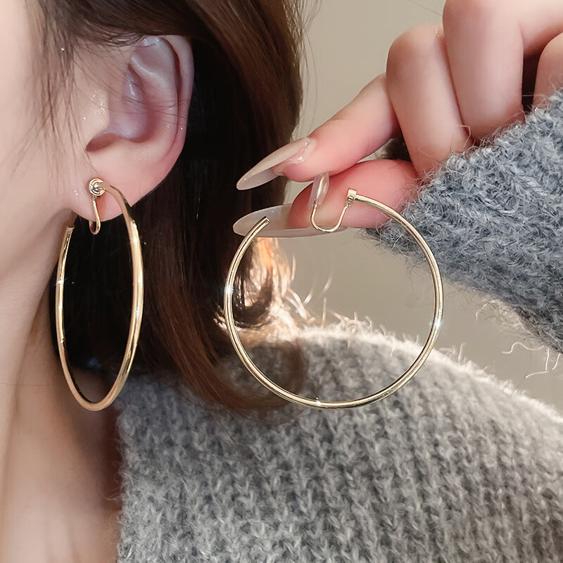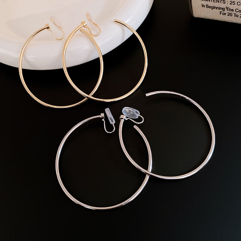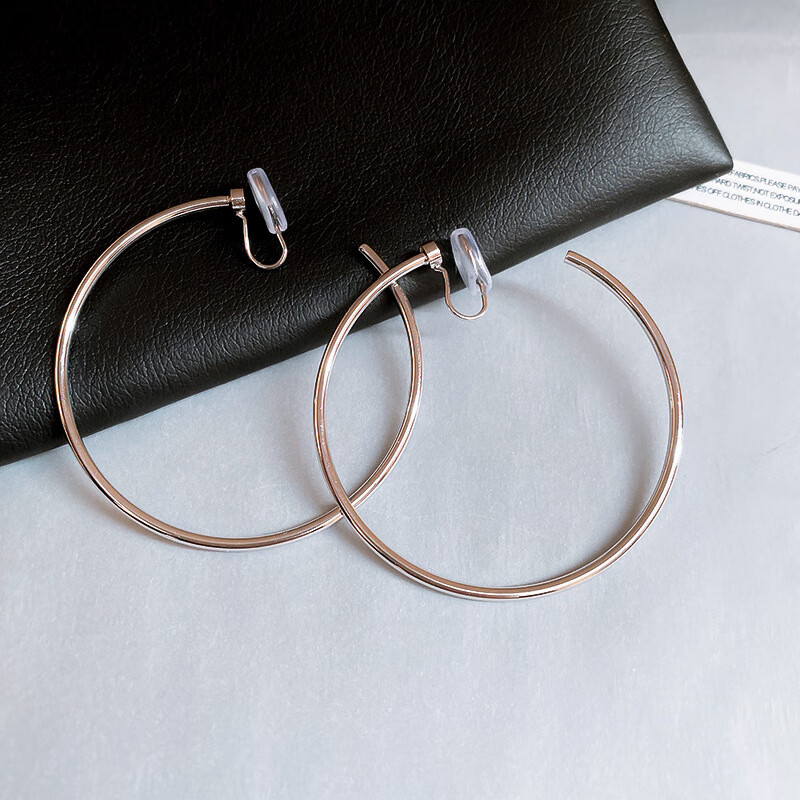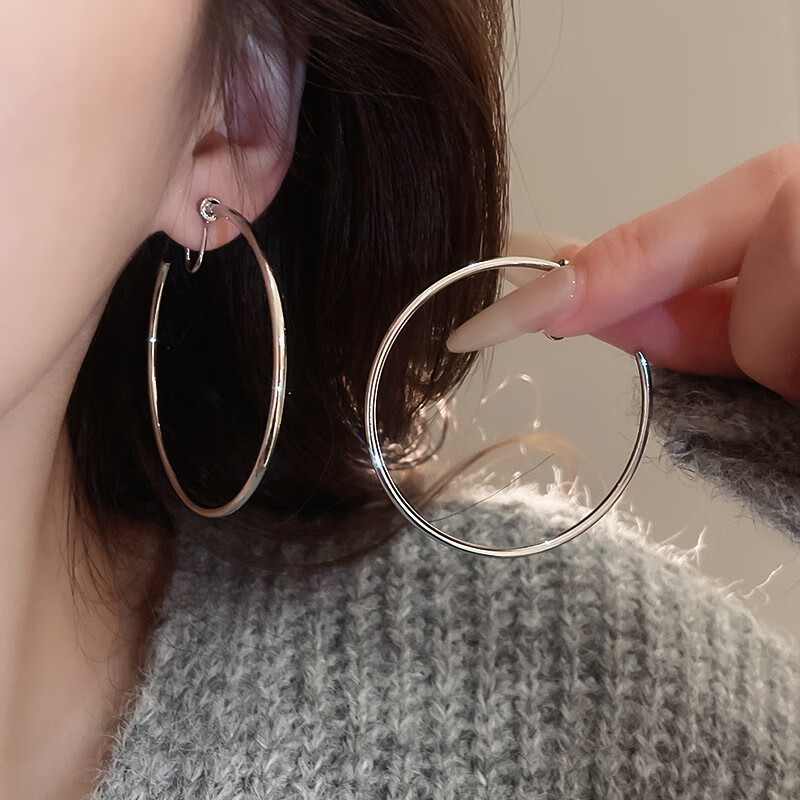 Non-pierced earrings round plain hoop earrings niche cold style earrings fashionable temperament earrings light luxury high-end female earrings - silver - diameter 55mm