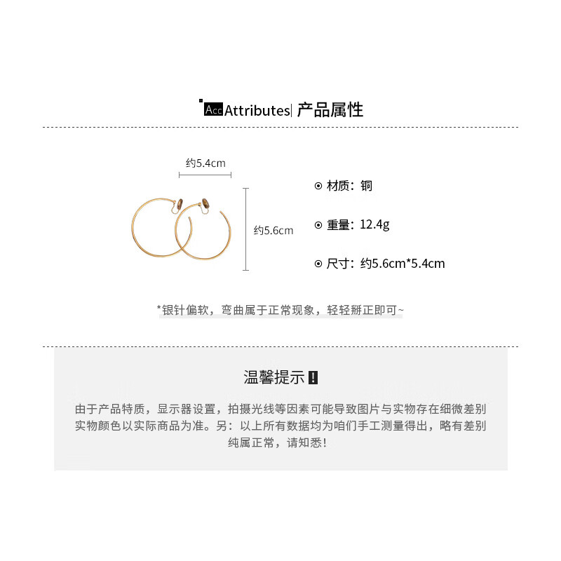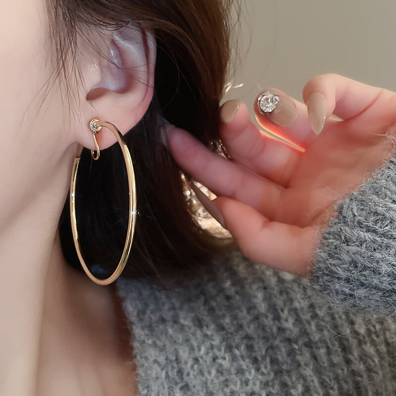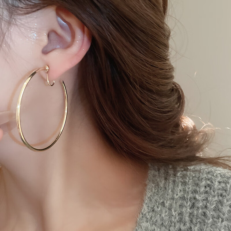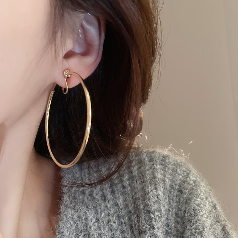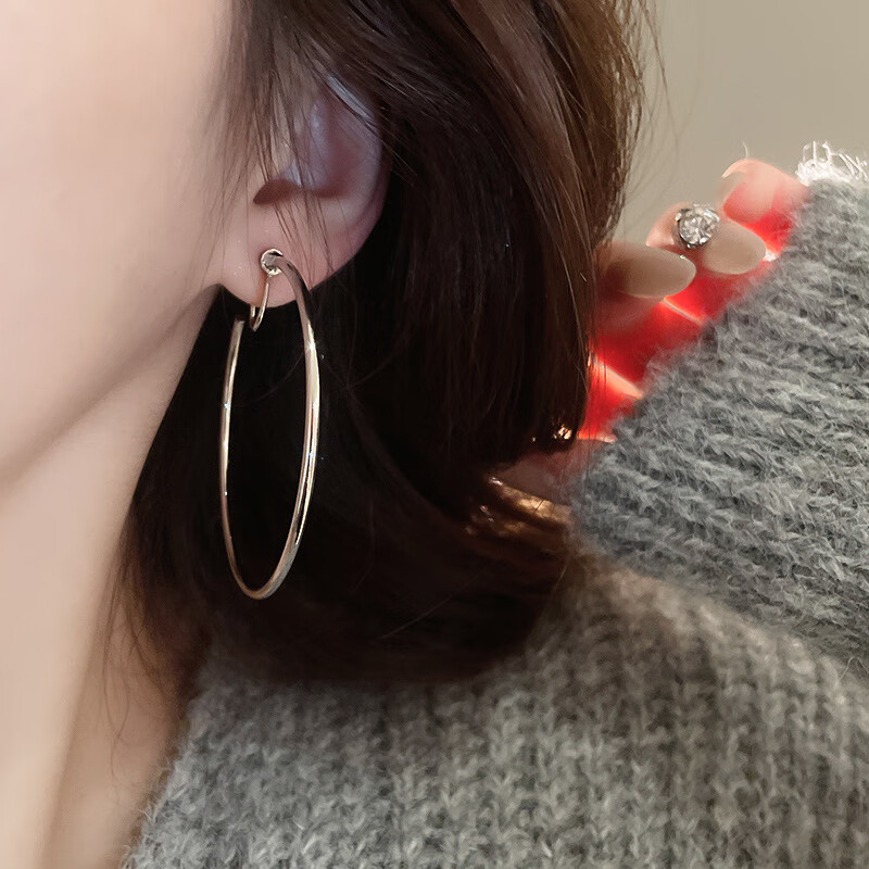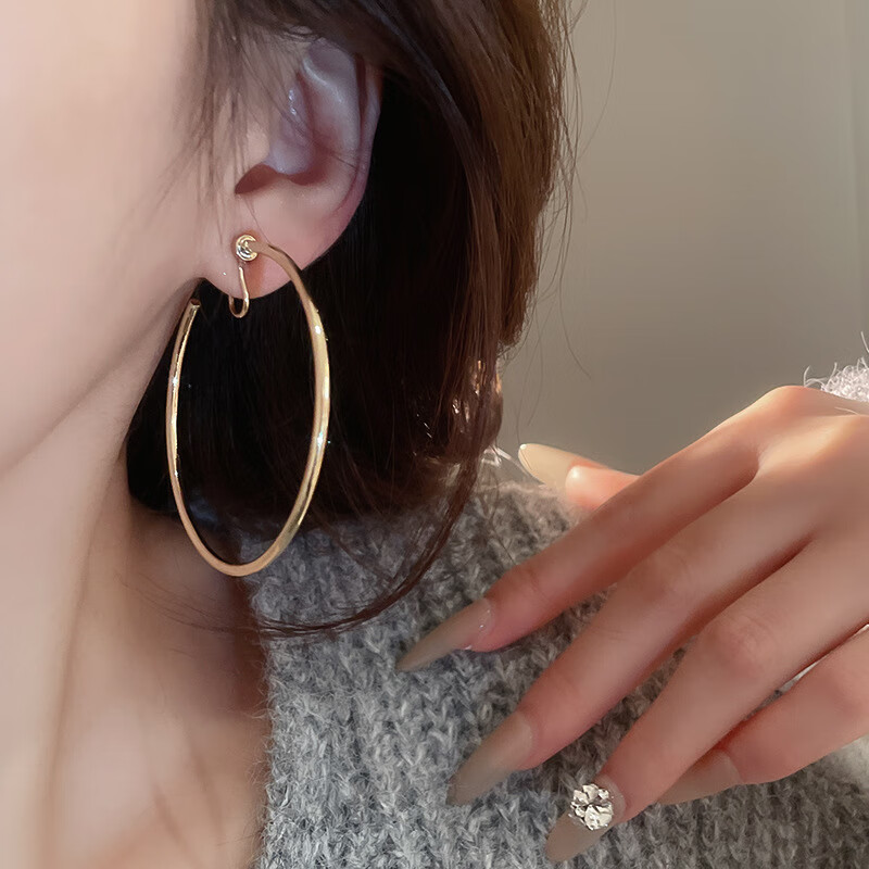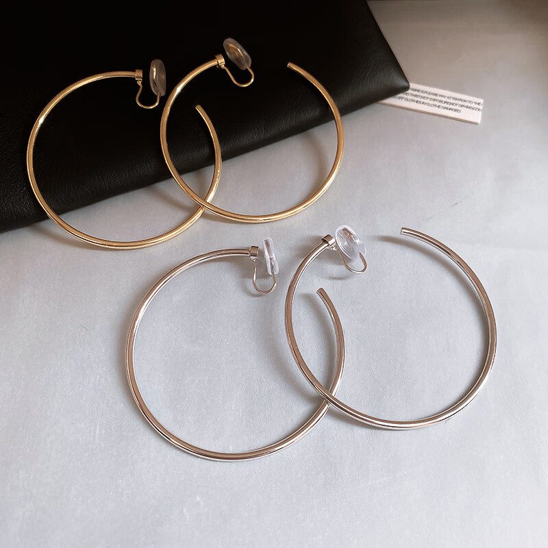 Non-pierced earrings round plain hoop earrings niche cold style earrings fashionable temperament earrings light luxury high-end female earrings - silver - diameter 55mm