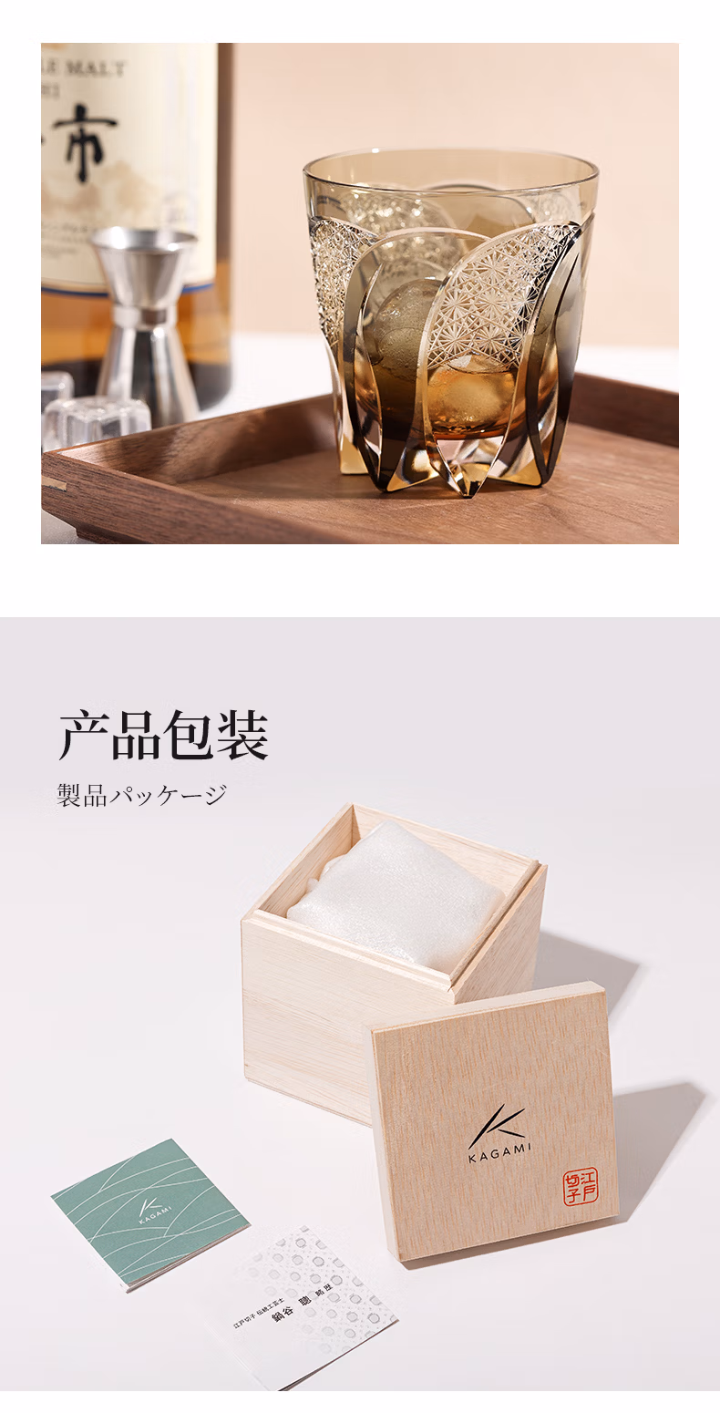 KAGAMI Limited Edition Edo Kiriko Nabeya Satoshihiji Colored Crystal Glass Rock Cup Whiskey Cup Birthday Single Cup