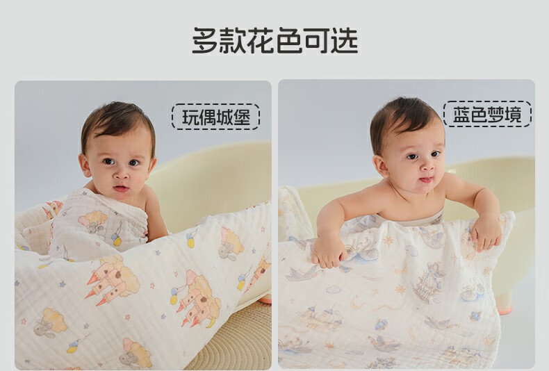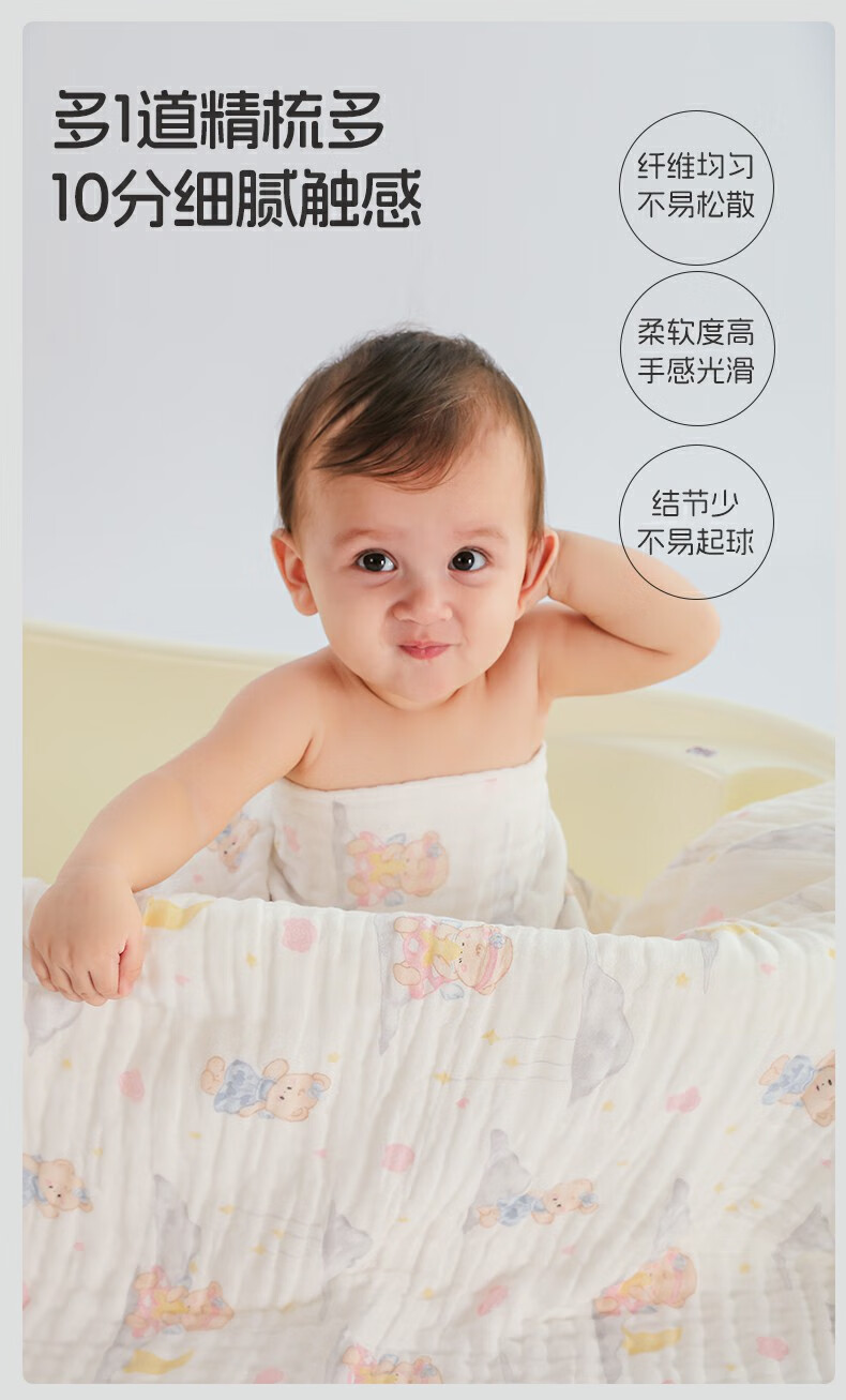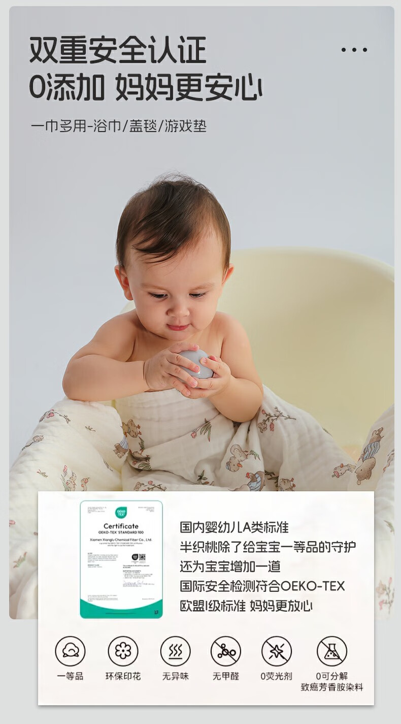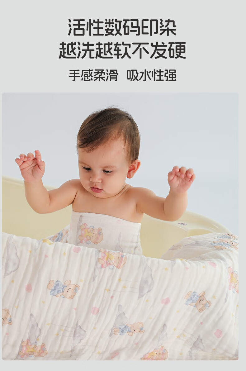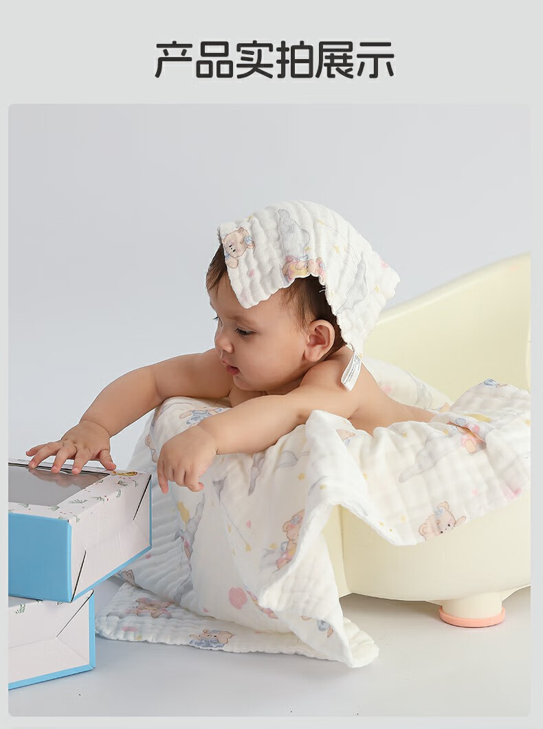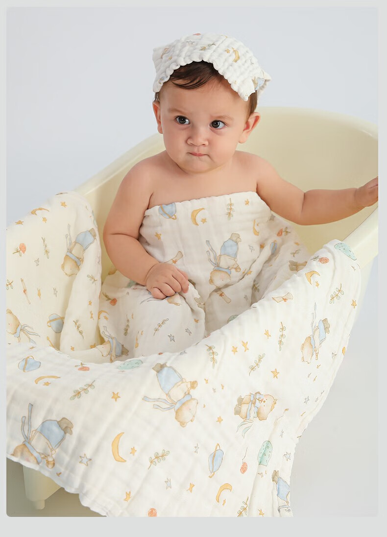 Half-woven peach baby bath towel, Class A pure cotton gauze bath towel, soft absorbent newborn blanket, newborn baby bath blanket, Underwater World, 6 layers of gauze 110*110cm, Xinjiang combed cotton