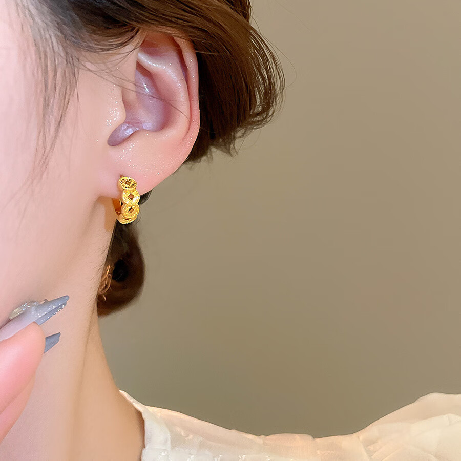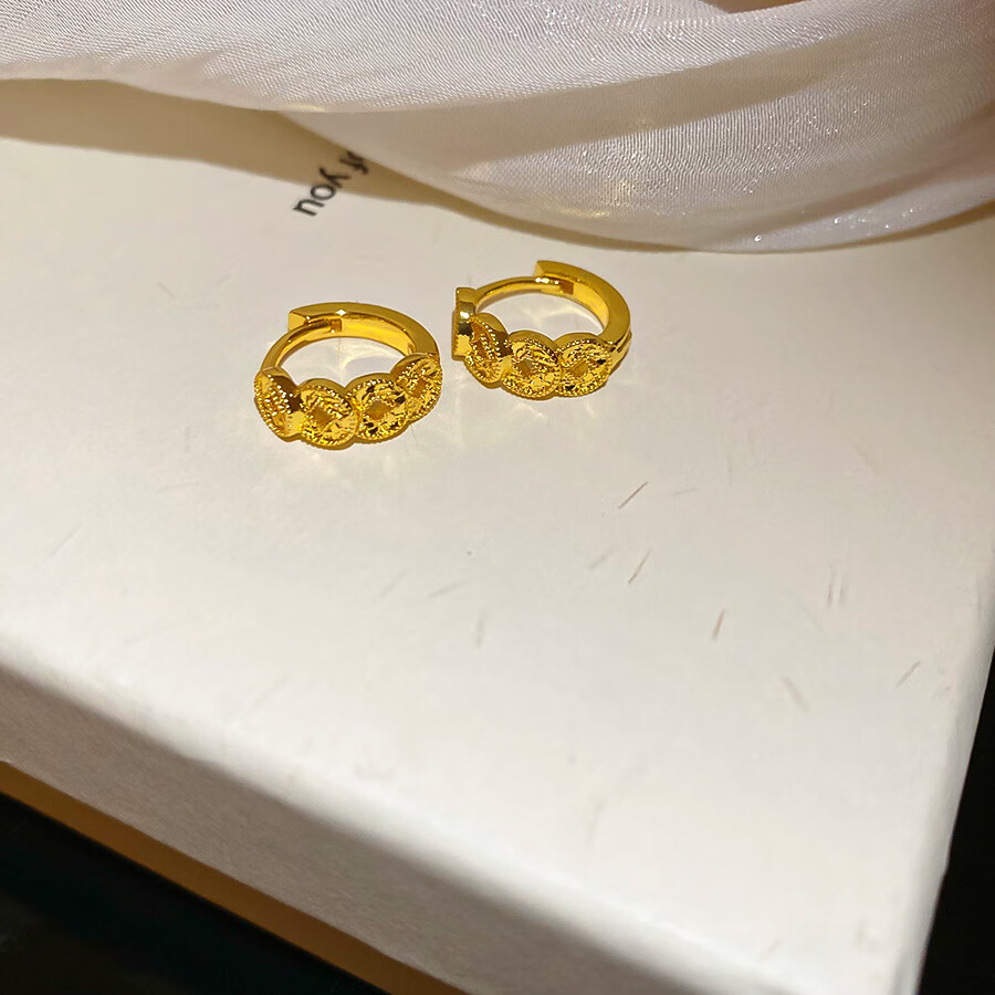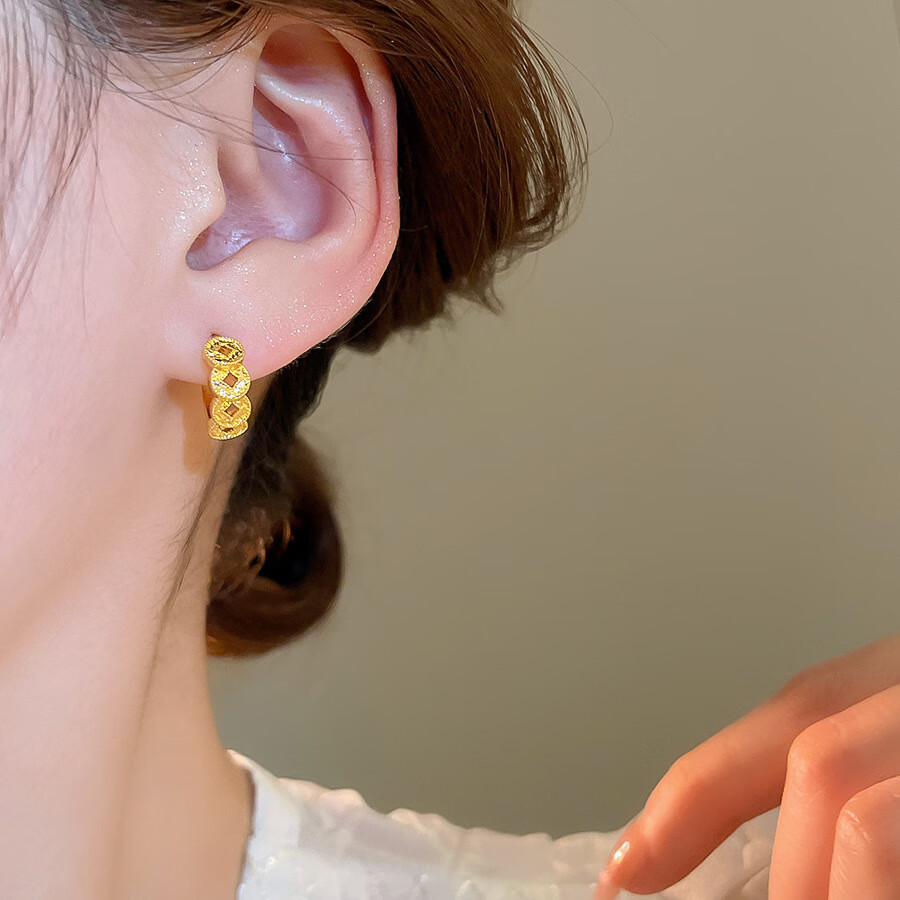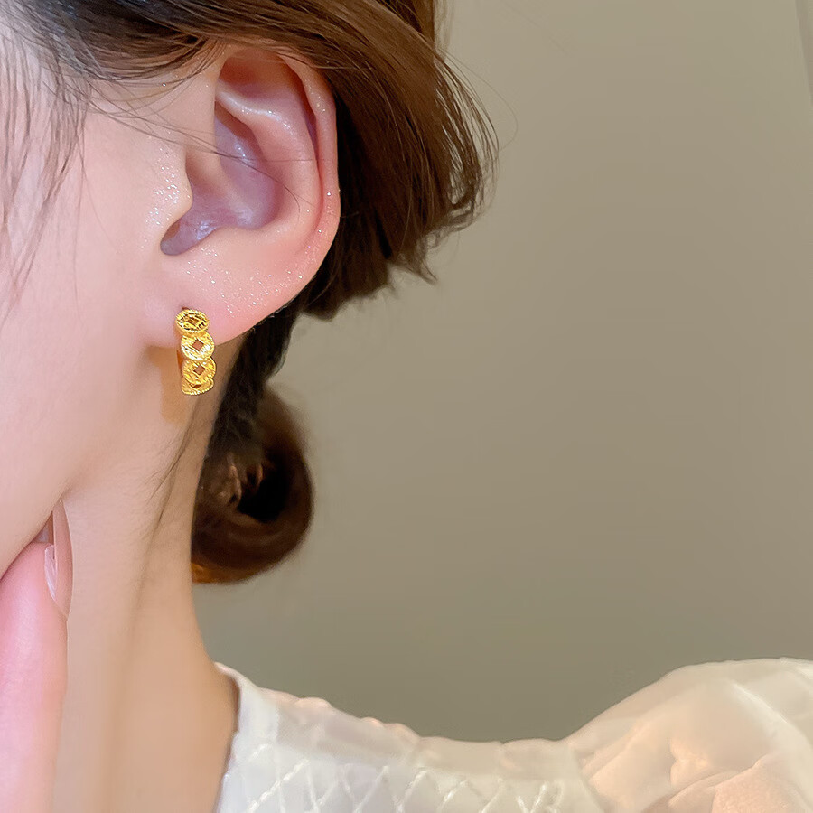 18k real gold electroplated copper coin round earrings, retro exquisite earrings, feminine and versatile earrings, light luxury and high-end sense. Earrings - gold (18k real gold electroplating)