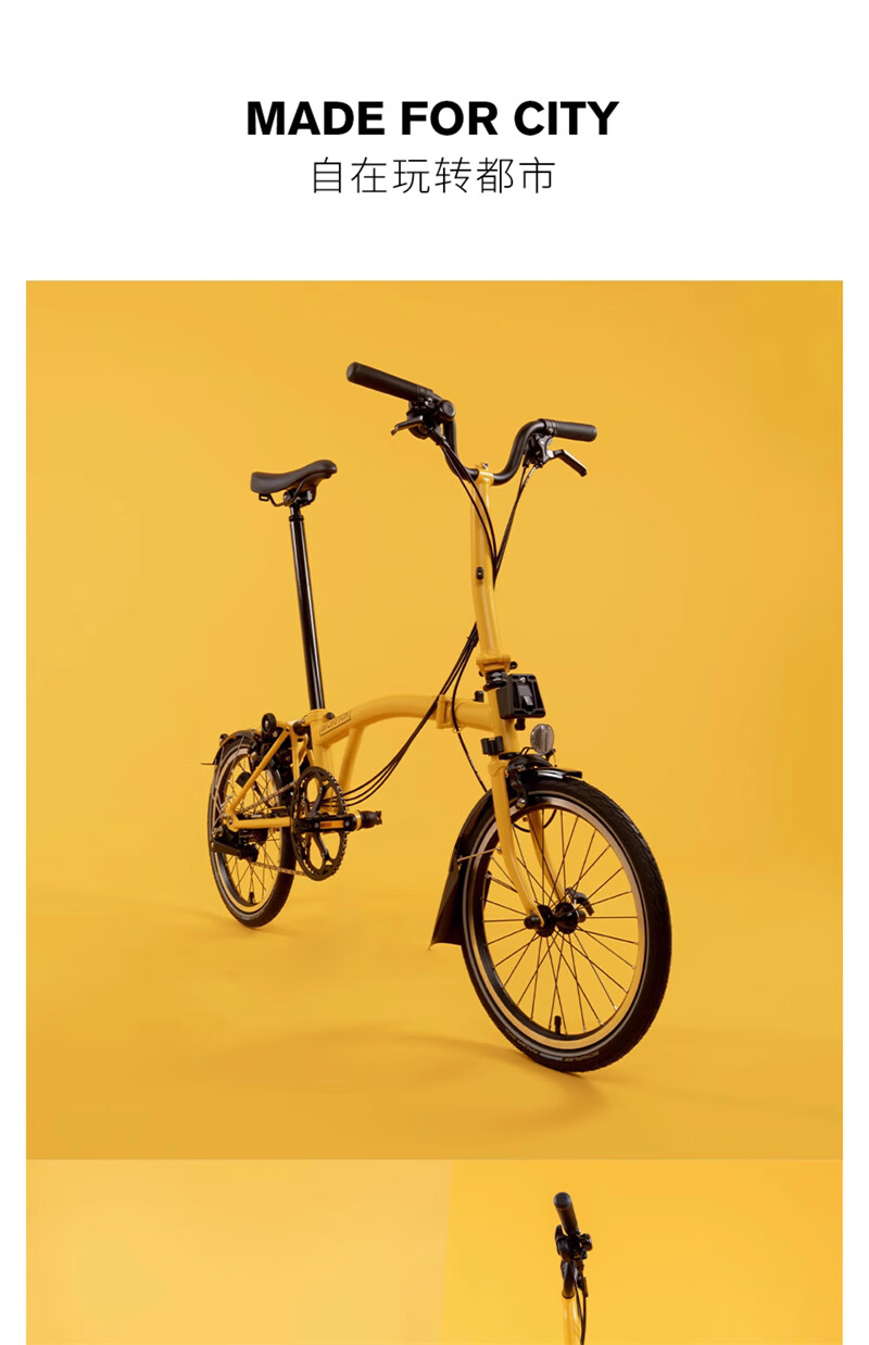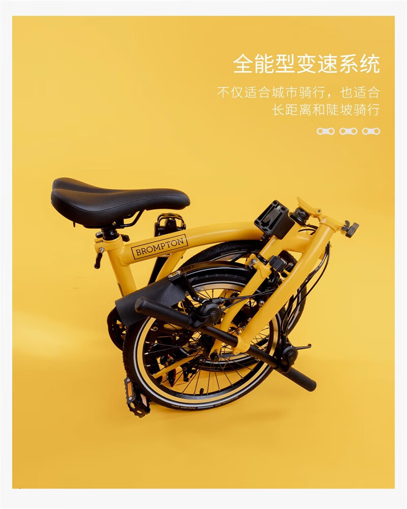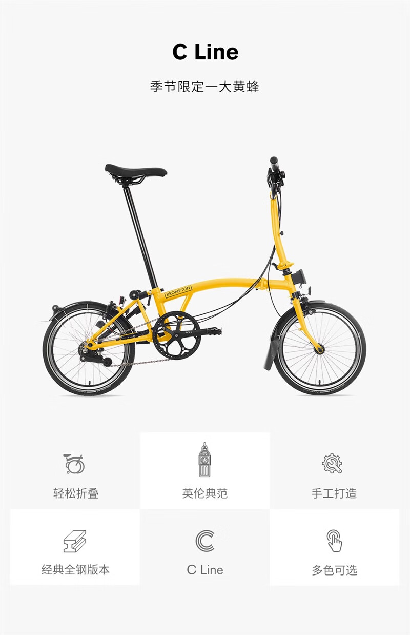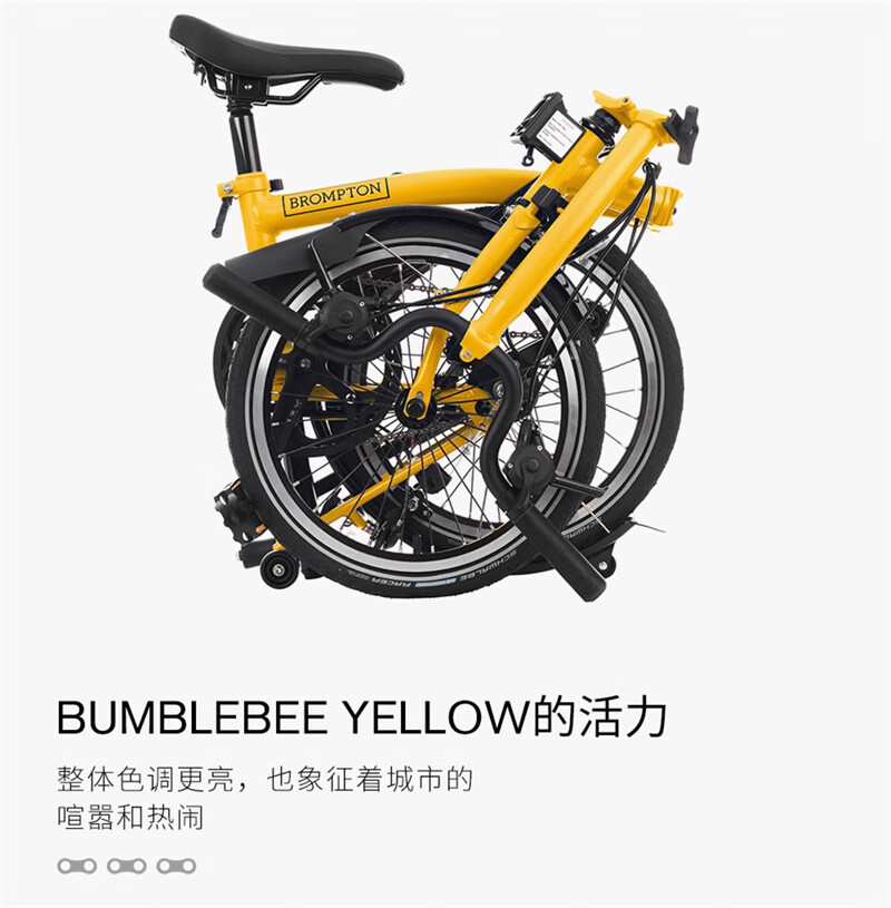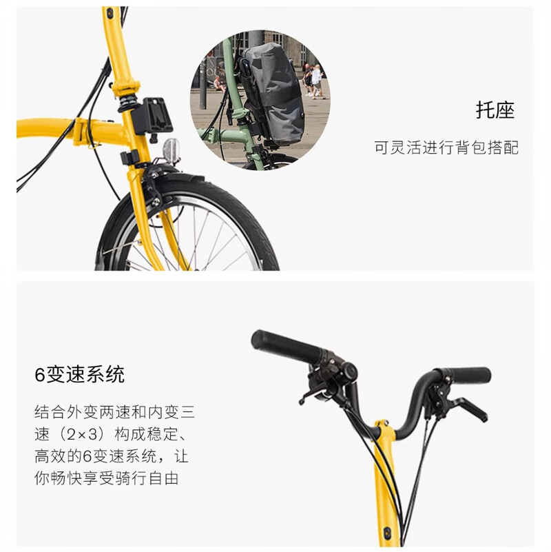 BROMPTON Xiaobu Bicycle C Line 25 new ultra-light and portable 6-speed commuting leisure variable speed folding bicycle men's and women's bicycle Bumblebee Yellow 16 inches low handlebar