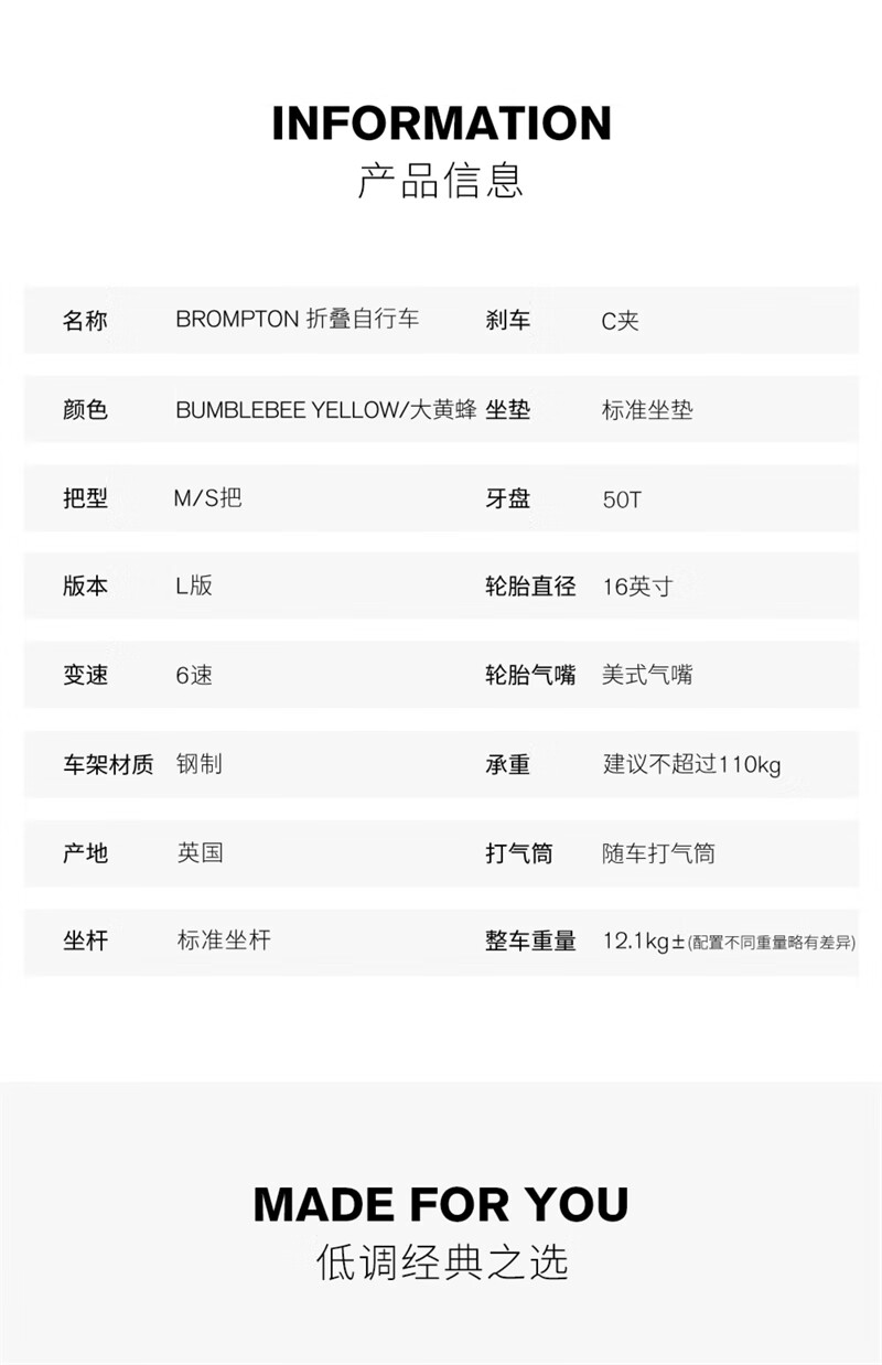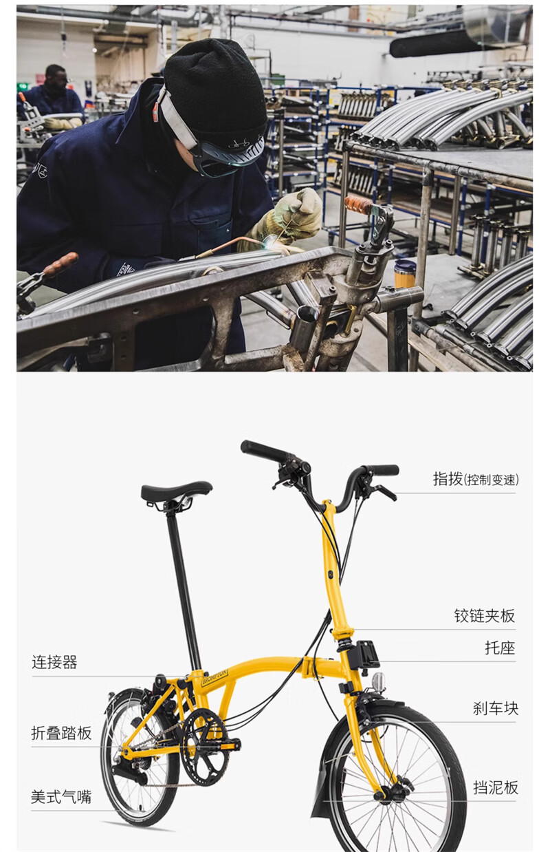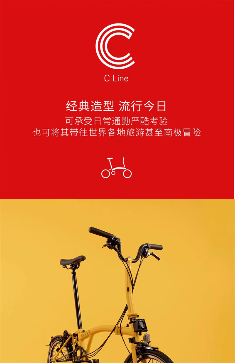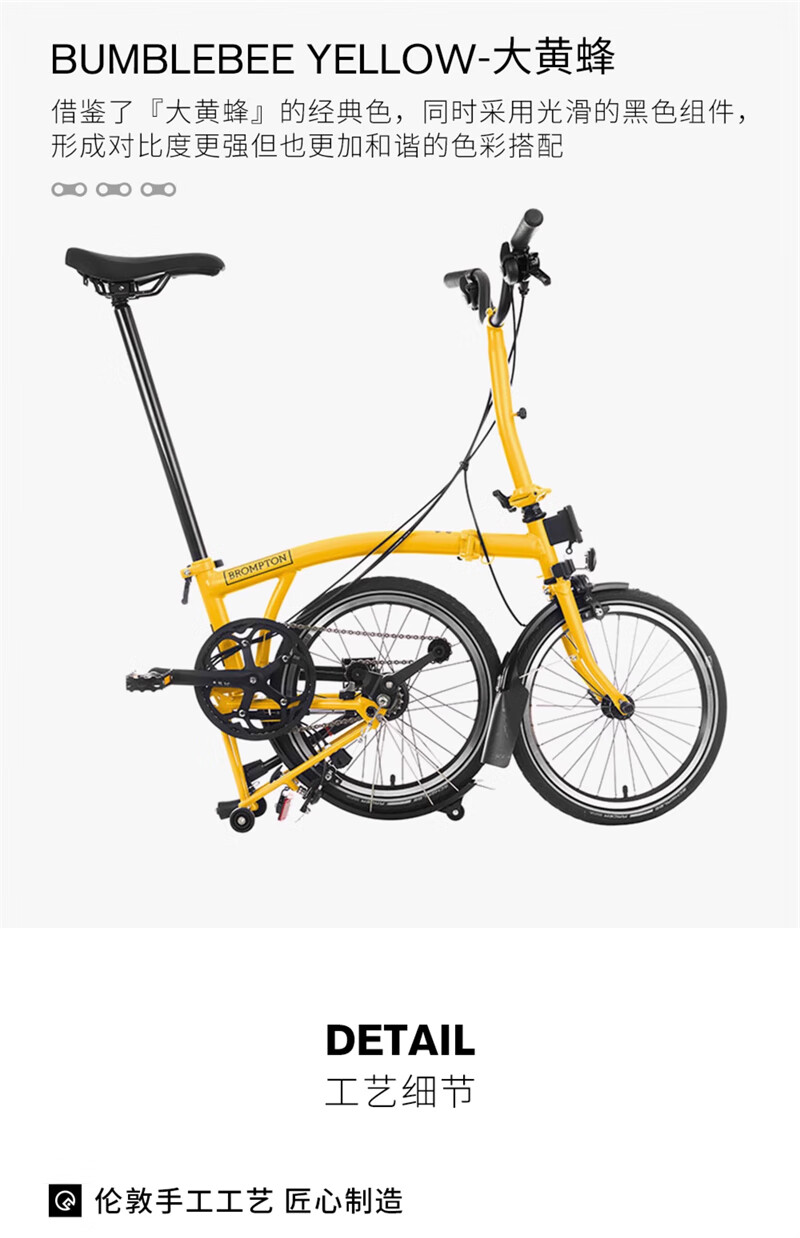 BROMPTON Xiaobu Bicycle C Line 25 new ultra-light and portable 6-speed commuting leisure variable speed folding bicycle men's and women's bicycle Bumblebee Yellow 16 inches low handlebar