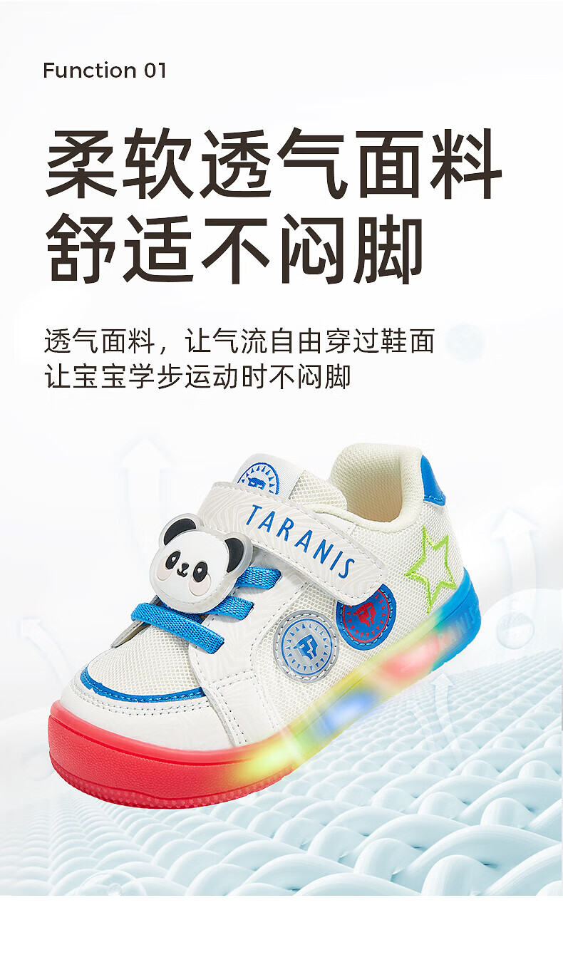 Tyrannis Flashing Light Shoes Autumn New Baby Boy Toddler Shoes Cartoon Breathable Children's Shoes Girls Anti-Kick Luminous Shoes White/Blue 19 Inner Length 13cm Suitable for Foot Length 12.0