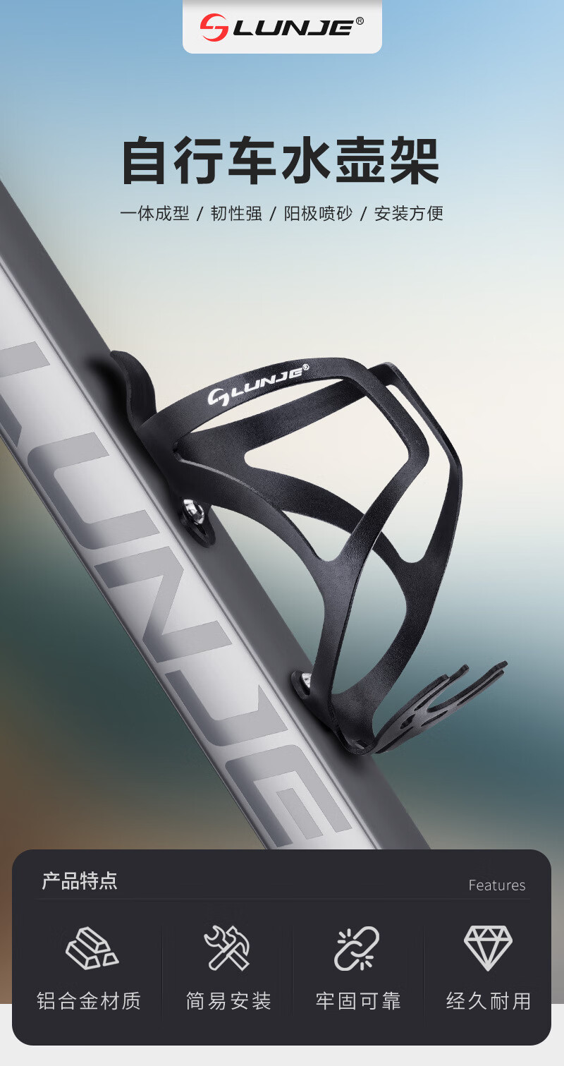 He Jiagong Bicycle Water Bottle Rack Aluminum Alloy One-piece Road Bike Ultra-Light Water Cup Rack Cycling Equipment Cycling Accessories Black