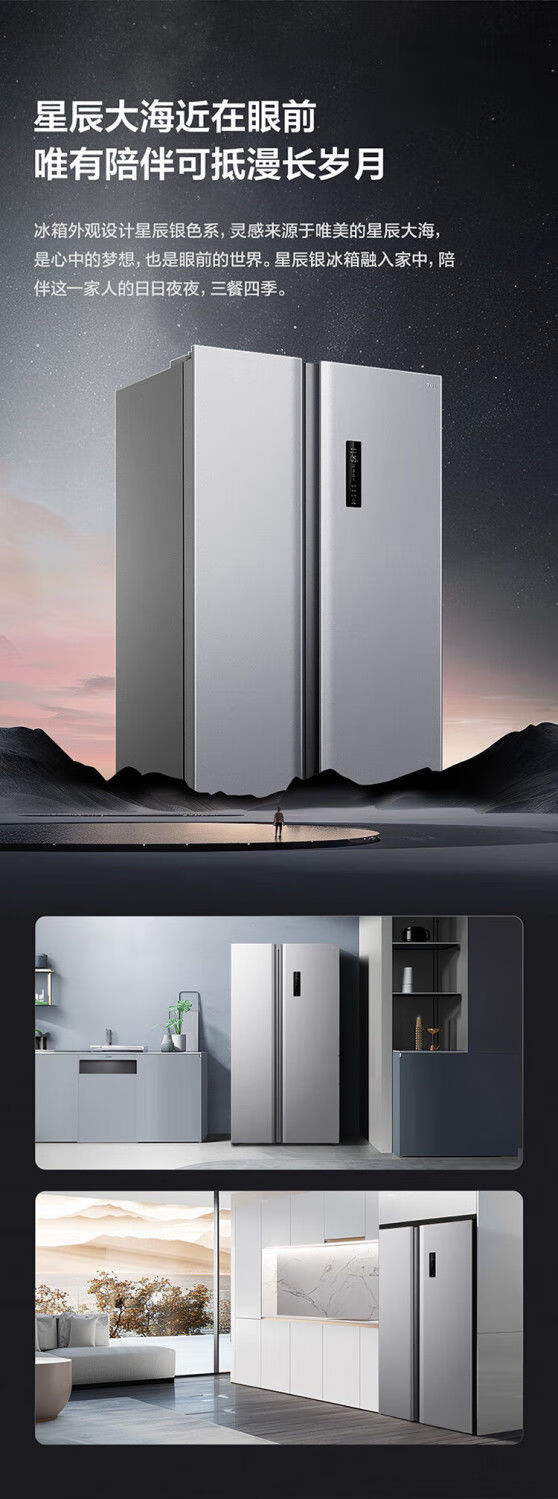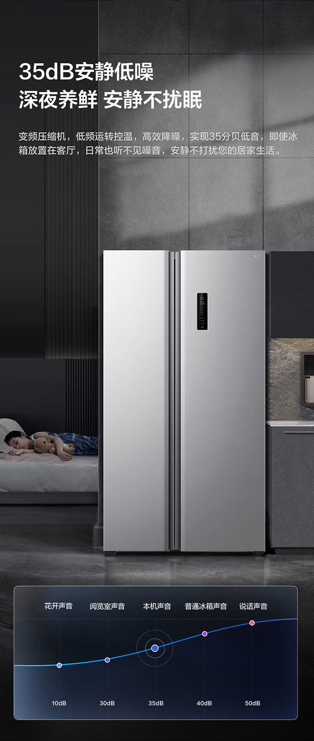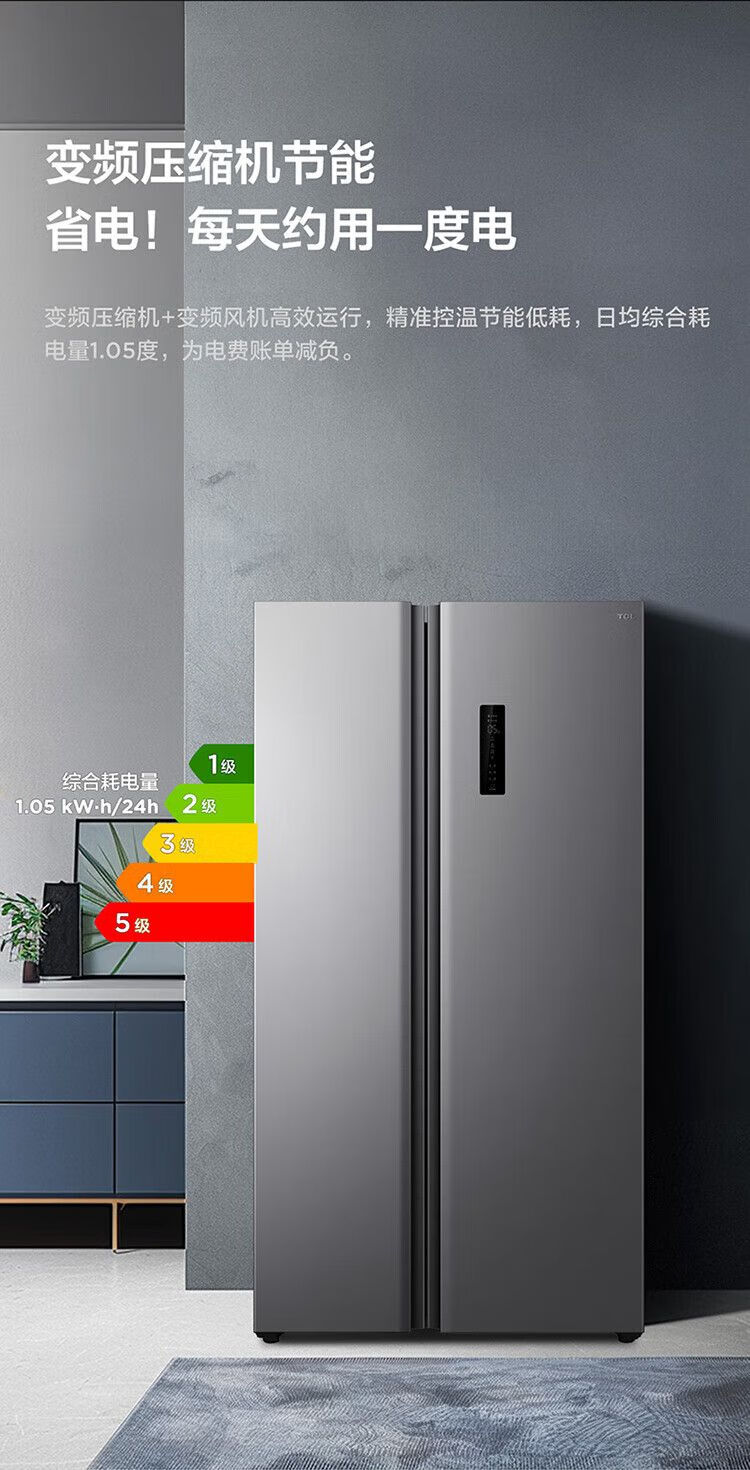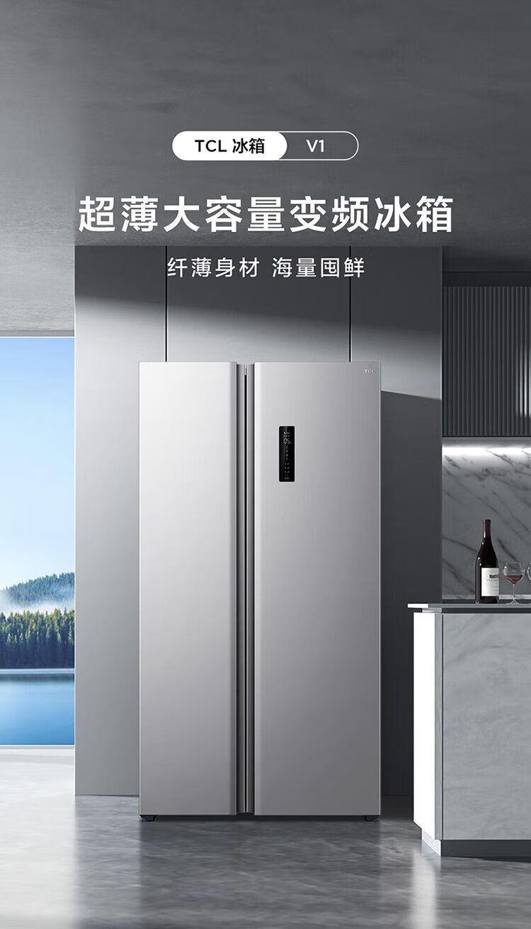 TCL Refrigerator R520V1-S Large Capacity Ultra-Thin Refrigerator Air-cooled Frost-free Fine Split Integrated Dual Frequency Conversion Dual Cycle Side-by-Side Refrigerator
