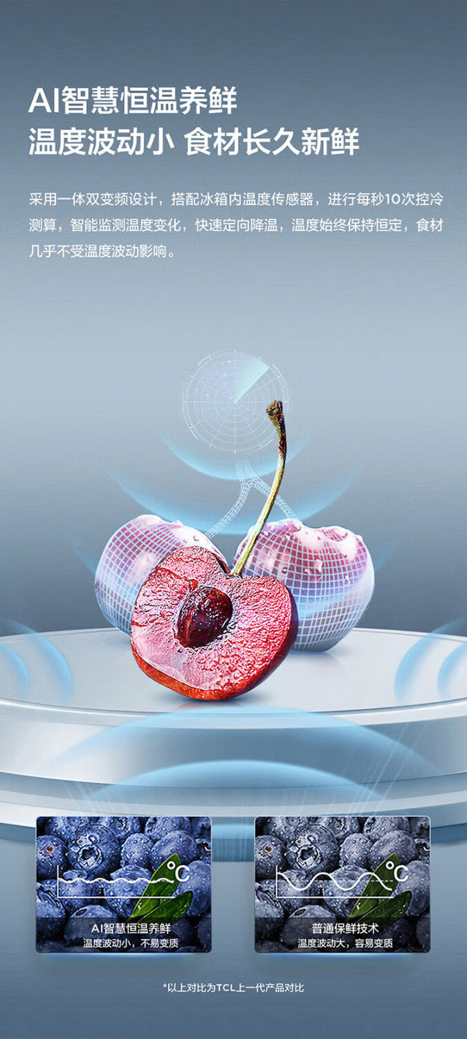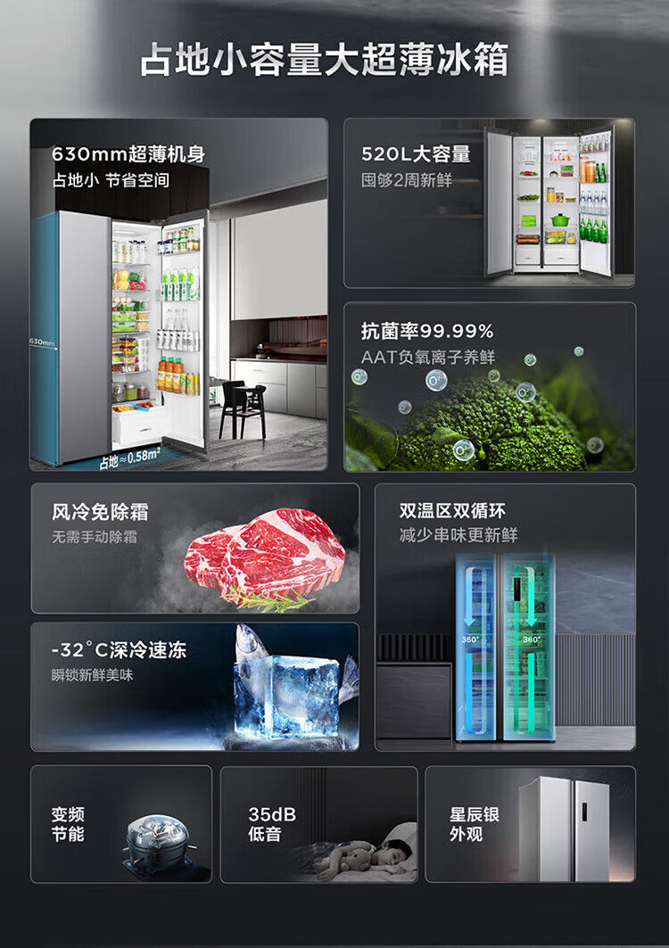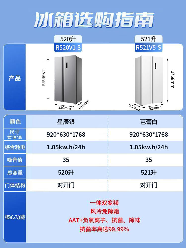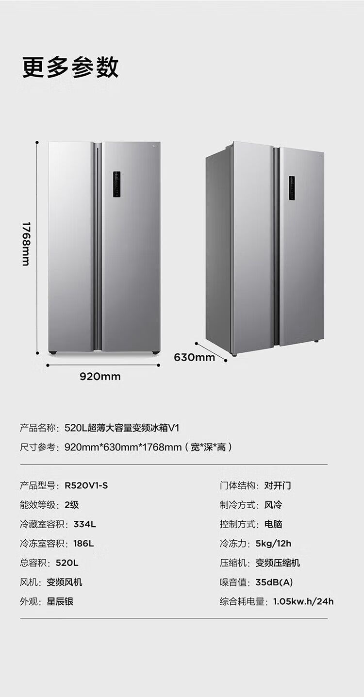 TCL Refrigerator R520V1-S Large Capacity Ultra-Thin Refrigerator Air-cooled Frost-free Fine Split Integrated Dual Frequency Conversion Dual Cycle Side-by-Side Refrigerator