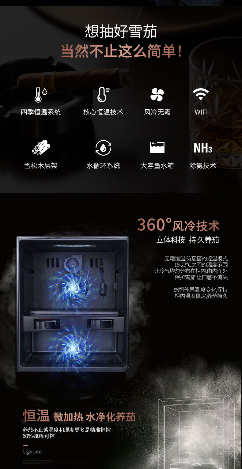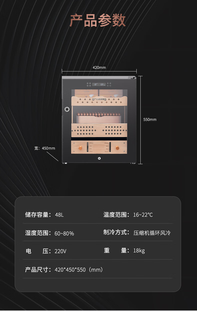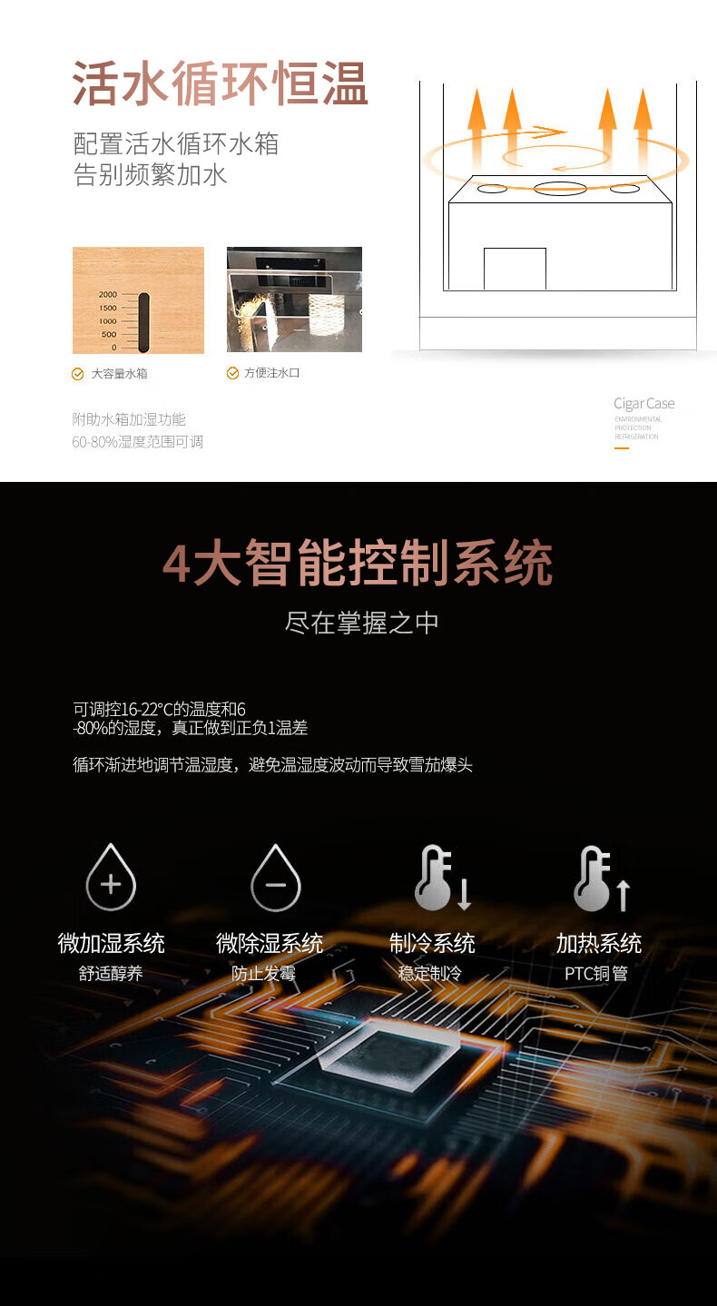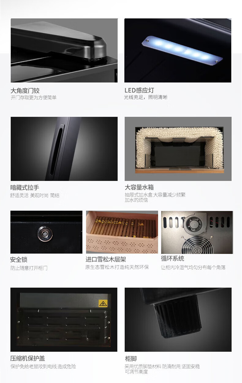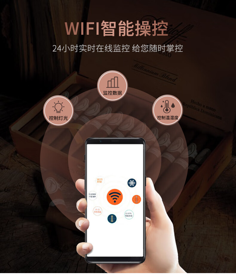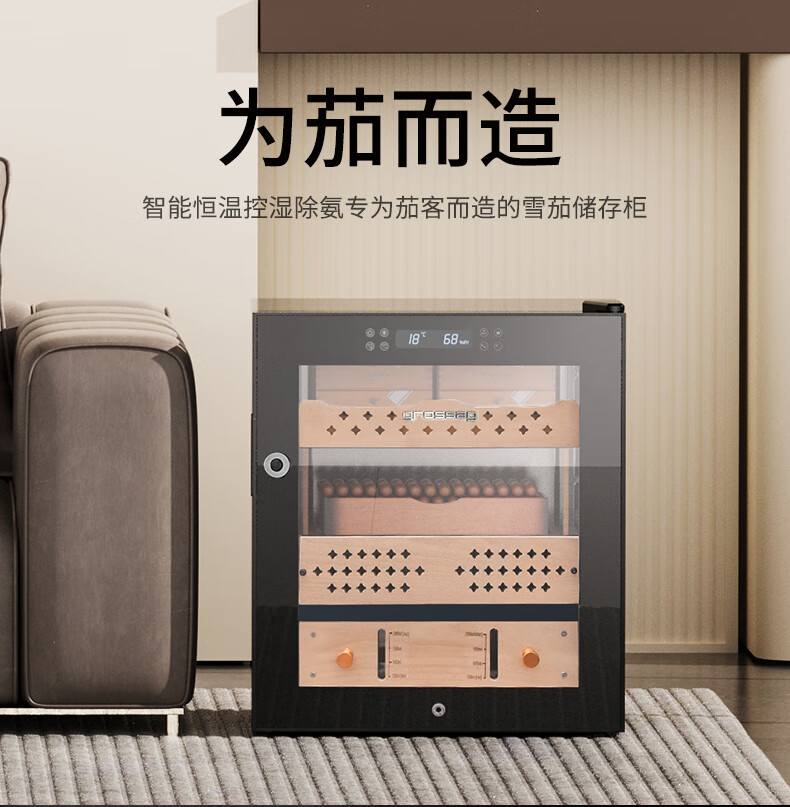 Grossag monsoon series compressor cigar cabinet intelligent constant temperature and humidity humidifier cedar wood shelf WIFI version 48 liters can be embedded black 70L
