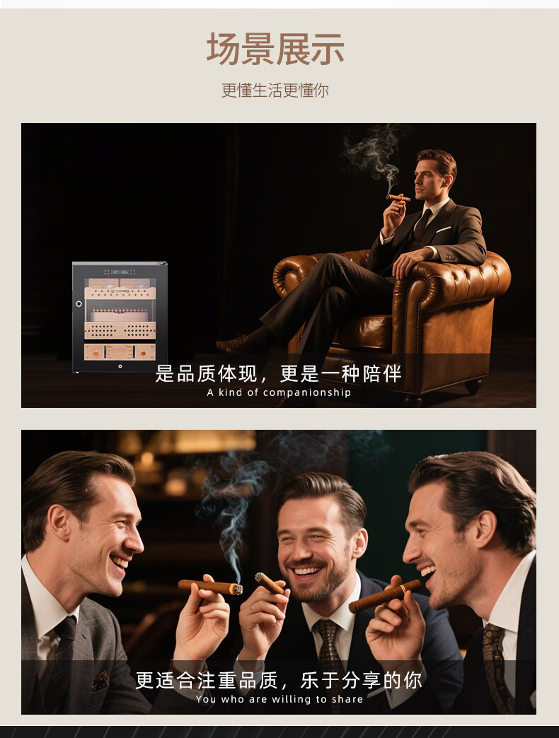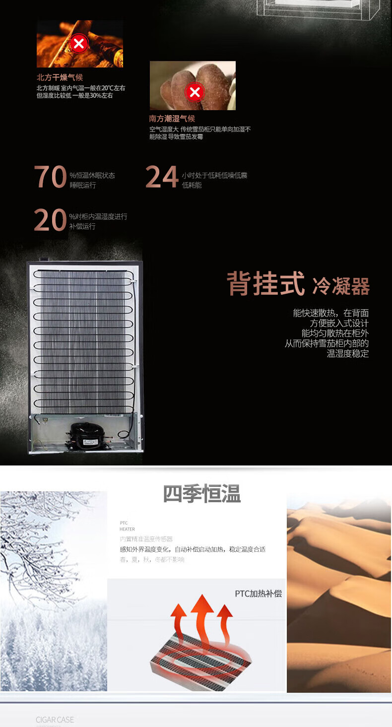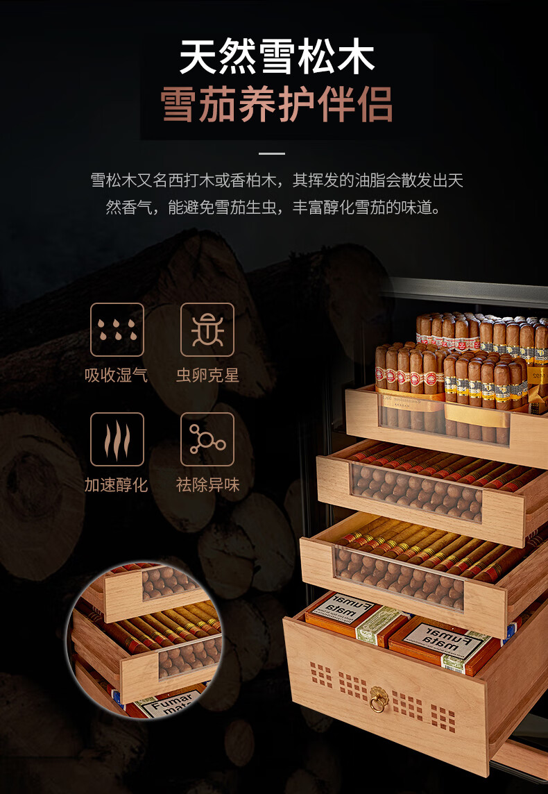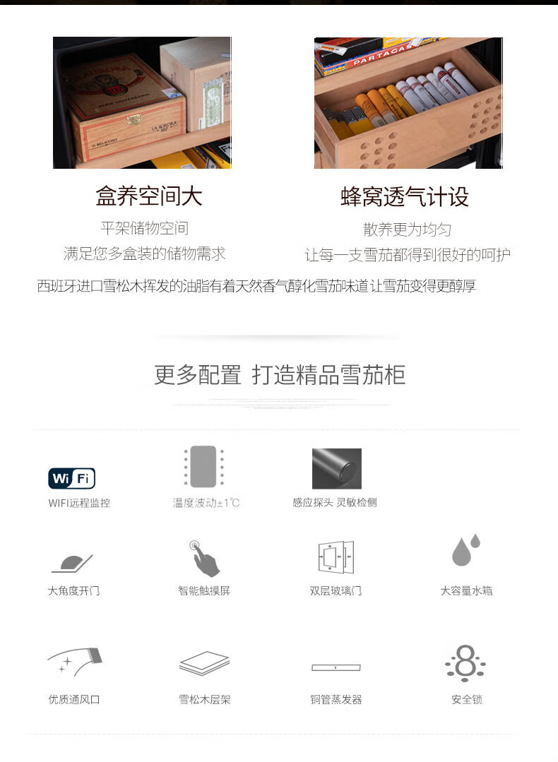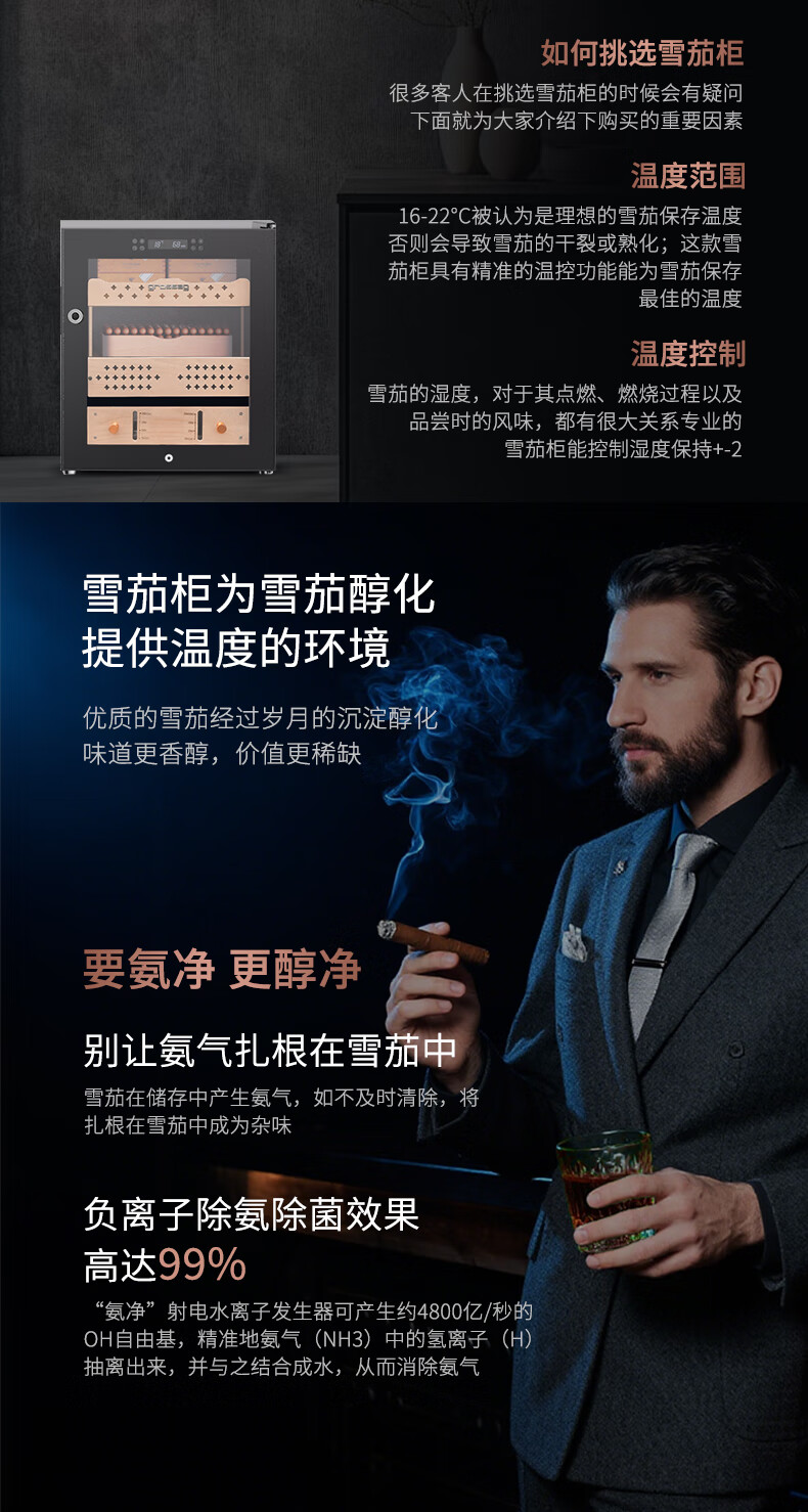 Grossag monsoon series compressor cigar cabinet intelligent constant temperature and humidity humidifier cedar wood shelf WIFI version 48 liters can be embedded black 70L