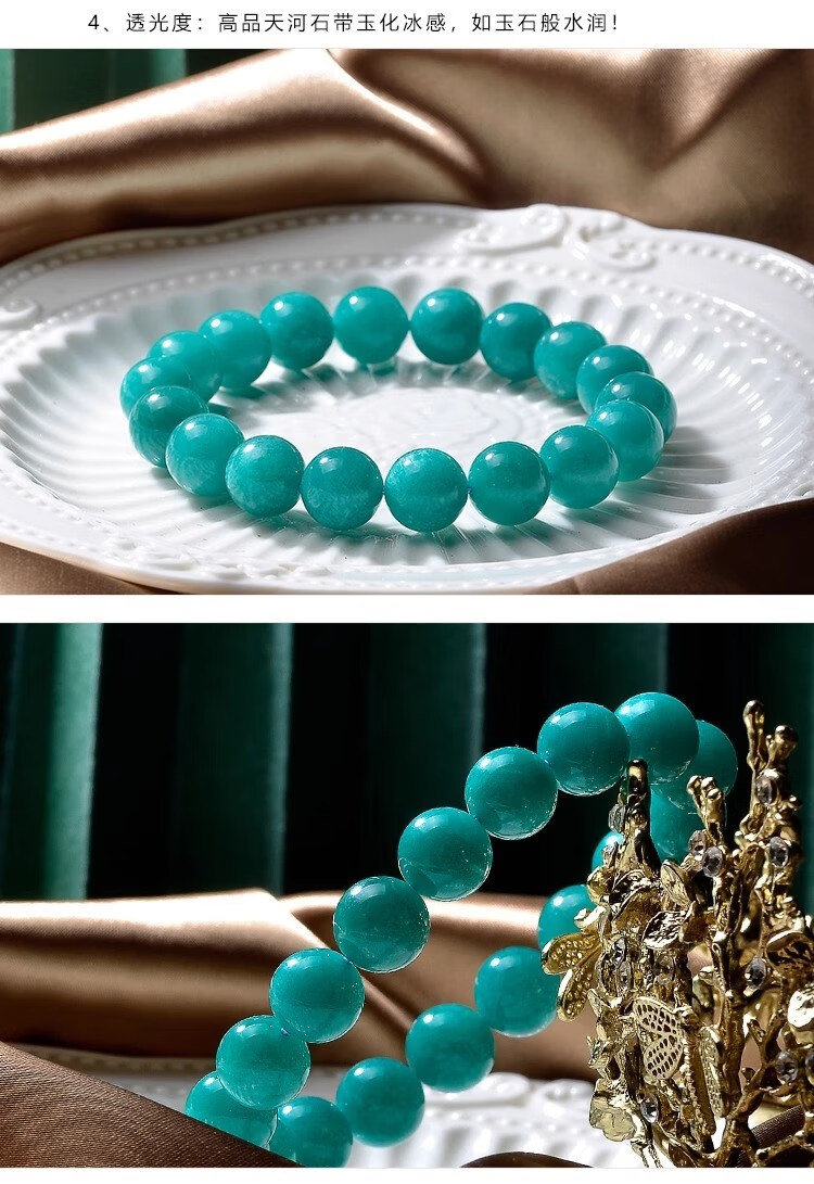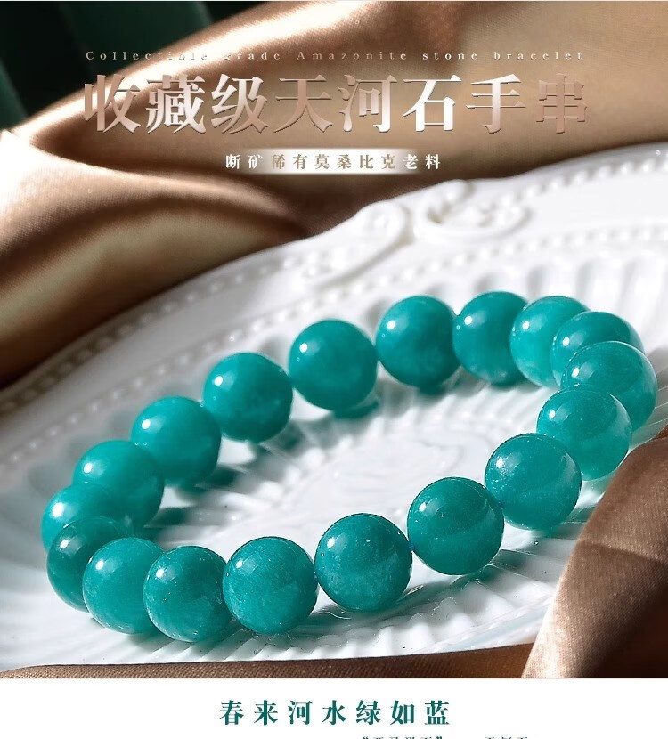 Eternal symbol collectible old mine amazonite bracelet Mozambique lake blue and green bracelet starlight women's Valentine's Day gift to calm the mind and gather wealth 12mm - collectible amazonite 1 carat