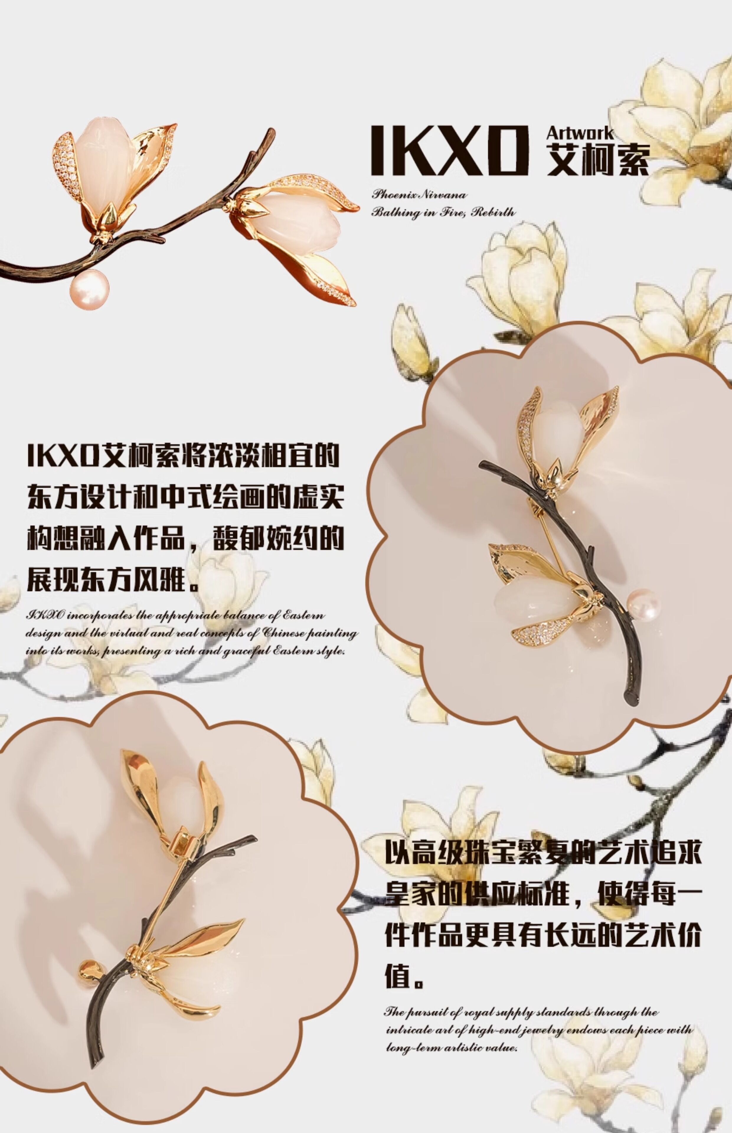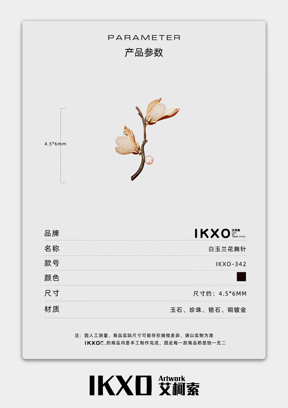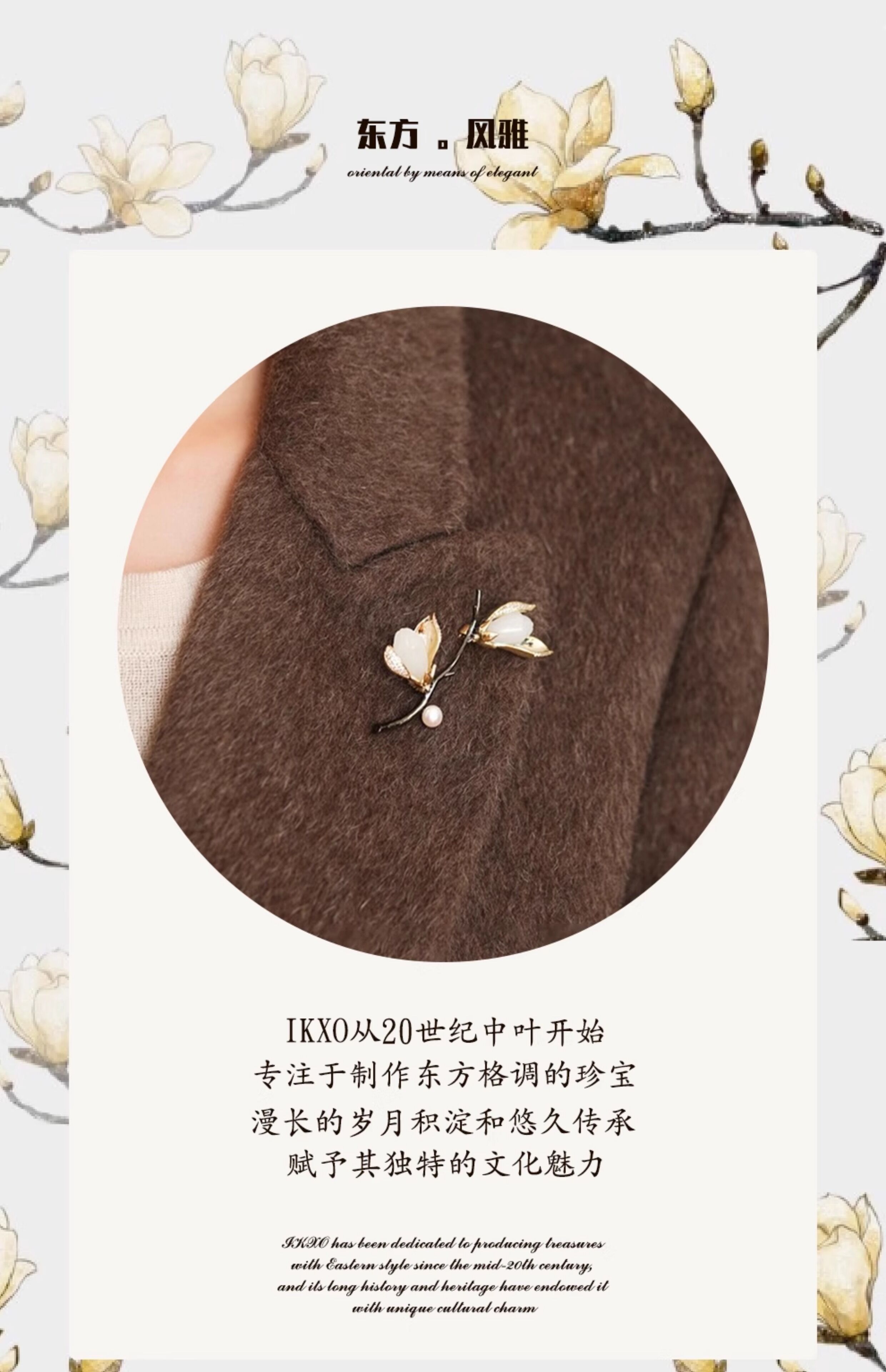 Yuansi IKXO designer brand high-end brooch white magnolia flower as a birthday gift for boyfriend and girlfriend, leader, wife and mother Magnolia flower brooch