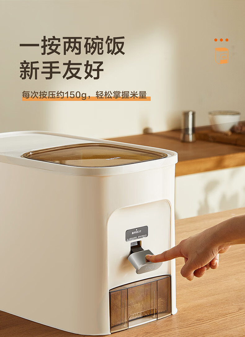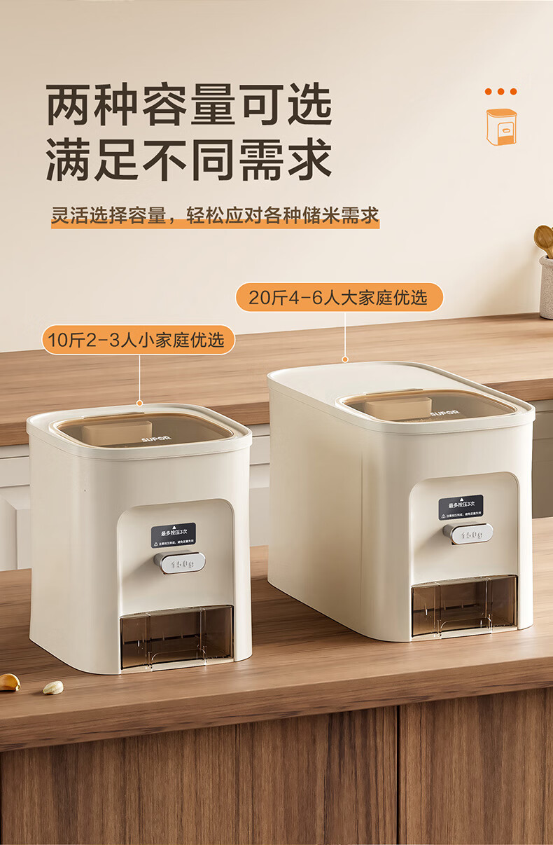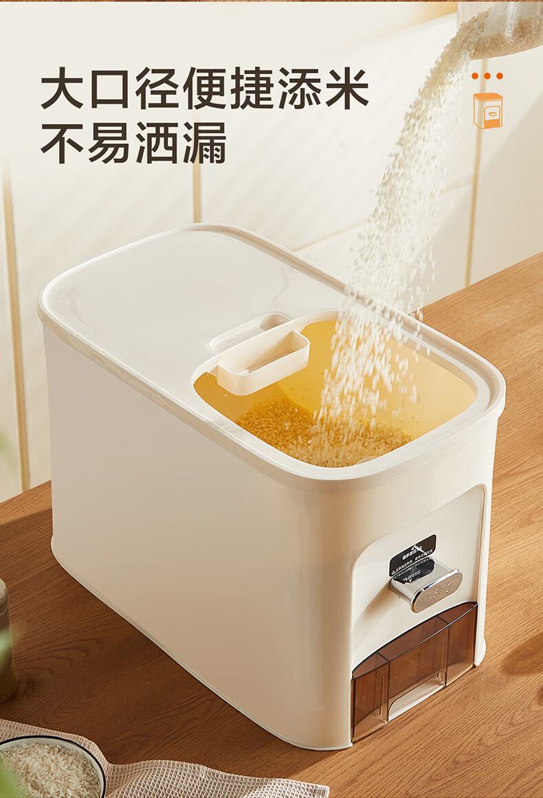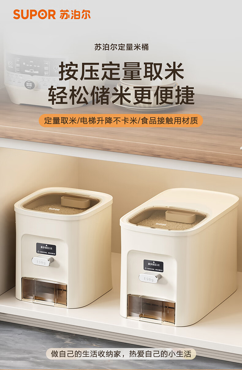 SUPOR rice bucket household sealed rice tank insect-proof and moisture-proof rice storage box quantitative automatic rice container rice container grain storage box metering + pressing rice 20Jin Jin is equal to 0.5 kg