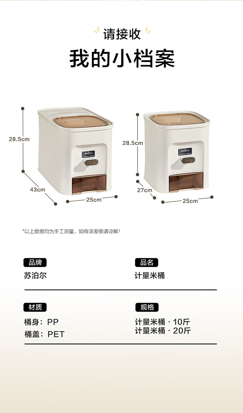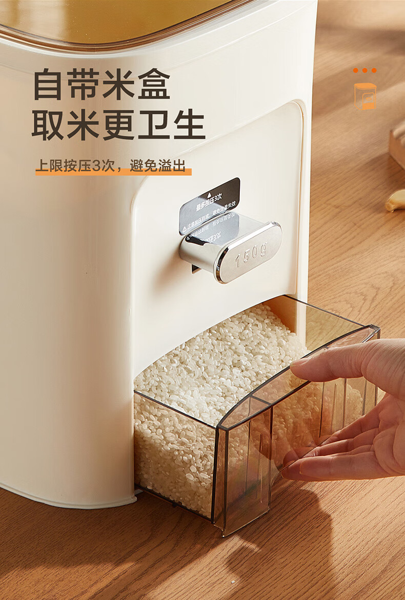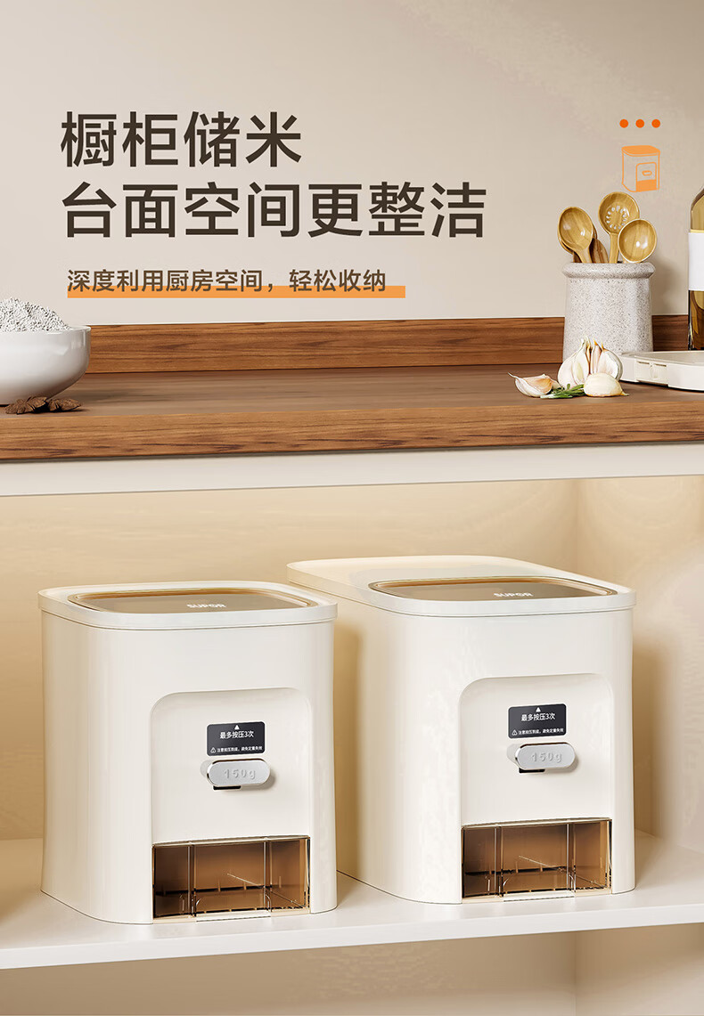SUPOR rice bucket household sealed rice tank insect-proof and moisture-proof rice storage box quantitative automatic rice container rice container grain storage box metering + pressing rice 20Jin Jin is equal to 0.5 kg