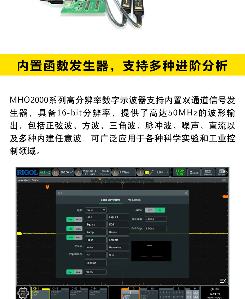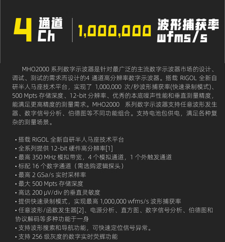 RIGOL Puyuan MHO2024/MHO2024 digital oscilloscope 350M bandwidth 4 channels 12bit built-in signal source MHO2024 (200MHz 4 channels)