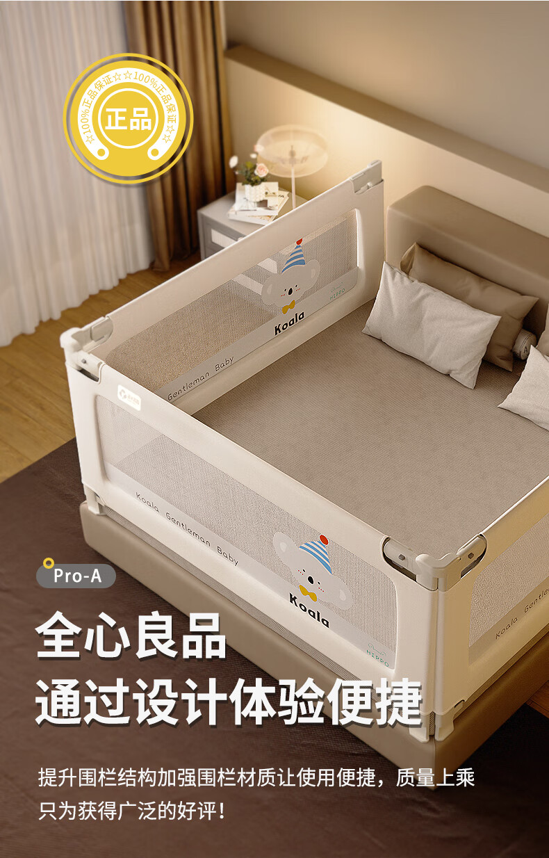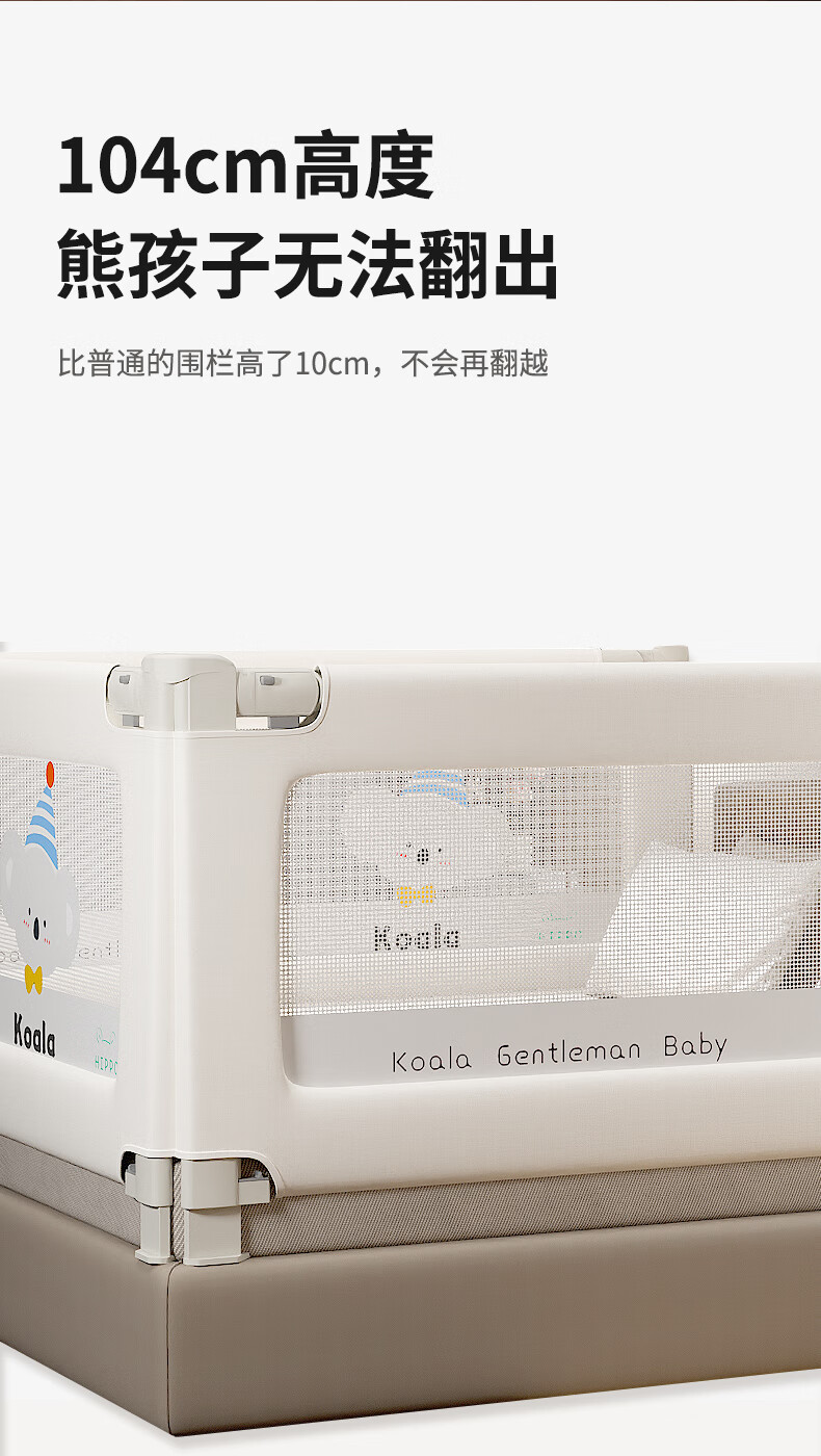 Tommy & Kids Bed Fence Guardrail Baby Anti-fall Guardrail Baby Fence Bedside Baffle Bed Safety Bedrail A2-Cream White Koala 2.0 meters (single-sided)