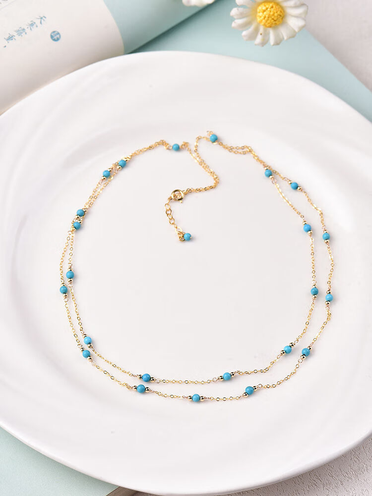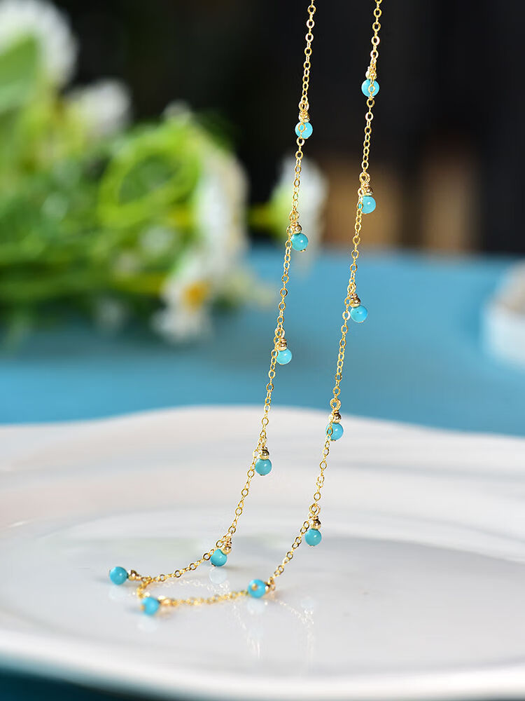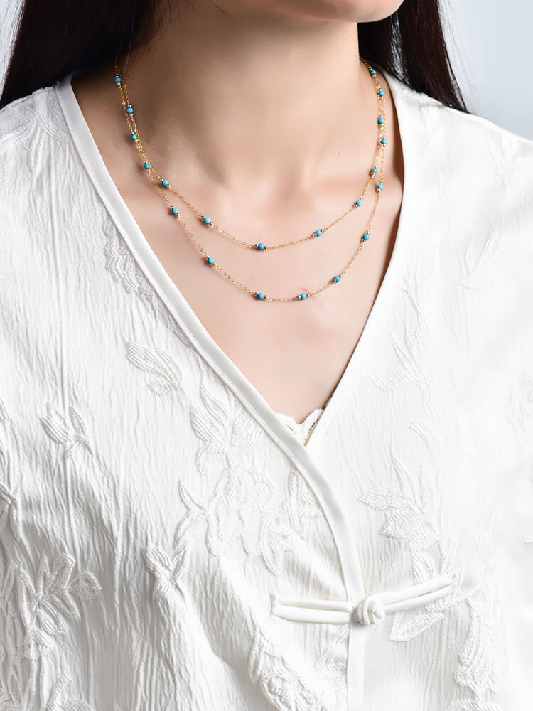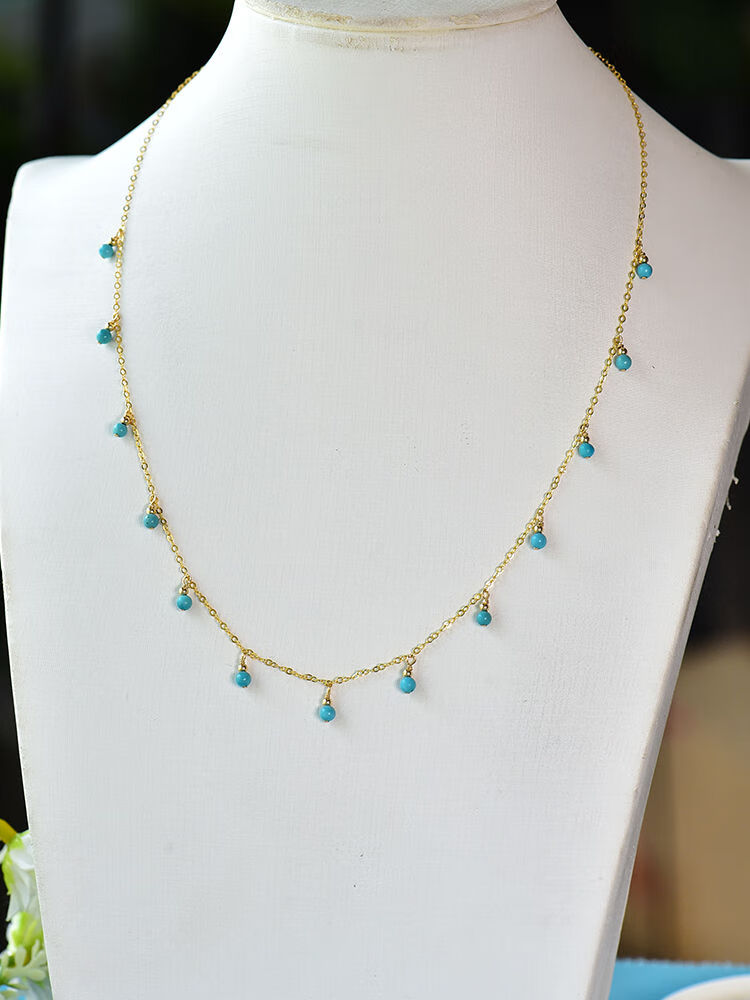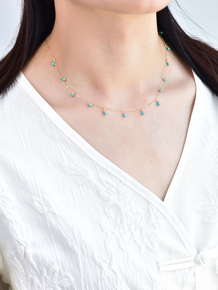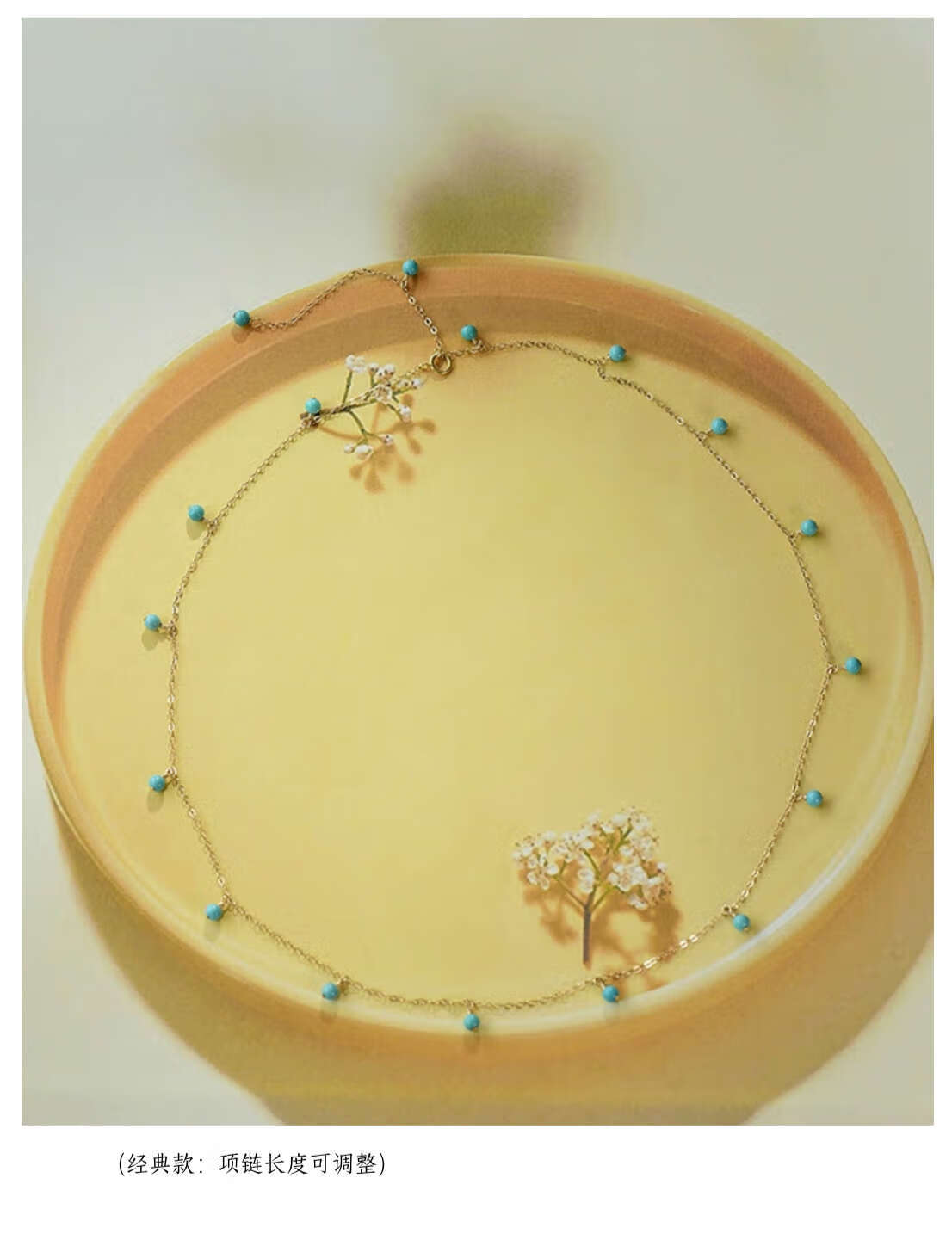 Libiao 2025 new style baby's breath natural turquoise necklace high porcelain high blue national style birthday gift turquoise baby's breath necklace (new model in June)