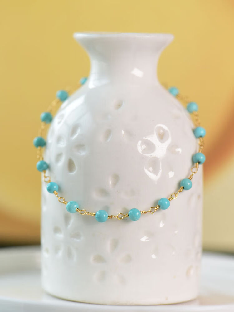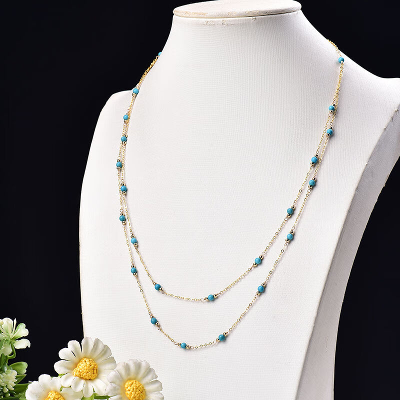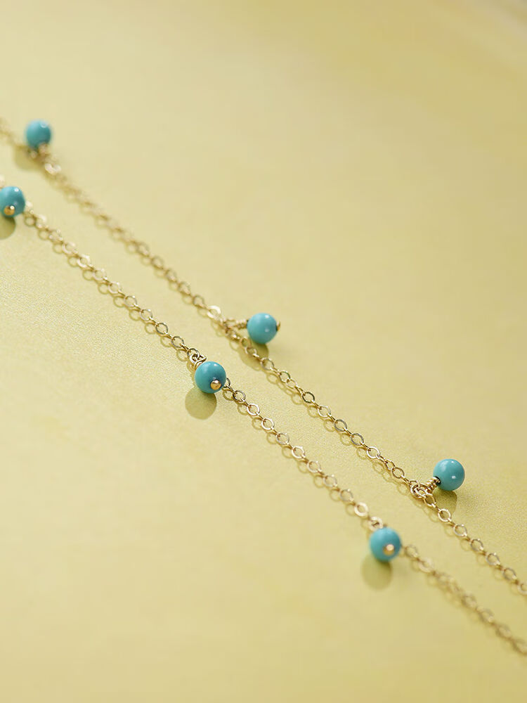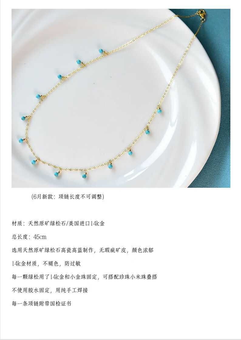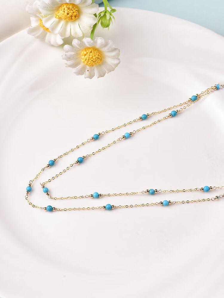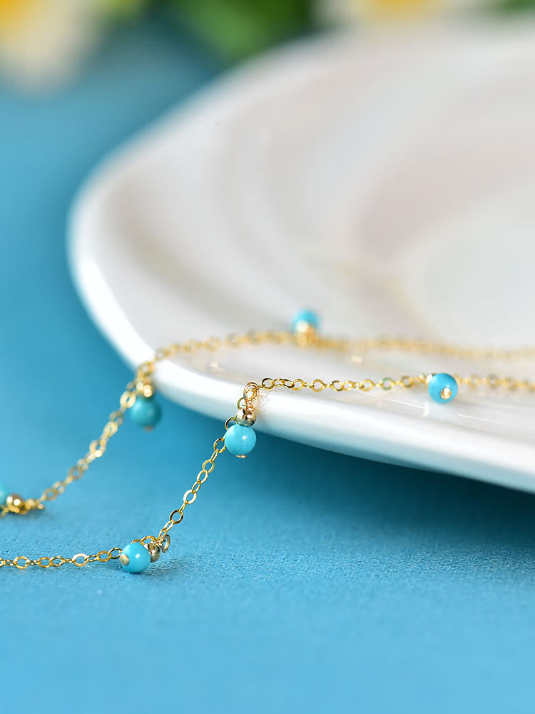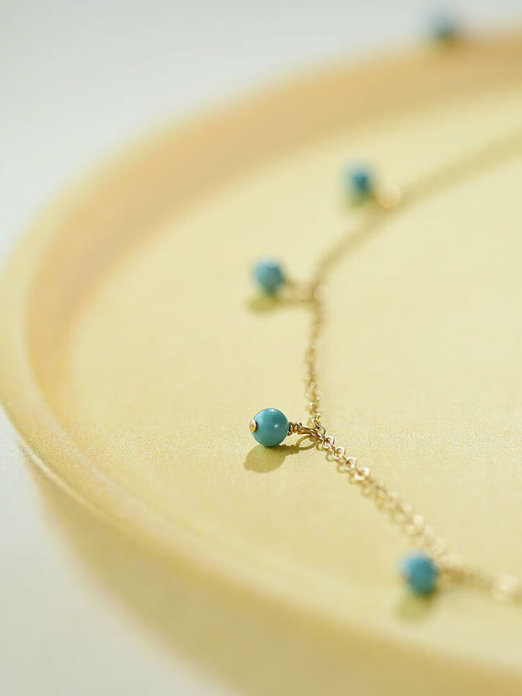 Libiao 2025 new style baby's breath natural turquoise necklace high porcelain high blue national style birthday gift turquoise baby's breath necklace (new model in June)