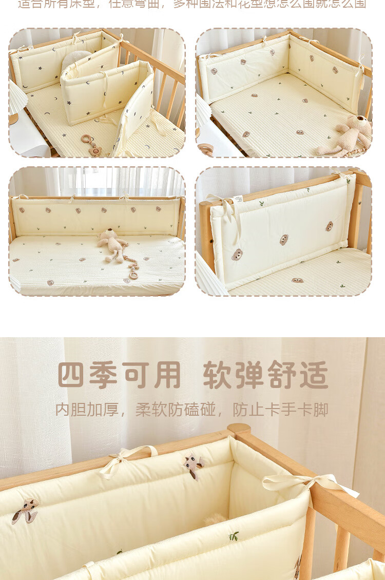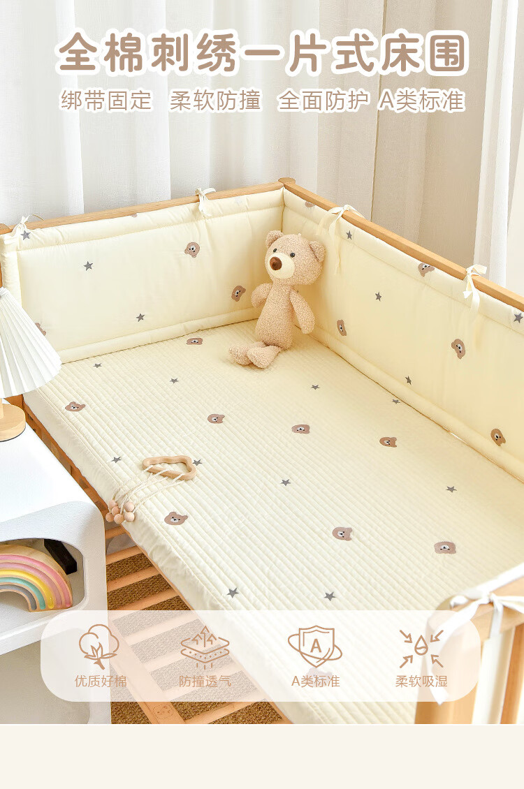 G.DUCKKIDS crib pure cotton bedside newborn baby cartoon embroidery buffer soft bag children's anti-collision strip anti-fall fence fence Star Rabbit height 28cm 70cm 1 piece