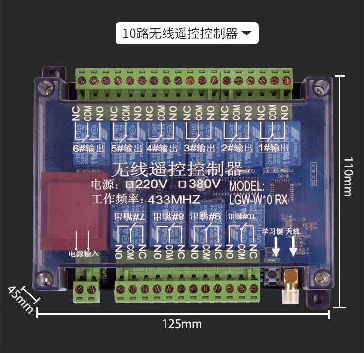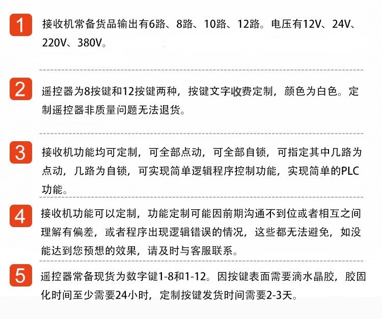380V12V24V220V driving wireless remote control switch 6-way 8-way 10-way 12-way 14-way 16-way industrial control 6-way 24V 1 receiving + 1 transmitting