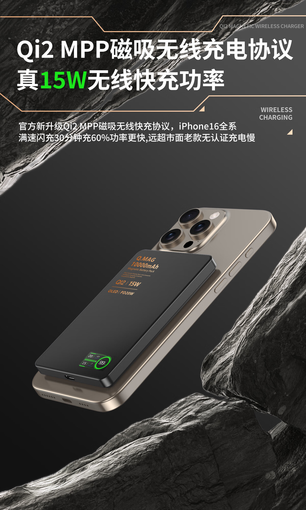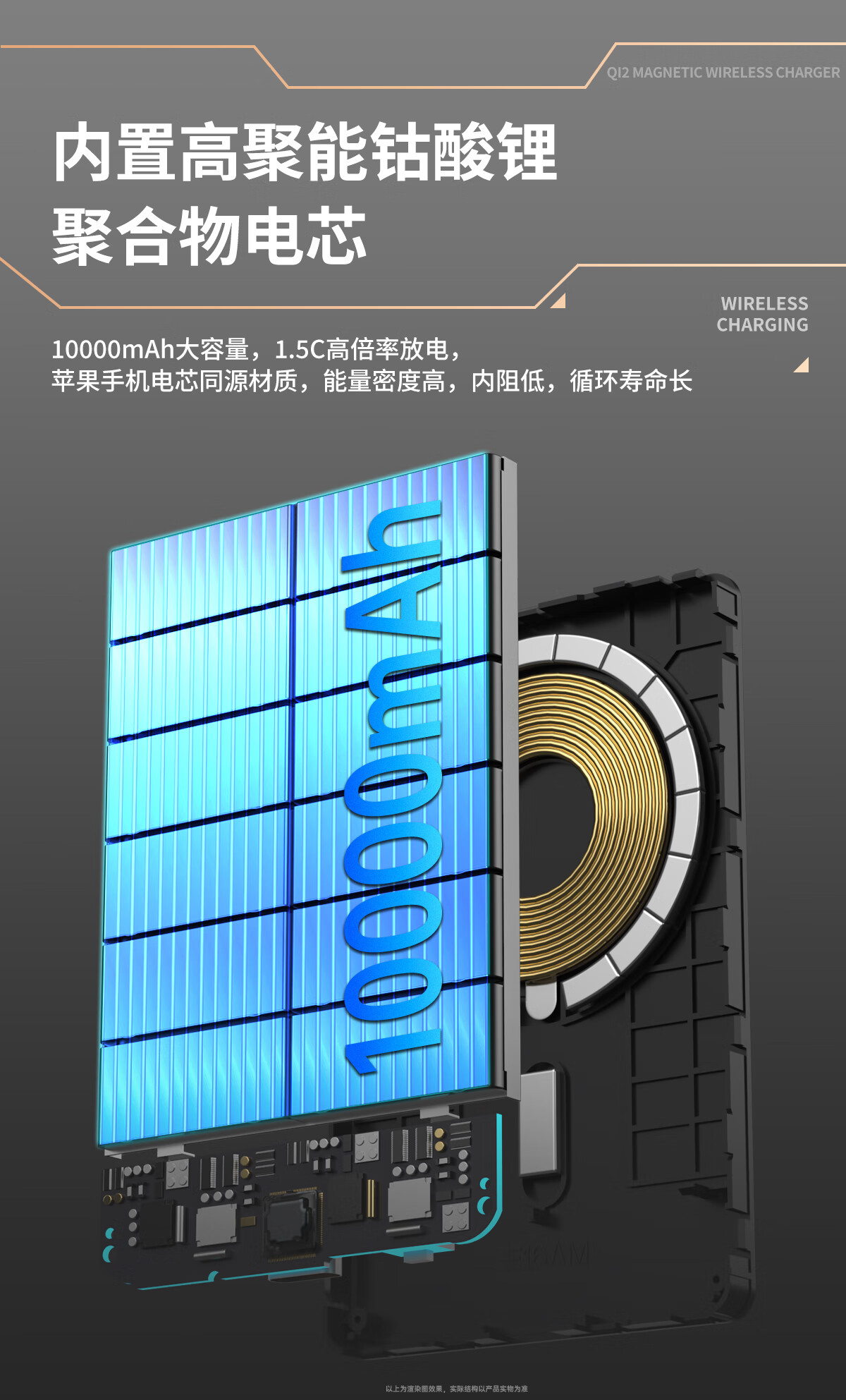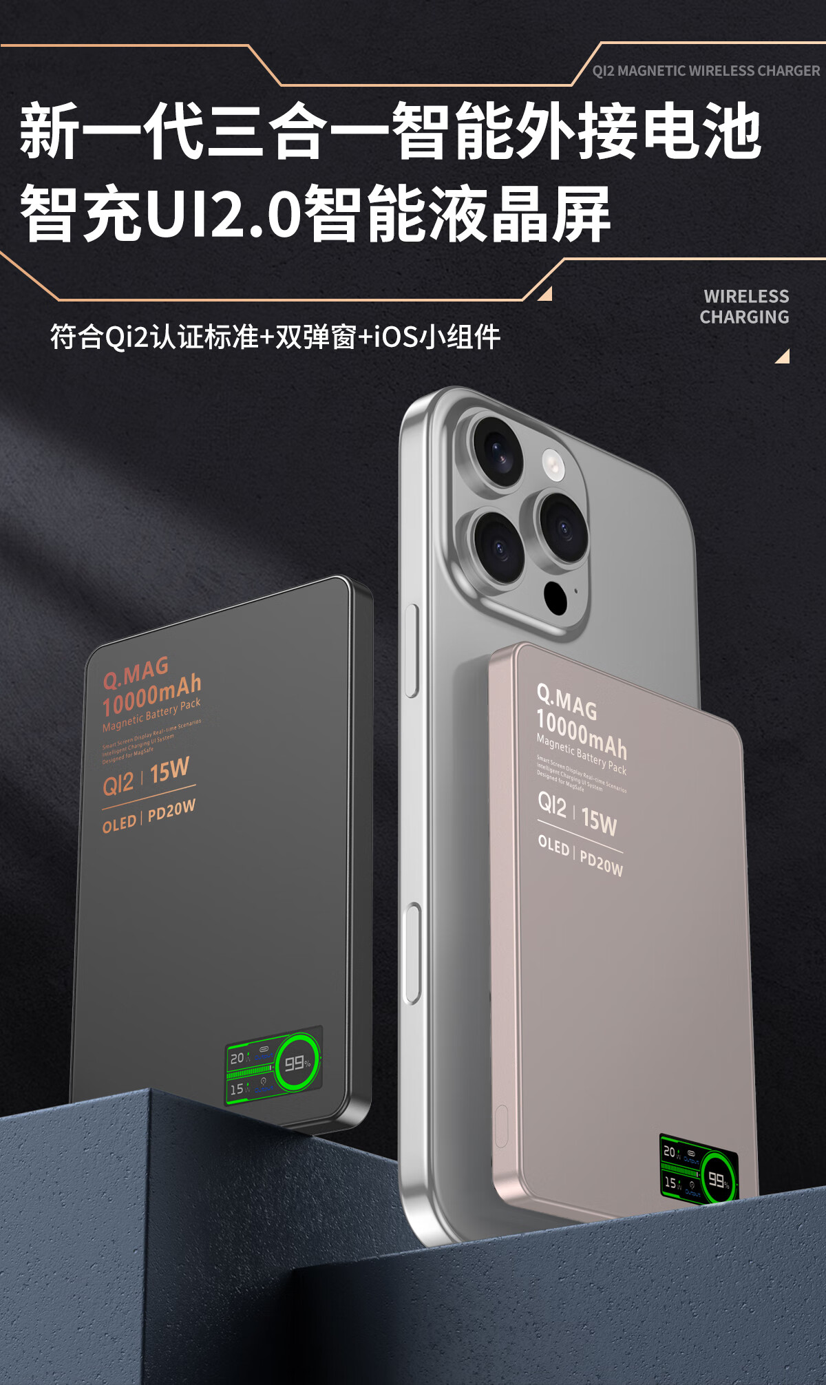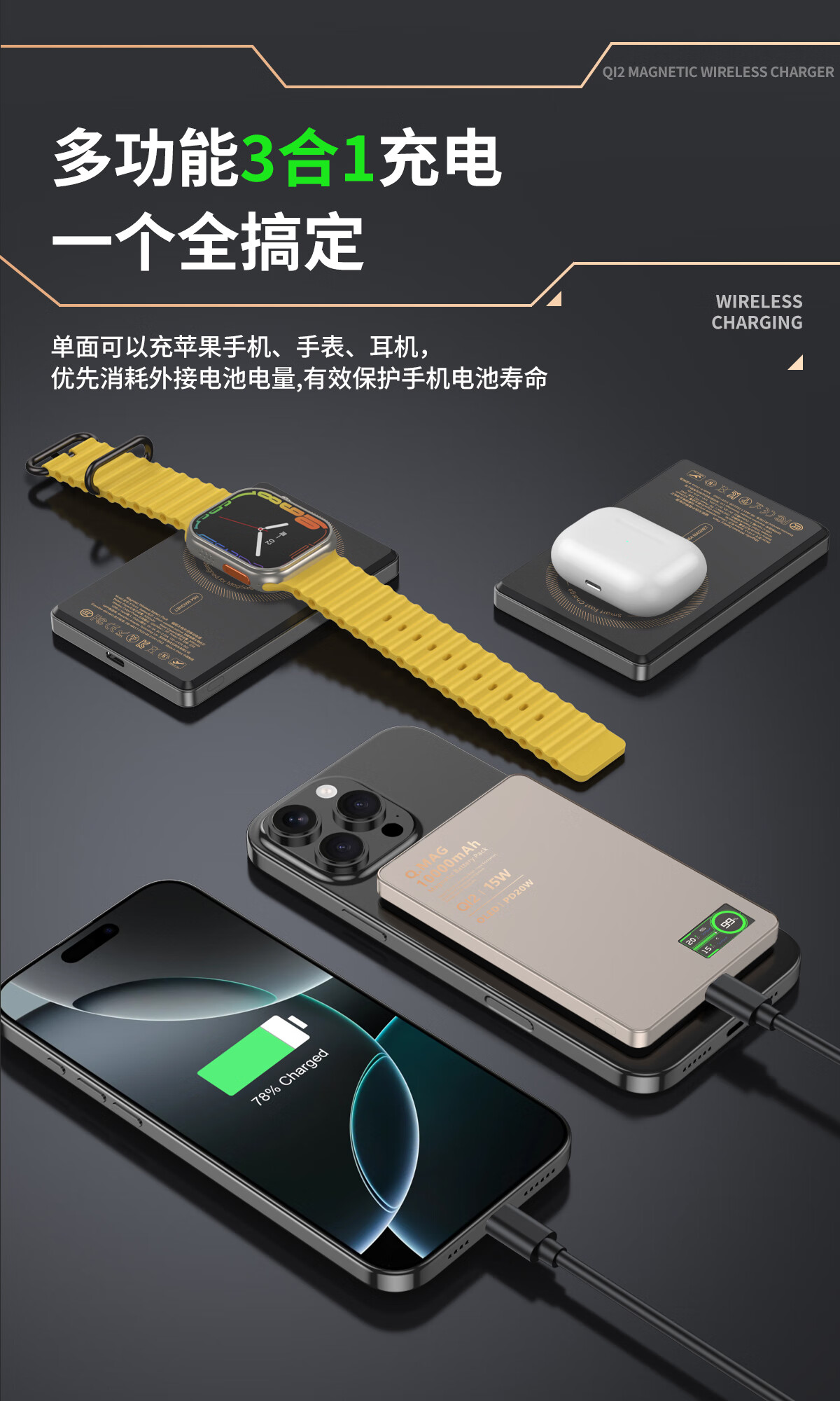 KYEC makes 2025 new ultra-thin qi2 magnetic power bank external battery Magsafe three-in-one wireless charging fast charging small and portable suitable for iWatch Apple Huawei can be used on airplanes 10000 mAh deep space gray external battery upgrade smart screen + rechargeable watch