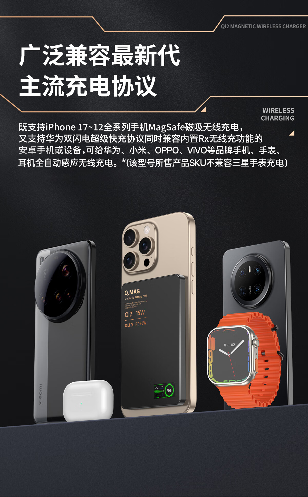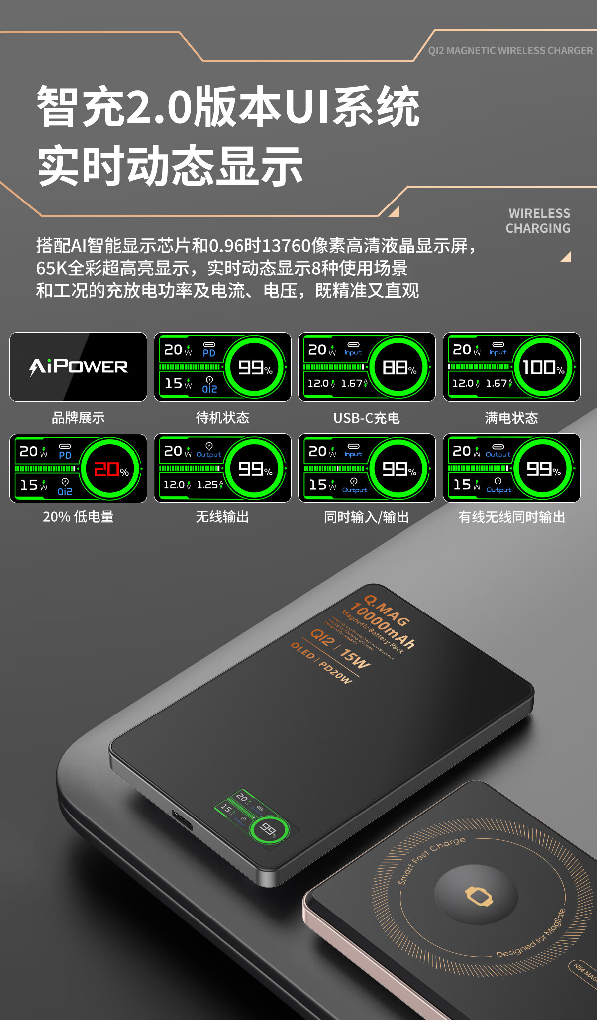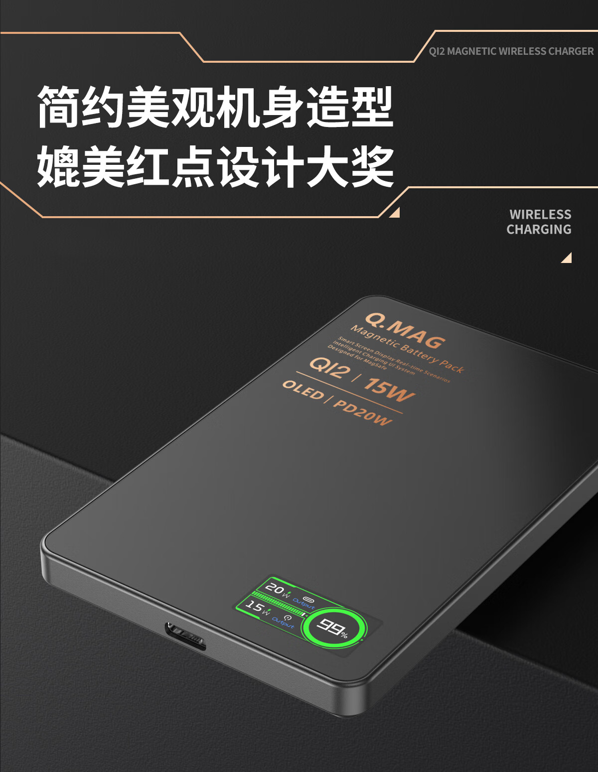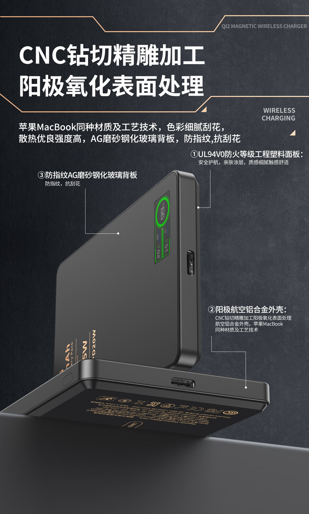KYEC makes 2025 new ultra-thin qi2 magnetic power bank external battery Magsafe three-in-one wireless charging fast charging small and portable suitable for iWatch Apple Huawei can be used on airplanes 10000 mAh deep space gray external battery upgrade smart screen + rechargeable watch
